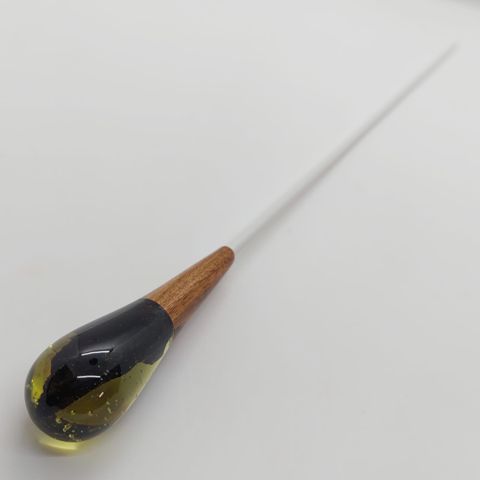 The baton handle is born from the fusion of noble wood and translucent resin, creating a unique work of art in every piece. Each baton features singular nuances and details, ensuring strength, quality, and a sophisticated, elegant touch.