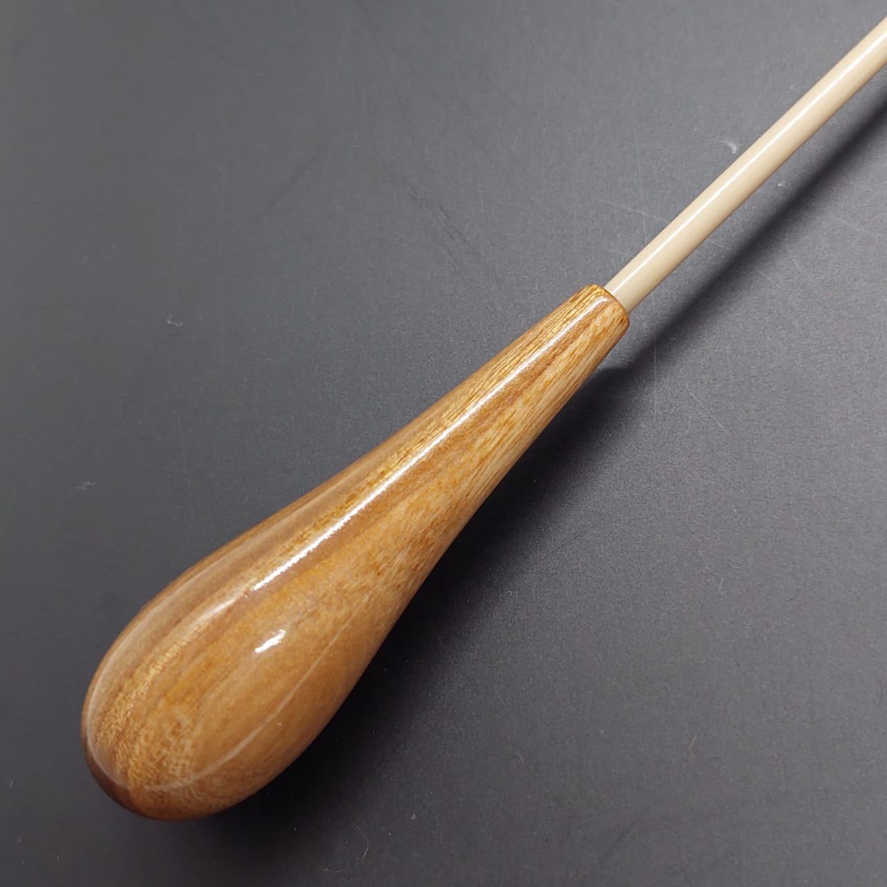 Batuta de maestro con empuñadura modelo Clásico, finamente esculpida para un encaje armonioso de los dedos, ofreciendo comodidad y elegancia en cada movimiento.