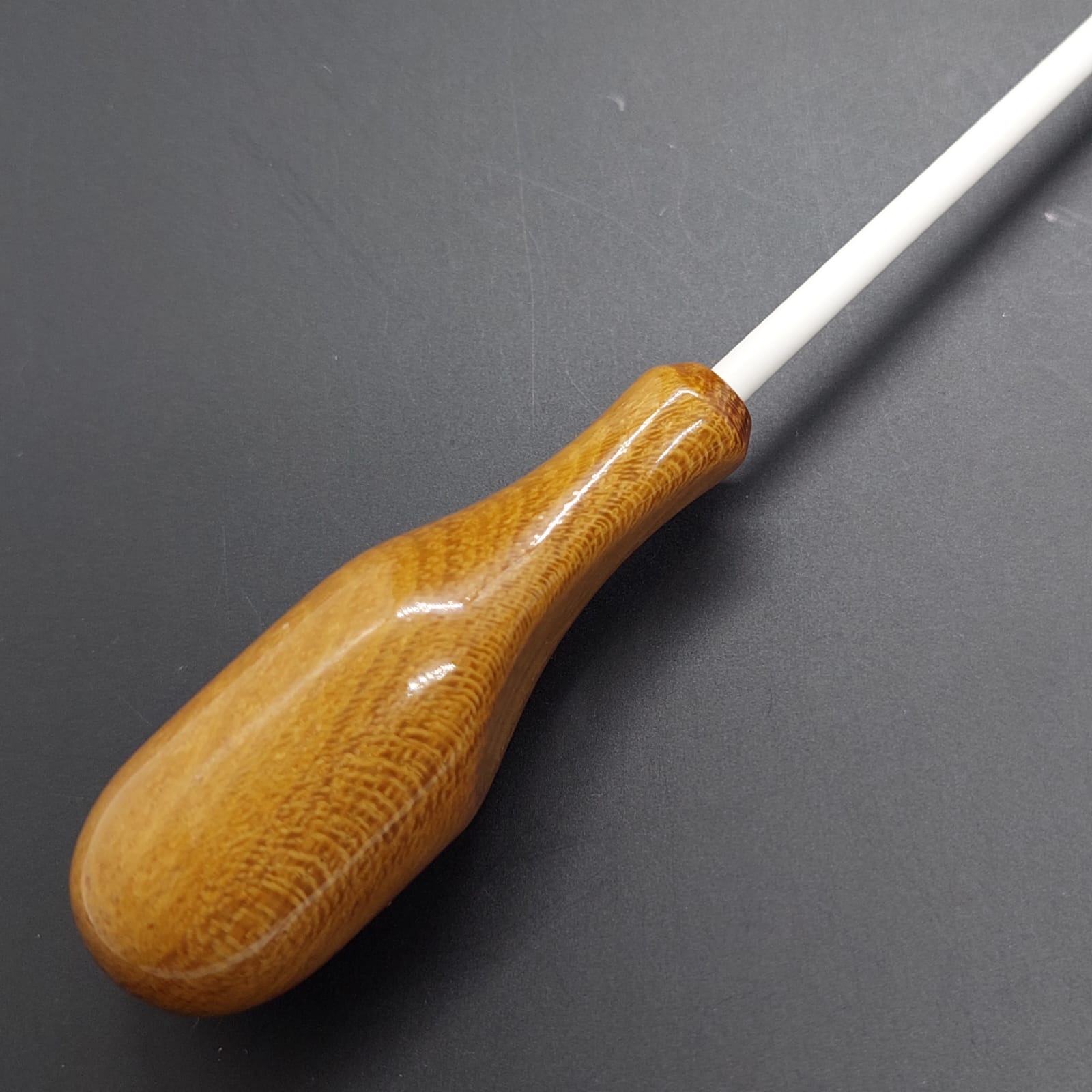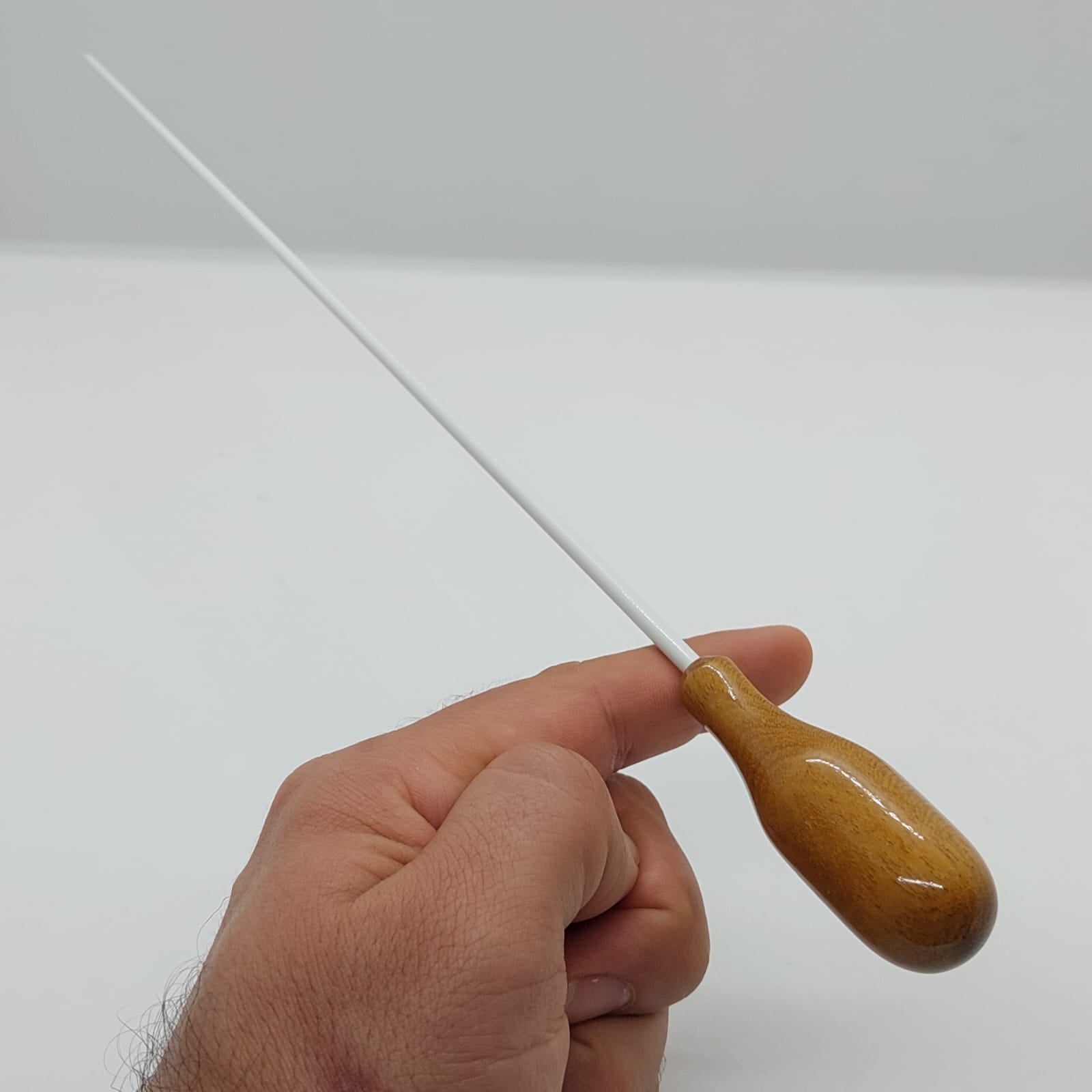 Batuta de maestro com empunhadura modelo Anatômico, cuidadosamente esculpida para um encaixe natural dos dedos e máximo conforto durante a regência.