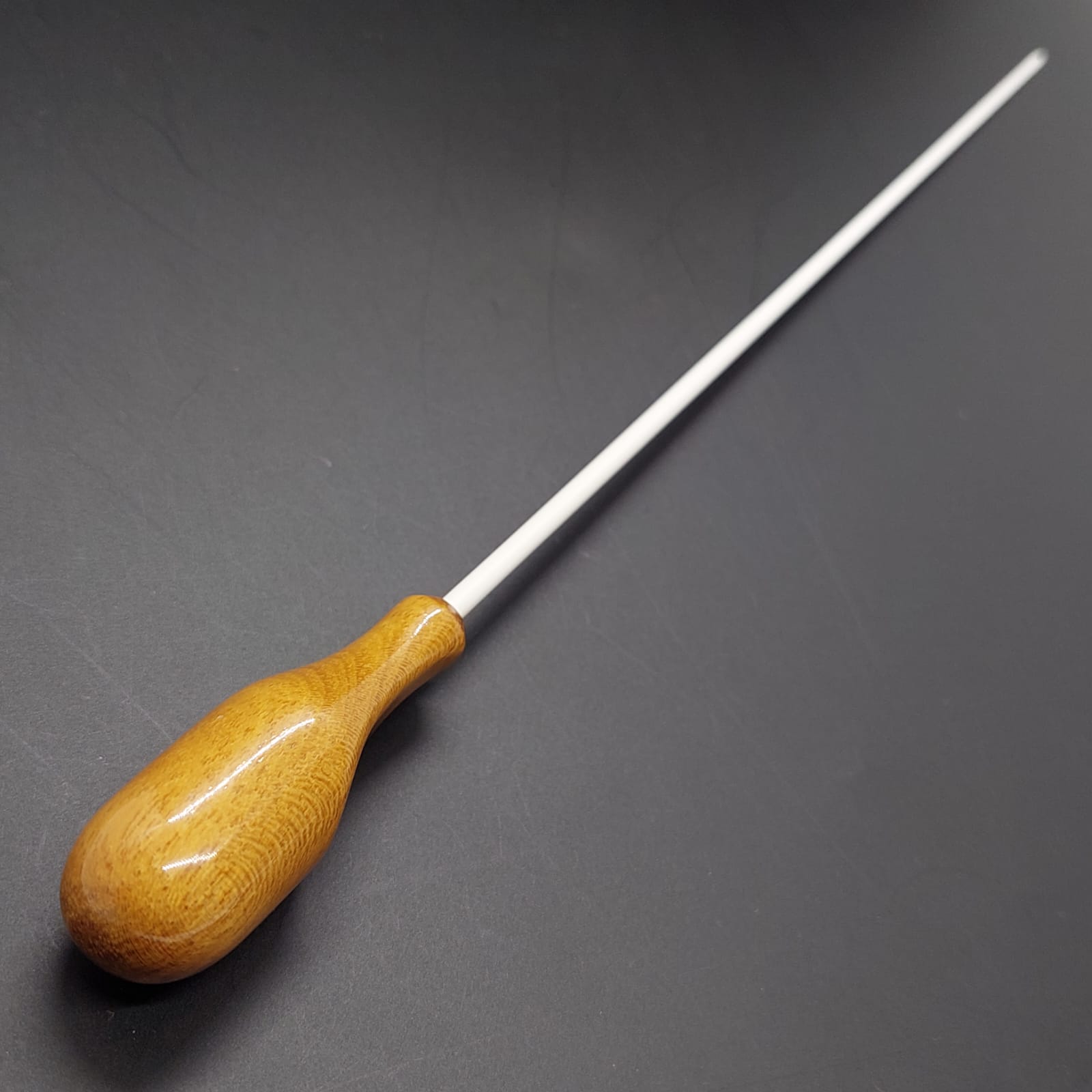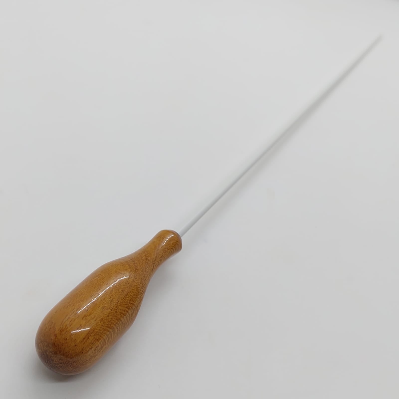 A pera da batuta é produzida em madeira de alta qualidade, resistente e cuidadosamente selecionada para garantir durabilidade e beleza. Seu acabamento realça os veios naturais da madeira, valorizando sua textura única e assegurando que a batuta se destaque com elegância e autenticidade.