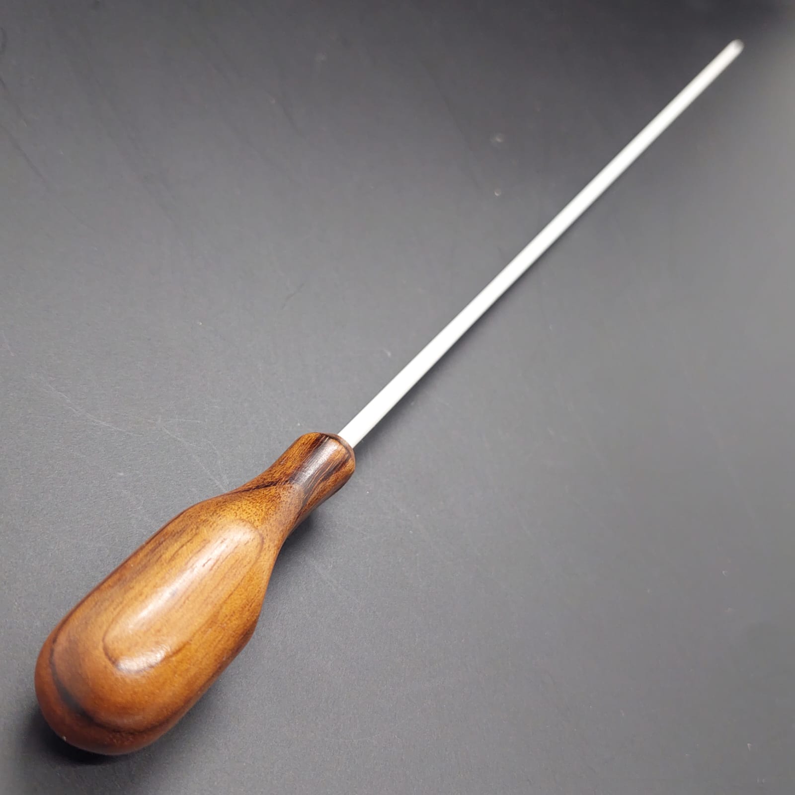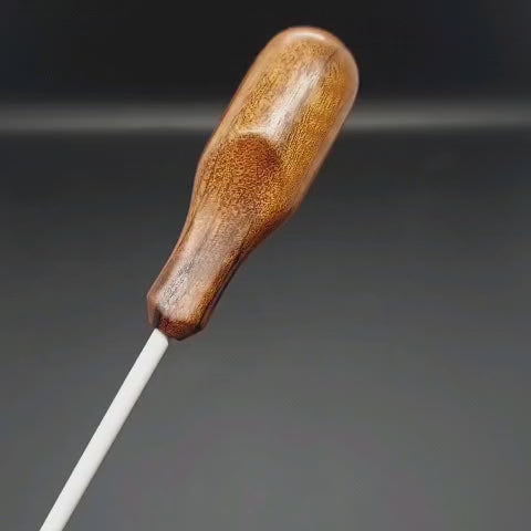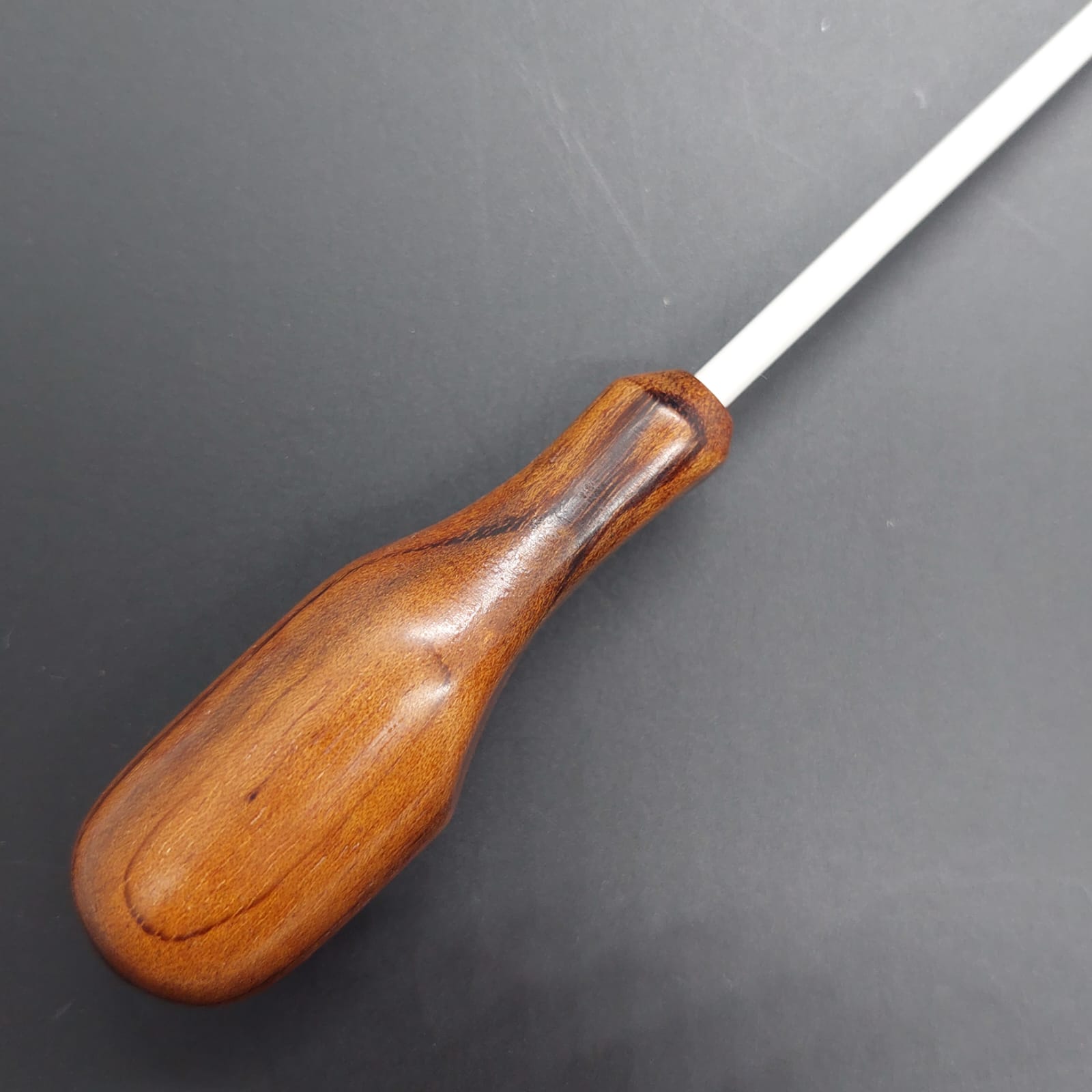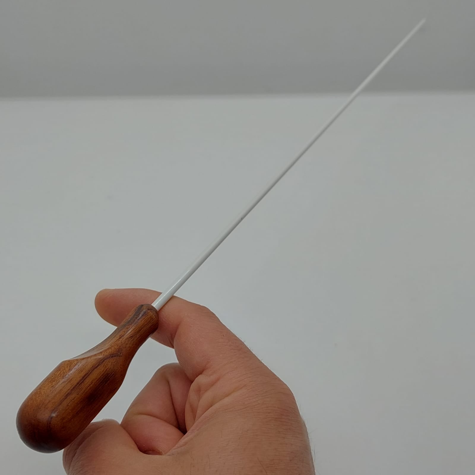 Batuta de maestro com empunhadura modelo Anatômico, cuidadosamente esculpida para um encaixe natural dos dedos e máximo conforto durante a regência.