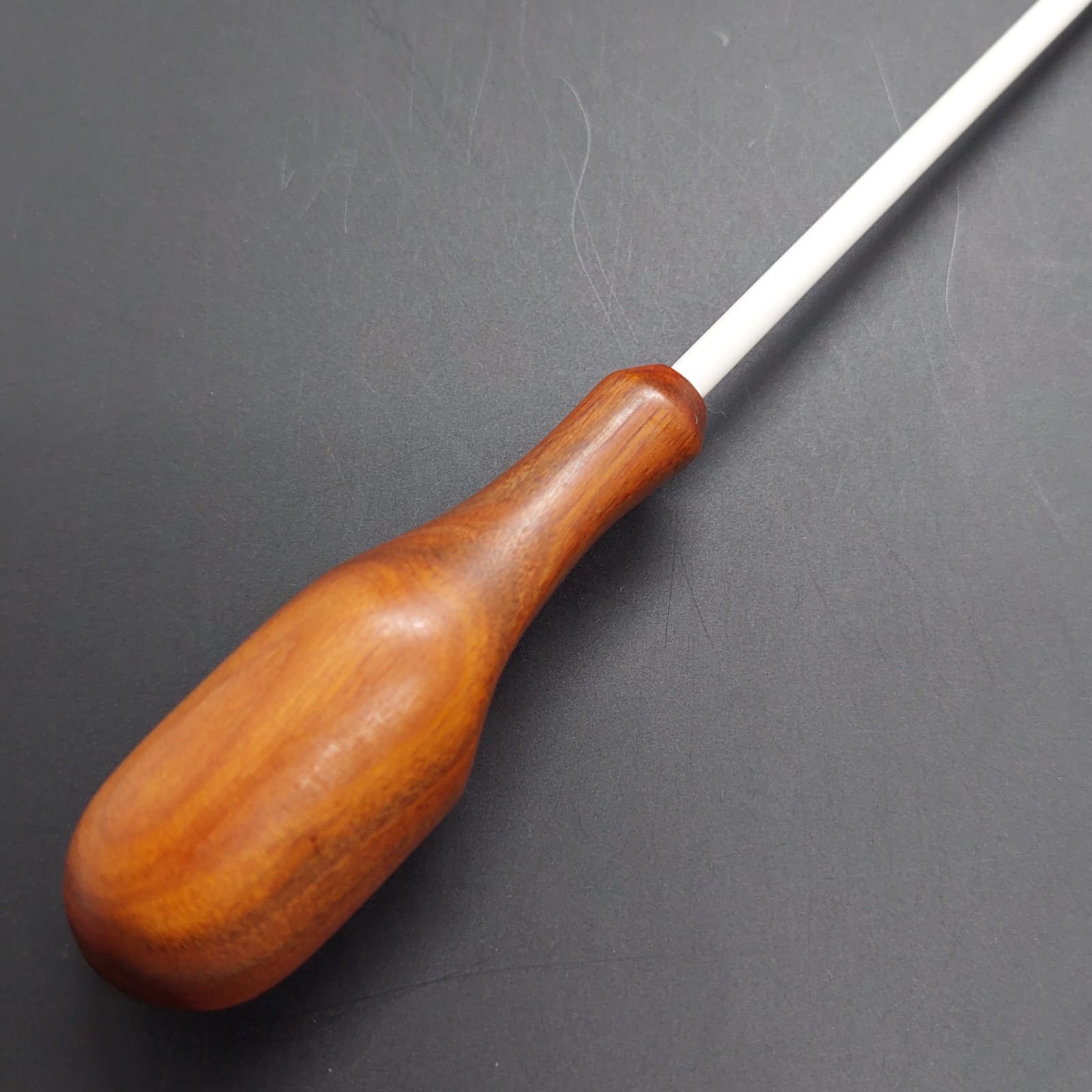 Batuta de maestro com empunhadura modelo Anatômico, cuidadosamente esculpida para um encaixe natural dos dedos e máximo conforto durante a regência.