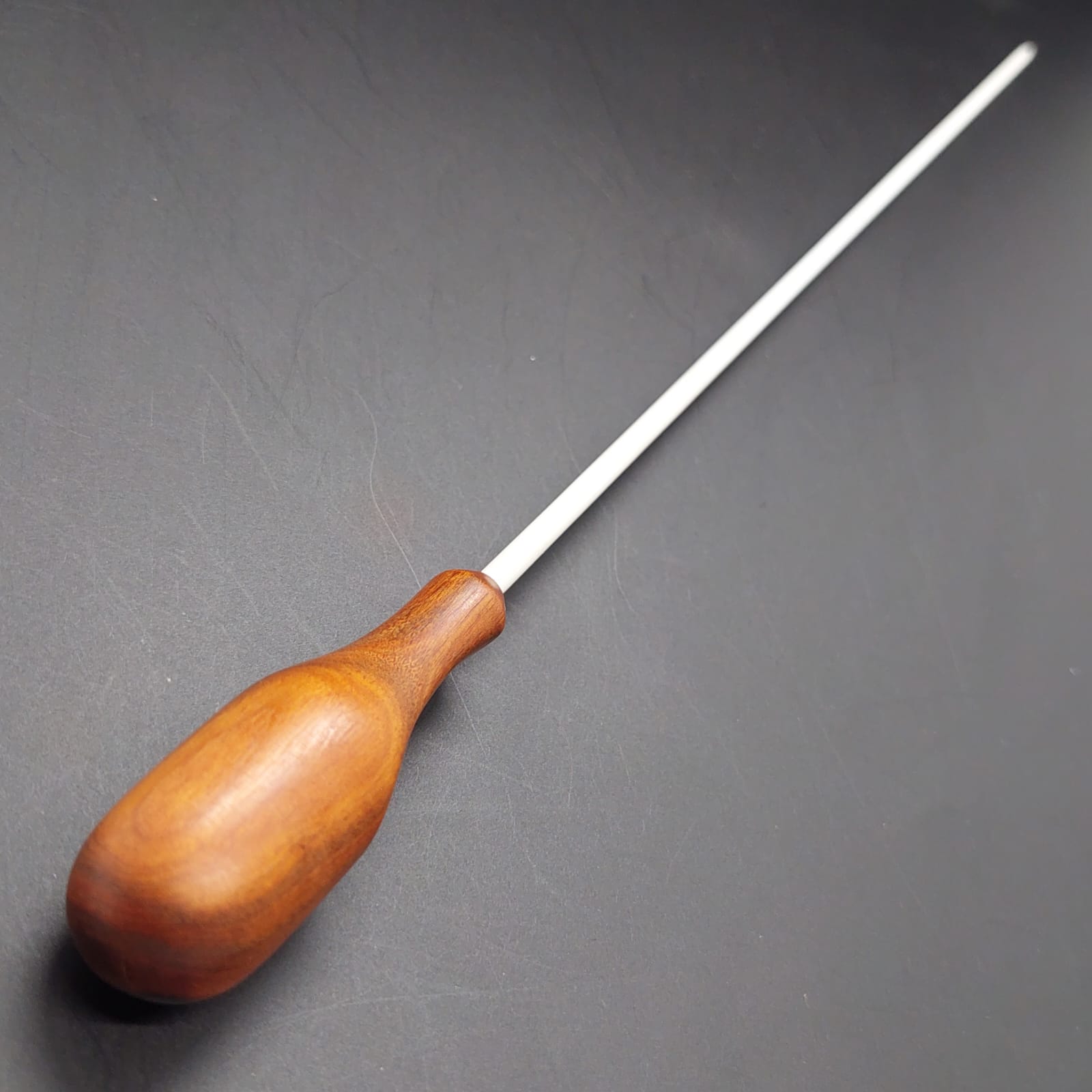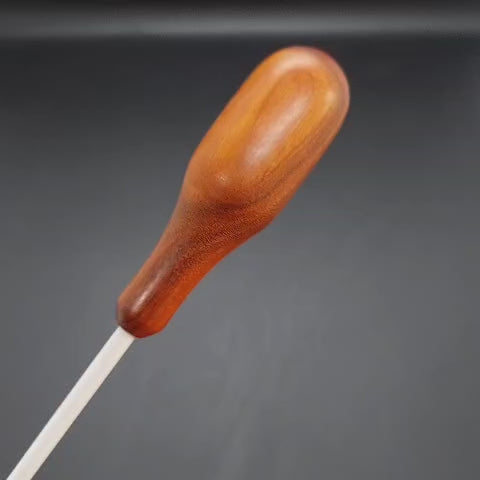 A pera da batuta é produzida em madeira de alta qualidade, resistente e cuidadosamente selecionada para garantir durabilidade e beleza. Seu acabamento realça os veios naturais da madeira, valorizando sua textura única e assegurando que a batuta se destaque com elegância e autenticidade.