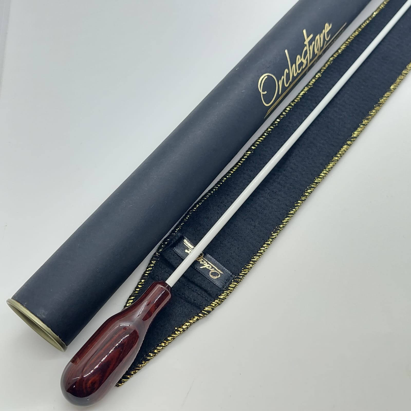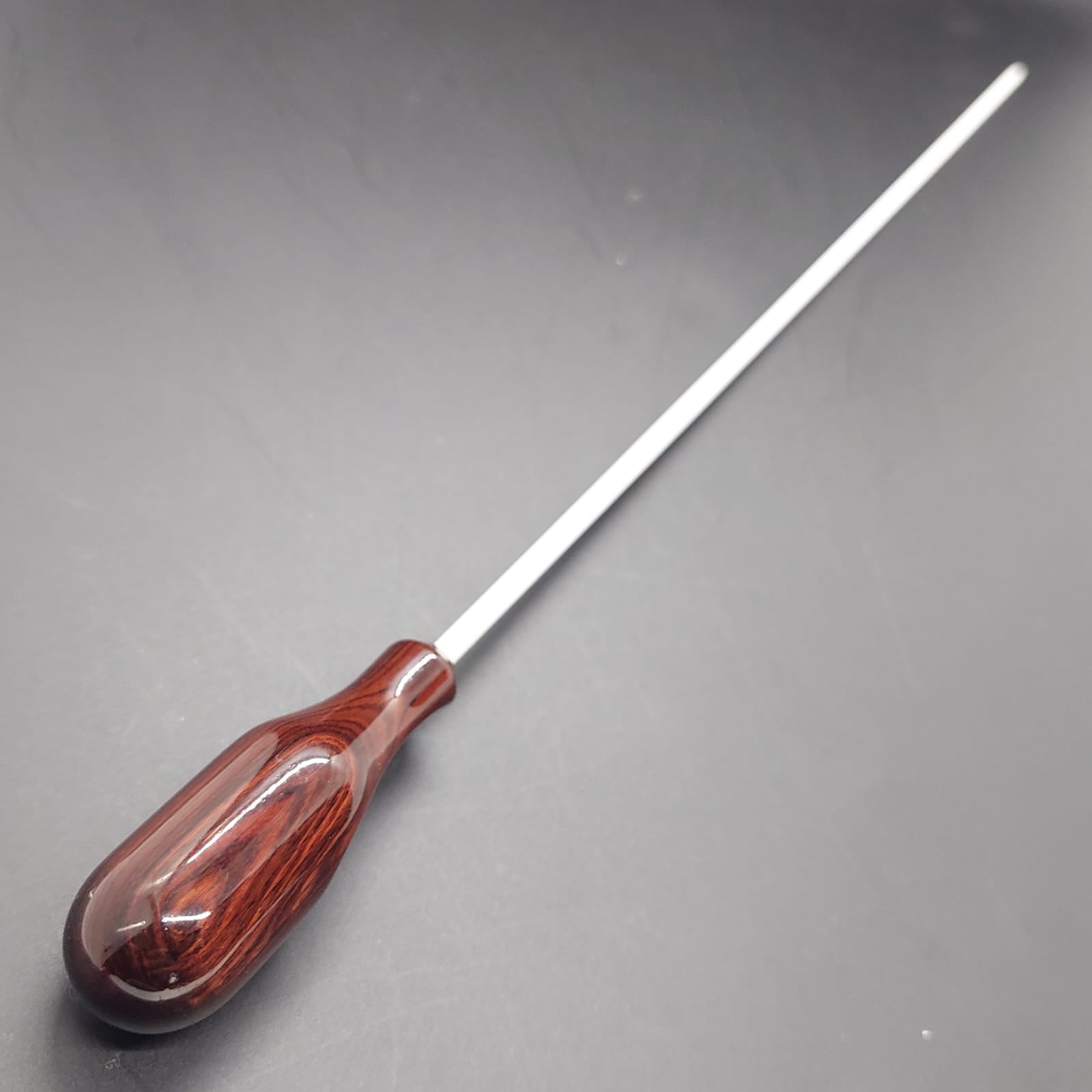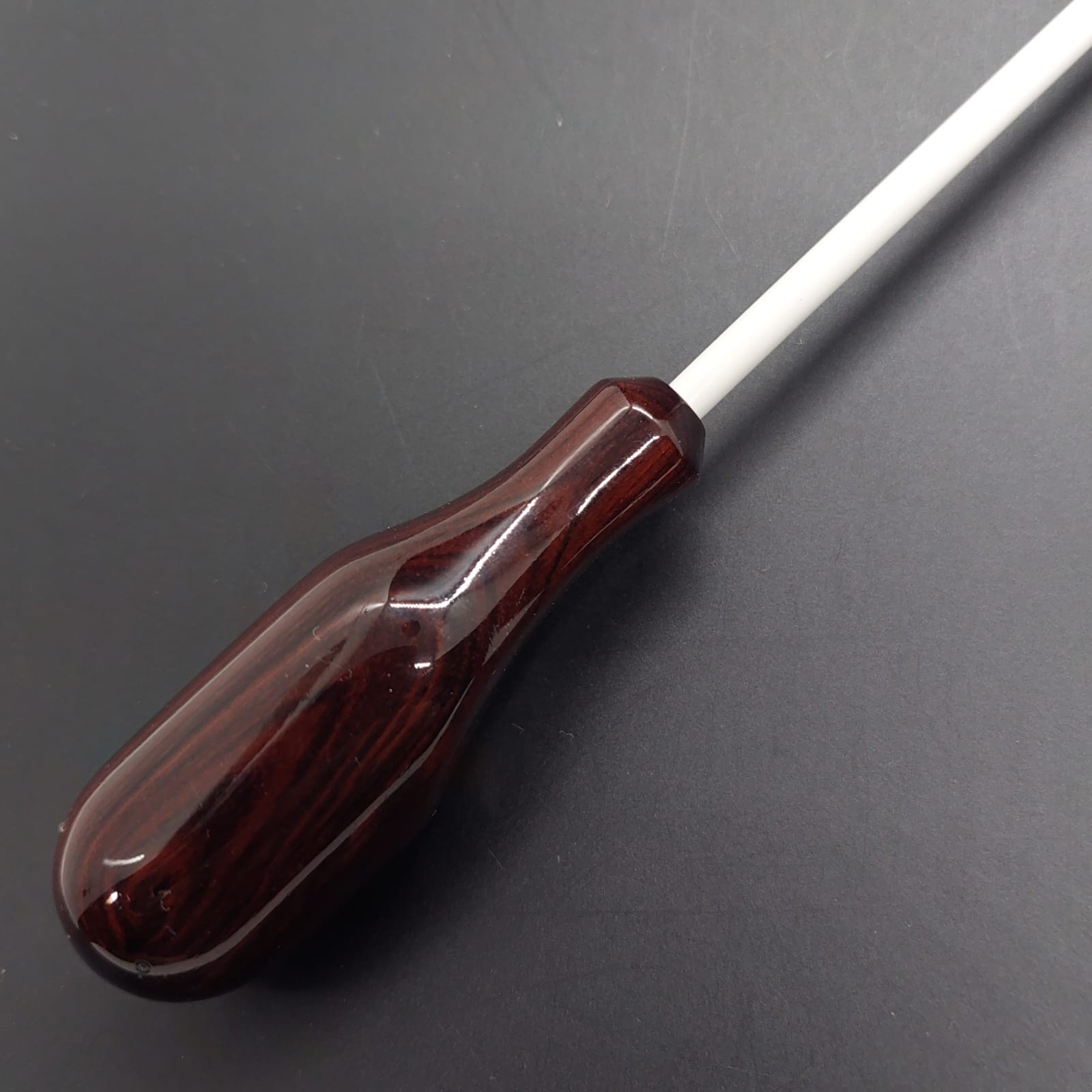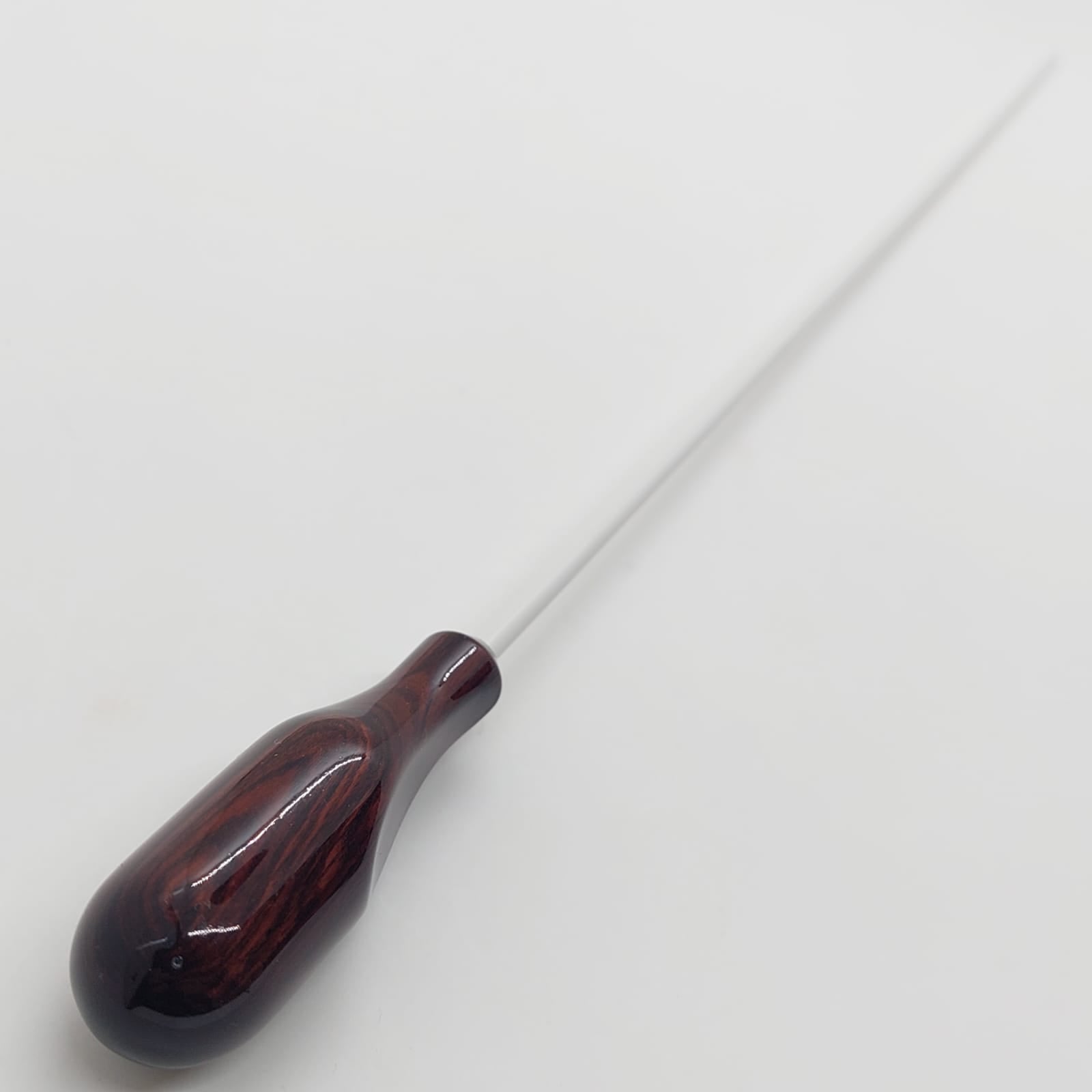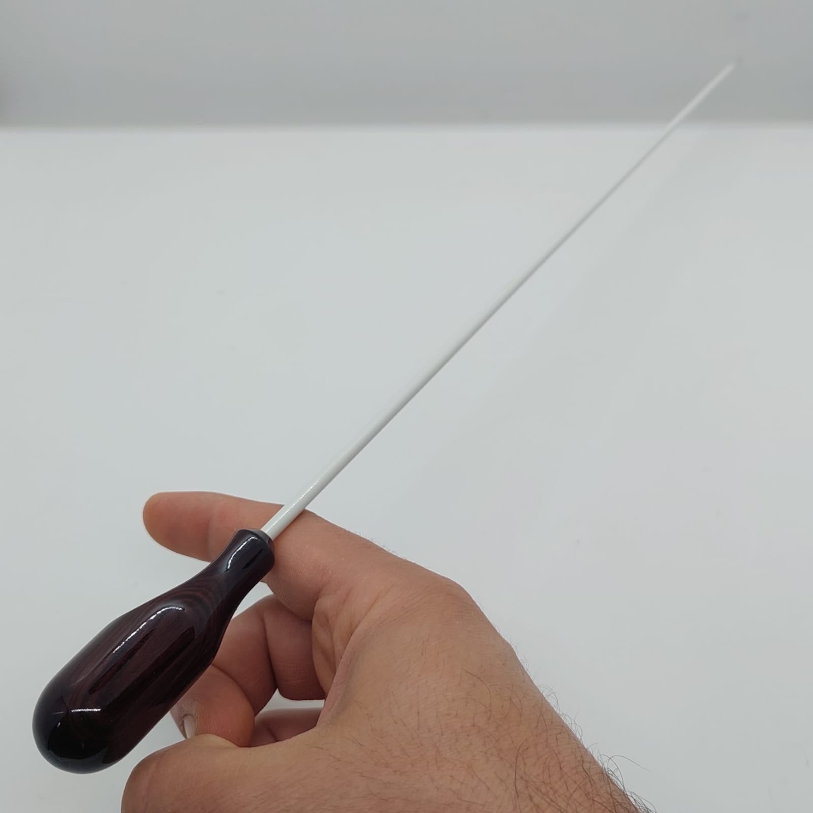 Batuta de maestro com empunhadura modelo Anatômico, cuidadosamente esculpida para um encaixe natural dos dedos e máximo conforto durante a regência.
