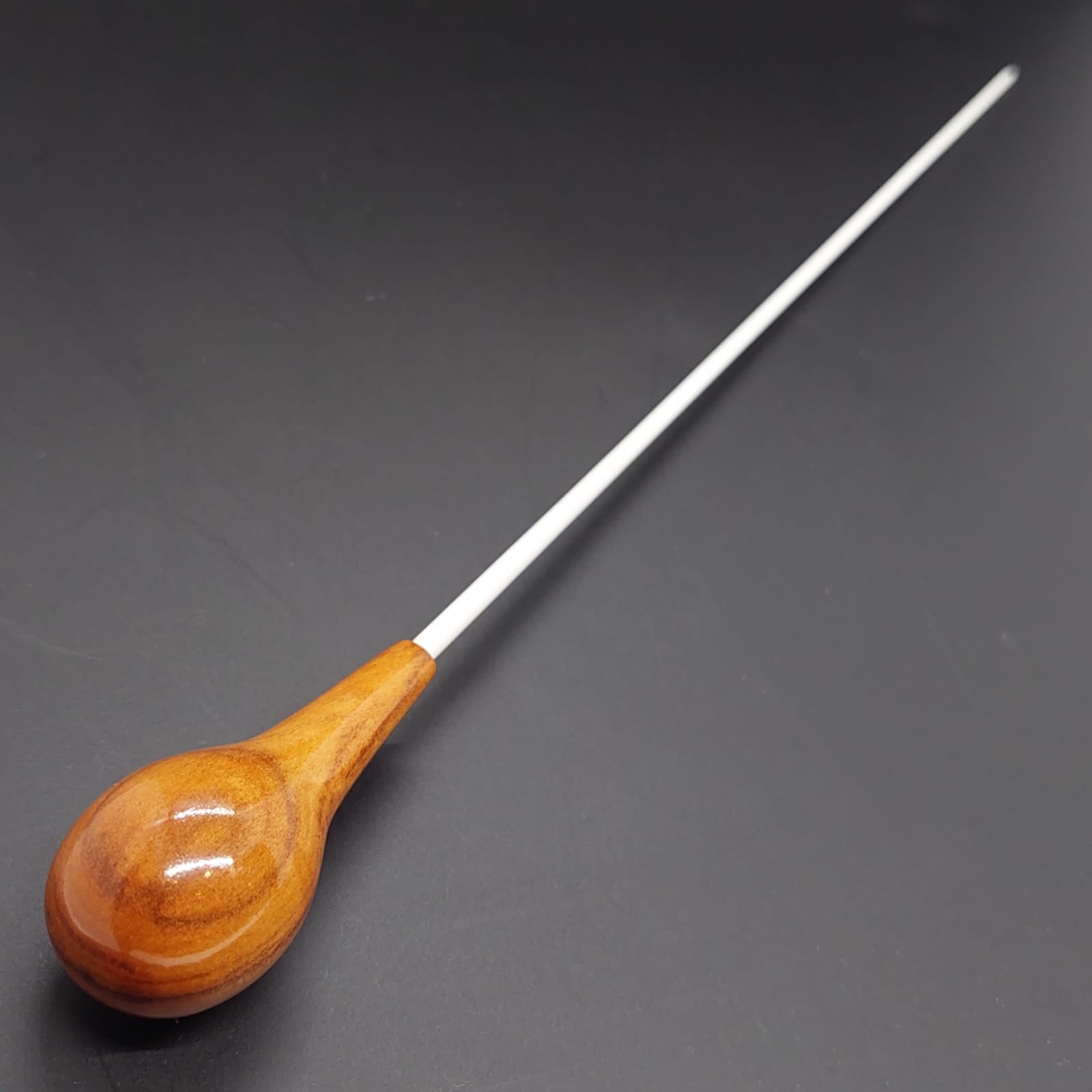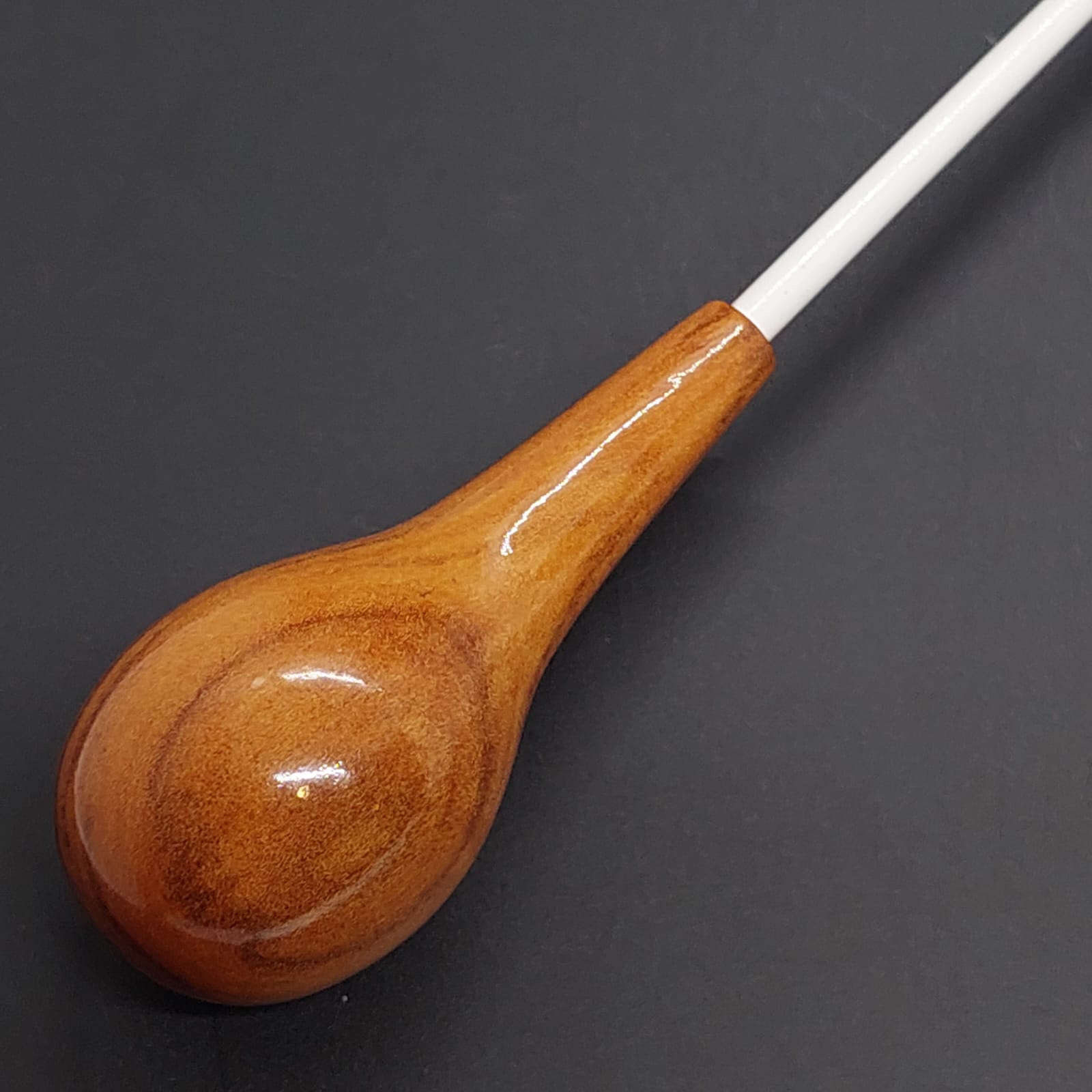 A pera da batuta é produzida em madeira de alta qualidade, resistente e cuidadosamente selecionada para garantir durabilidade e beleza. Seu acabamento realça os veios naturais da madeira, valorizando sua textura única e assegurando que a batuta se destaque com elegância e autenticidade.