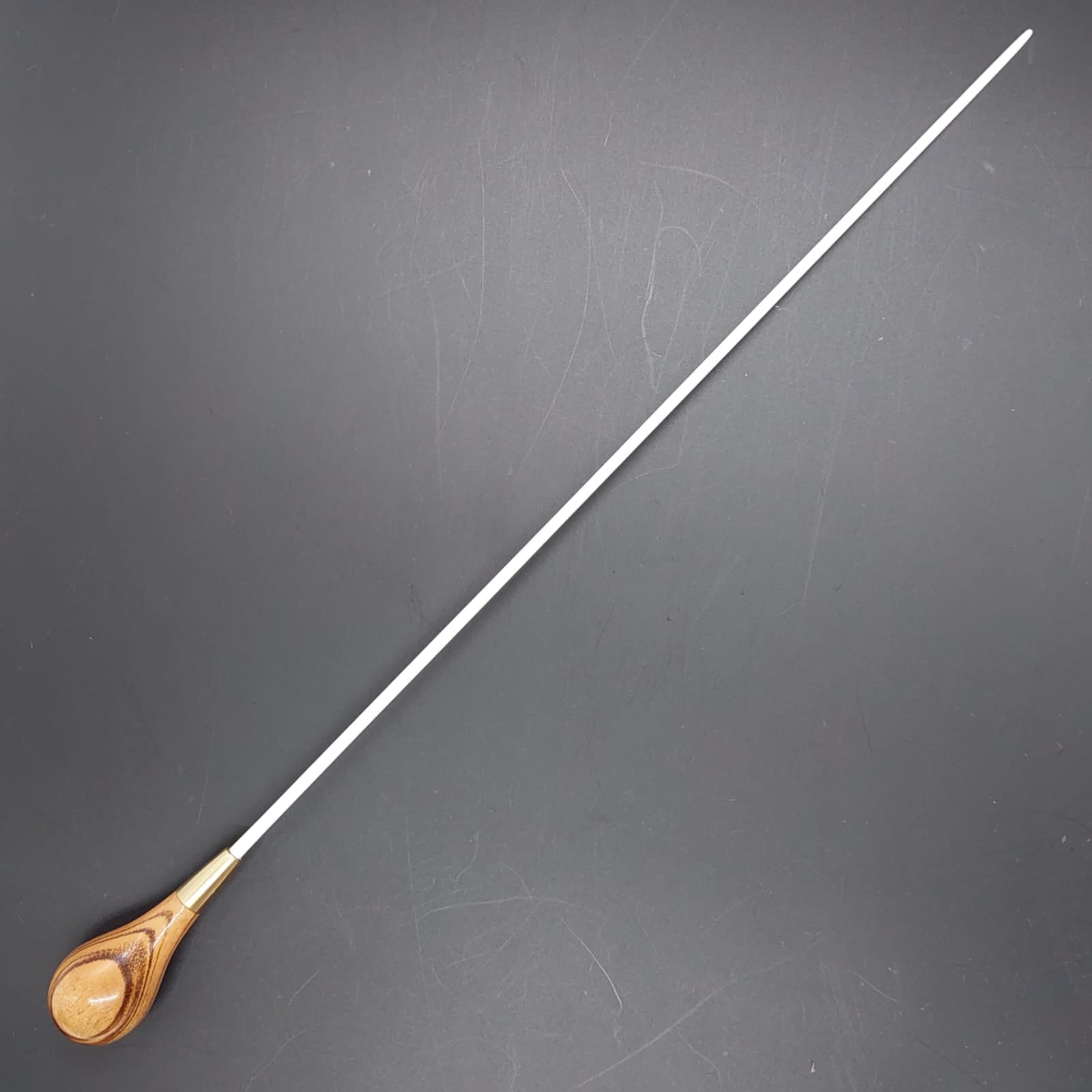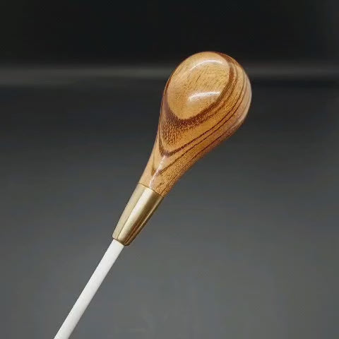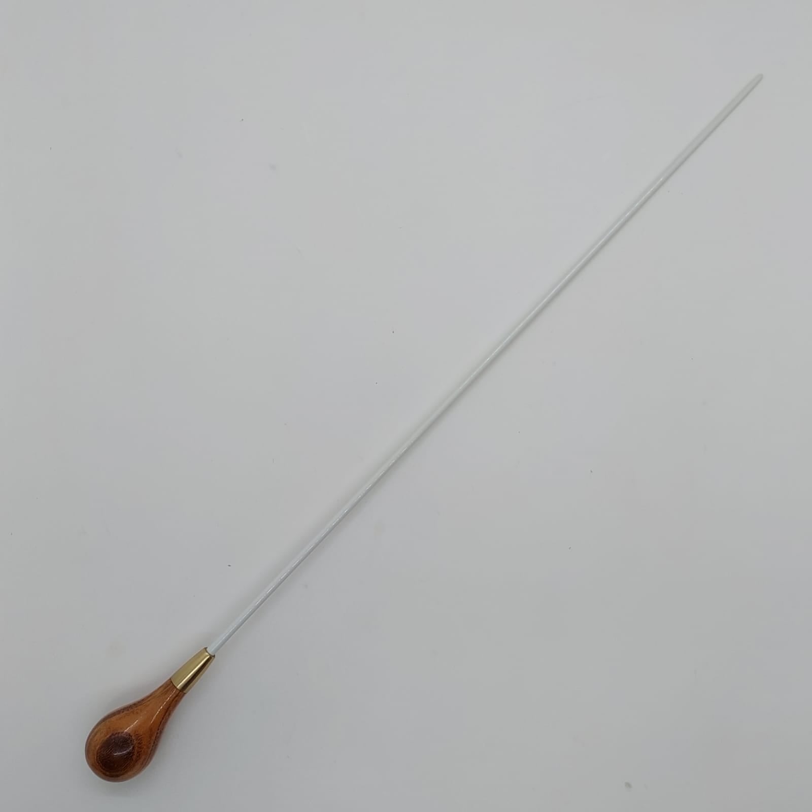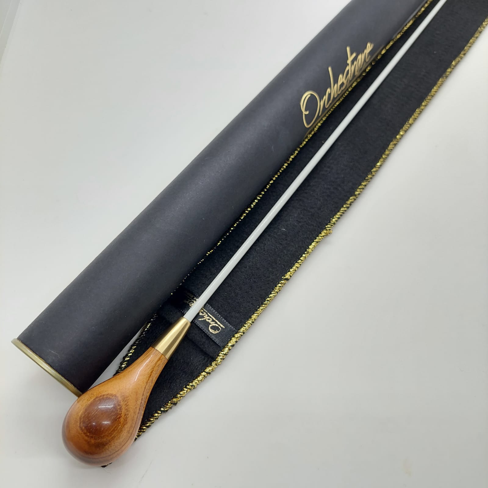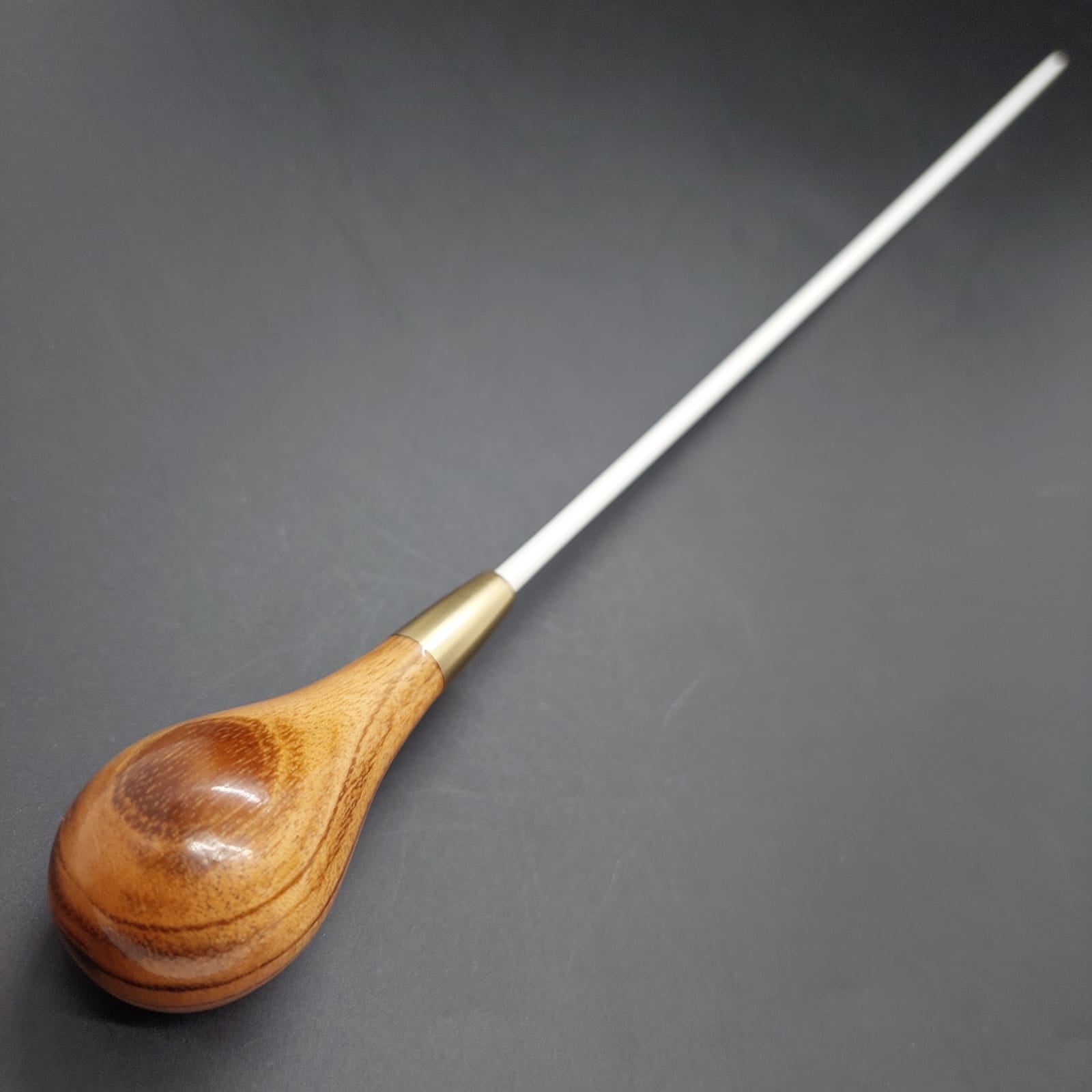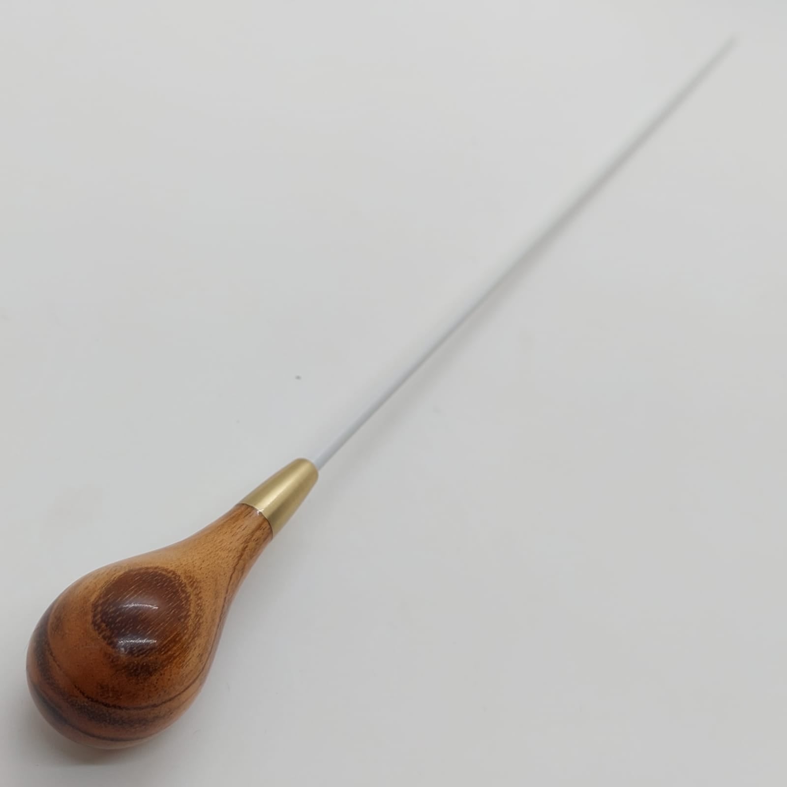 A pera da batuta é produzida em madeira de alta qualidade, resistente e cuidadosamente selecionada, combinada a detalhes em metal esculpido que realçam sua beleza e sofisticação. Essa união valoriza tanto a textura natural da madeira quanto o brilho refinado do metal, conferindo à batuta um visual elegante e único.