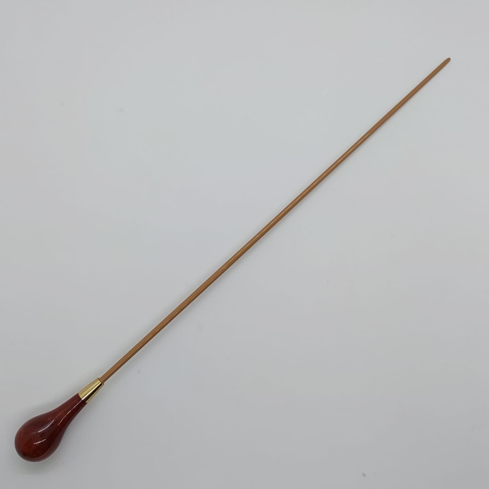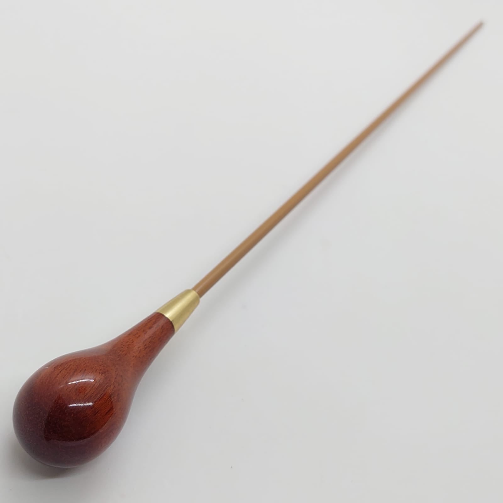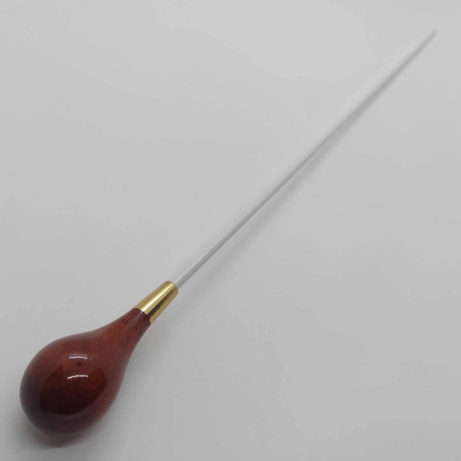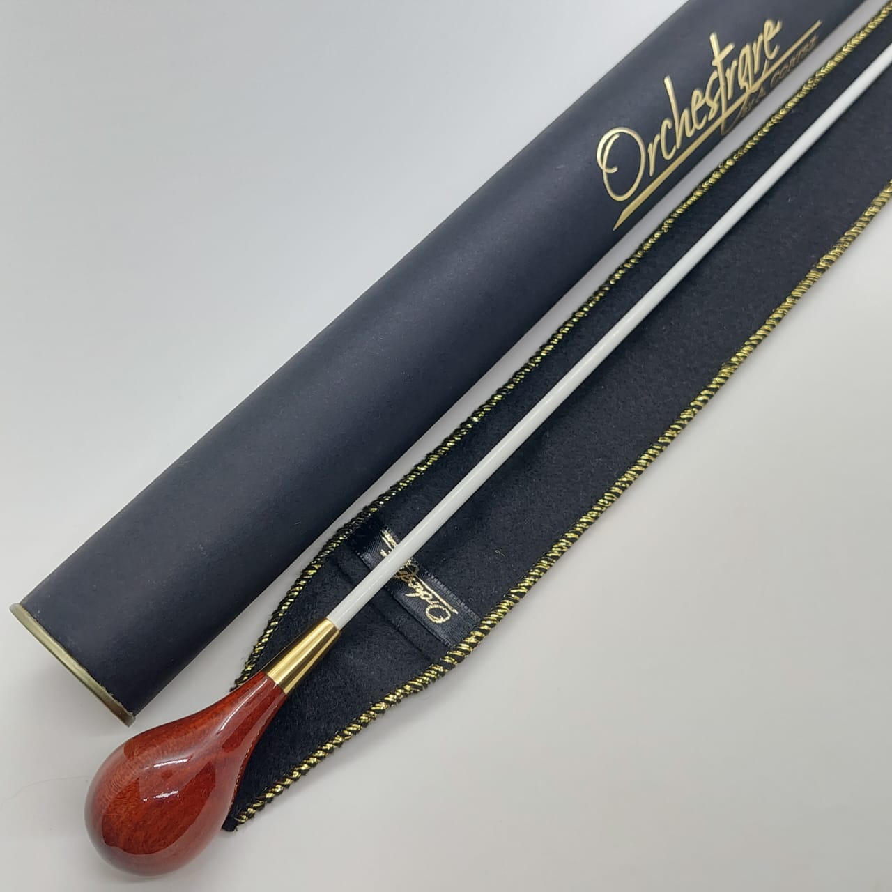 A pera da batuta é produzida em madeira de alta qualidade, resistente e cuidadosamente selecionada, combinada a detalhes em metal esculpido que realçam sua beleza e sofisticação. Essa união valoriza tanto a textura natural da madeira quanto o brilho refinado do metal, conferindo à batuta um visual elegante e único.