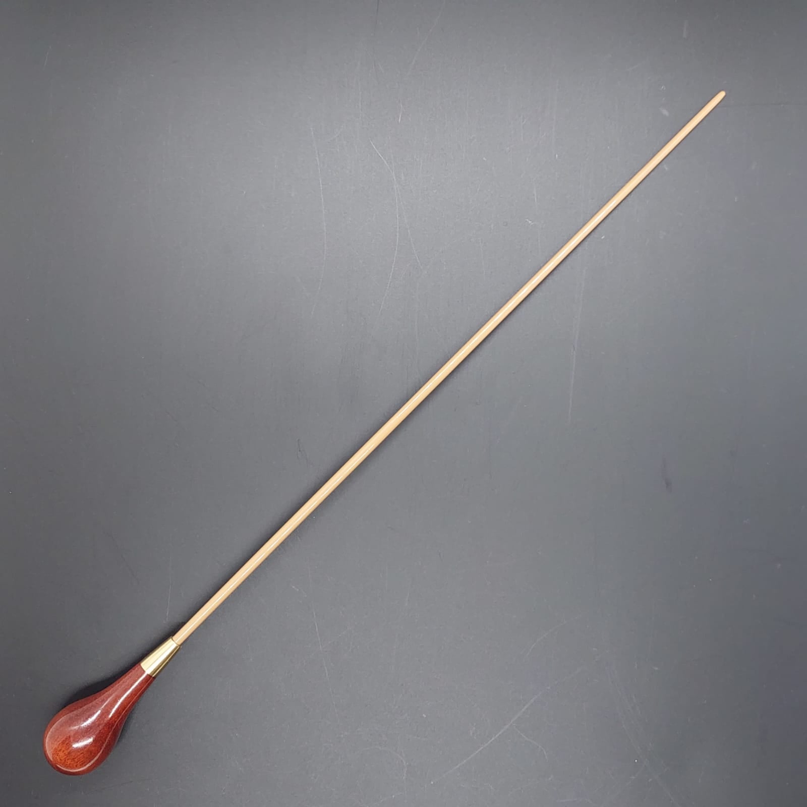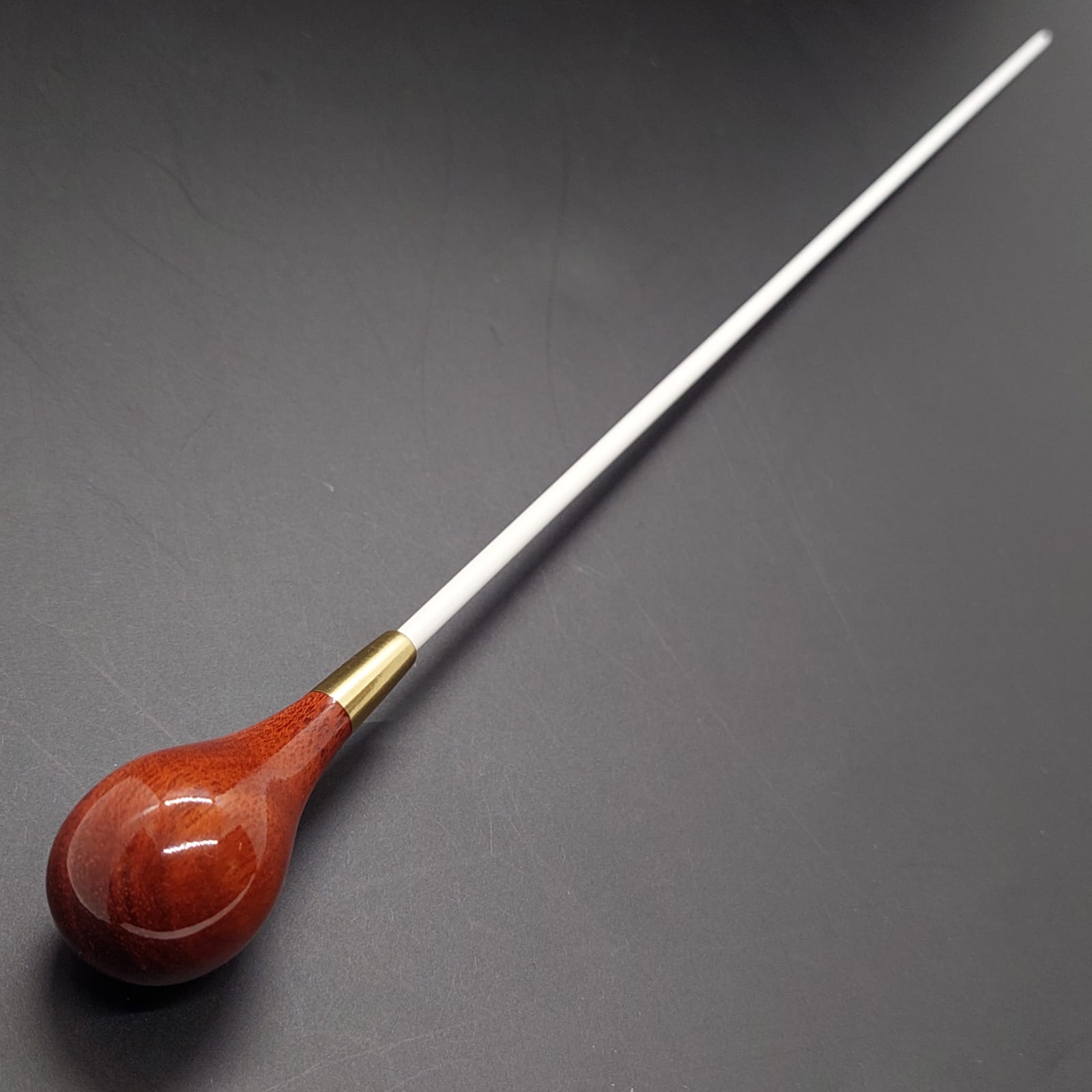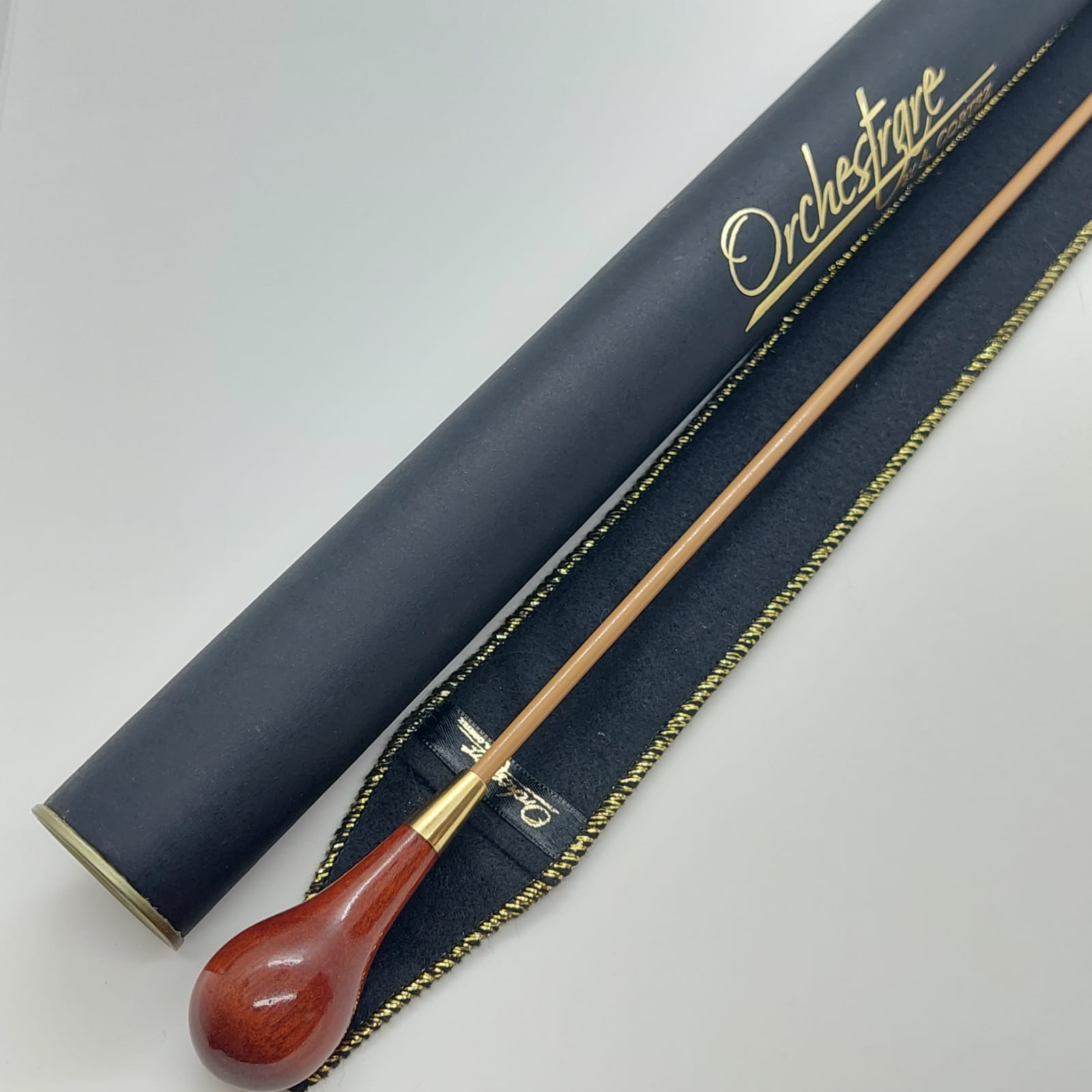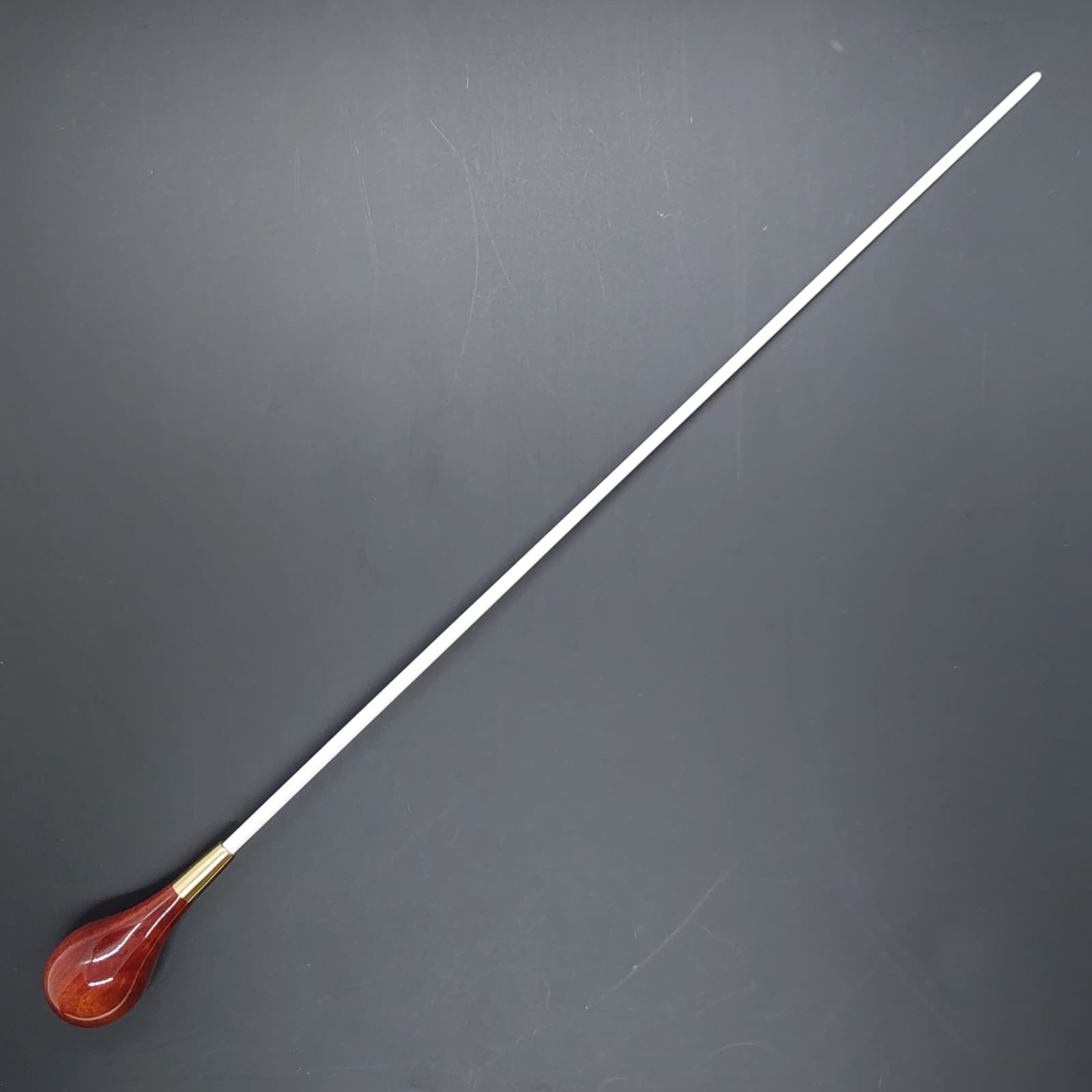 A pera da batuta é produzida em madeira de alta qualidade, resistente e cuidadosamente selecionada, combinada a detalhes em metal esculpido que realçam sua beleza e sofisticação. Essa união valoriza tanto a textura natural da madeira quanto o brilho refinado do metal, conferindo à batuta um visual elegante e único.