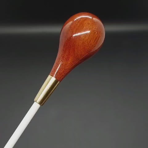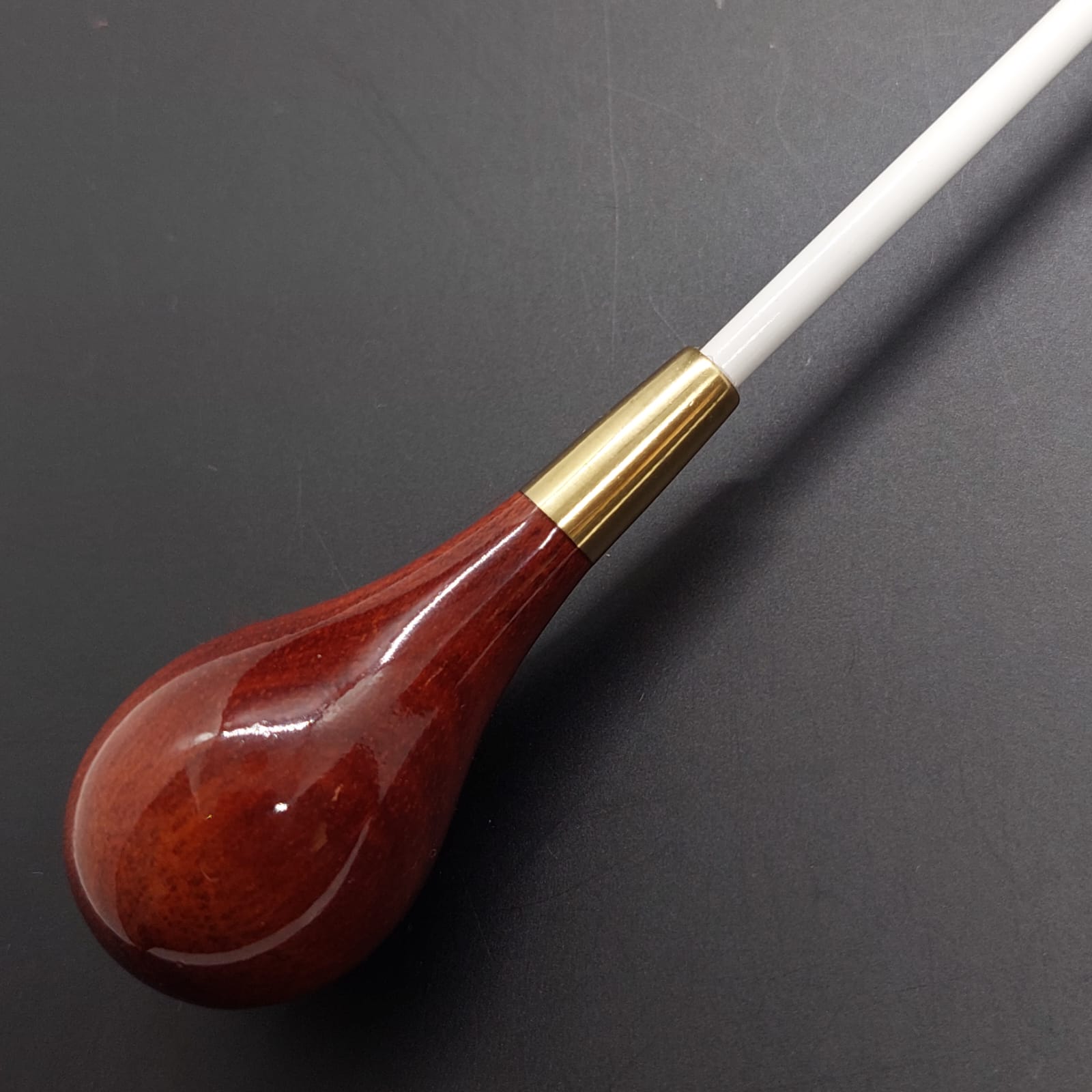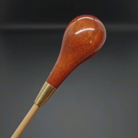 Batuta de maestro com empunhadura modelo Clássico Bolinha, de formato arredondado e encorpado, esculpida para um encaixe firme e confortável dos dedos, aliando presença e elegância a cada gesto.