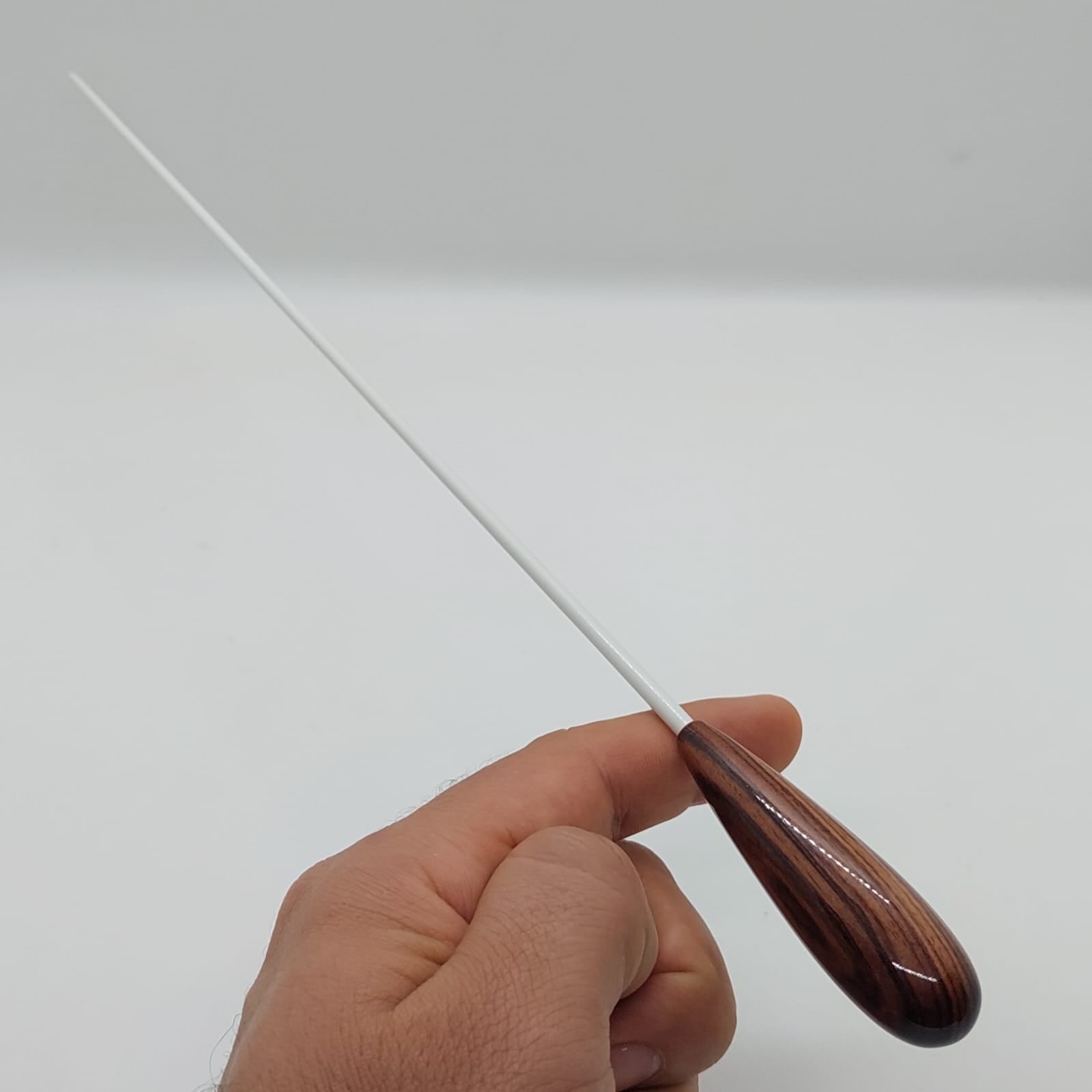 Batuta de maestro com empunhadura modelo Clássico Fit, de perfil fino e discreto, cuidadosamente esculpida para oferecer leveza, precisão e elegância a cada movimento.
