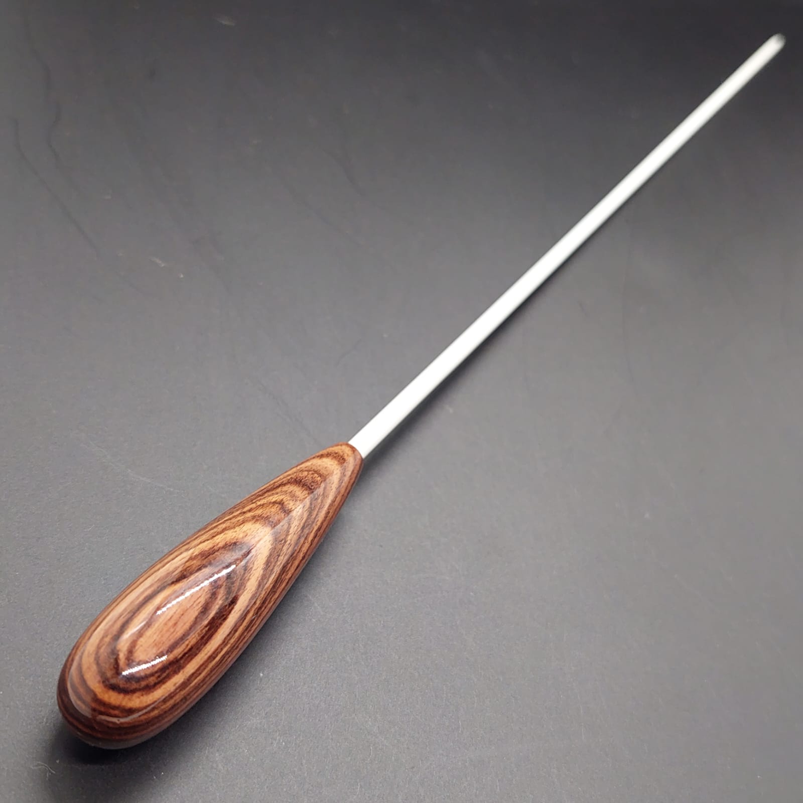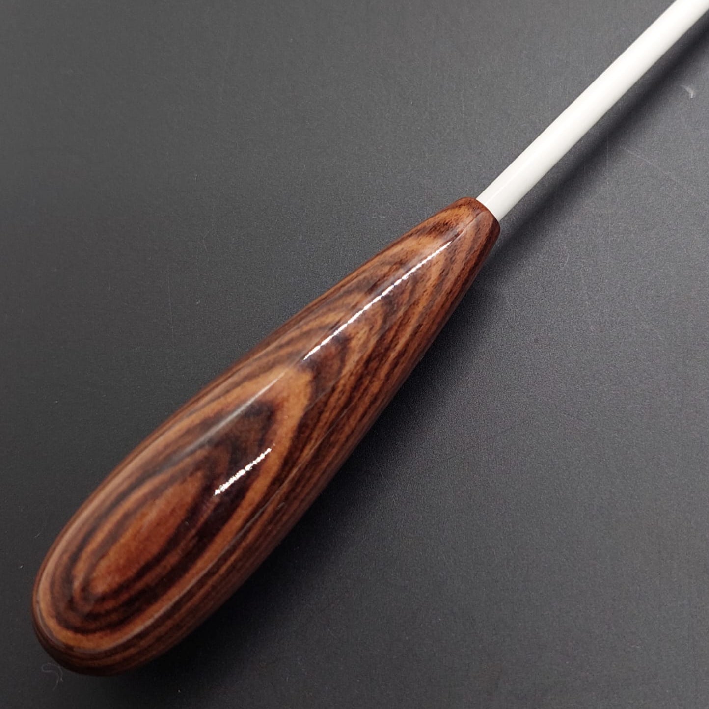 A pera da batuta é produzida em madeira de alta qualidade, resistente e cuidadosamente selecionada para garantir durabilidade e beleza. Seu acabamento realça os veios naturais da madeira, valorizando sua textura única e assegurando que a batuta se destaque com elegância e autenticidade.