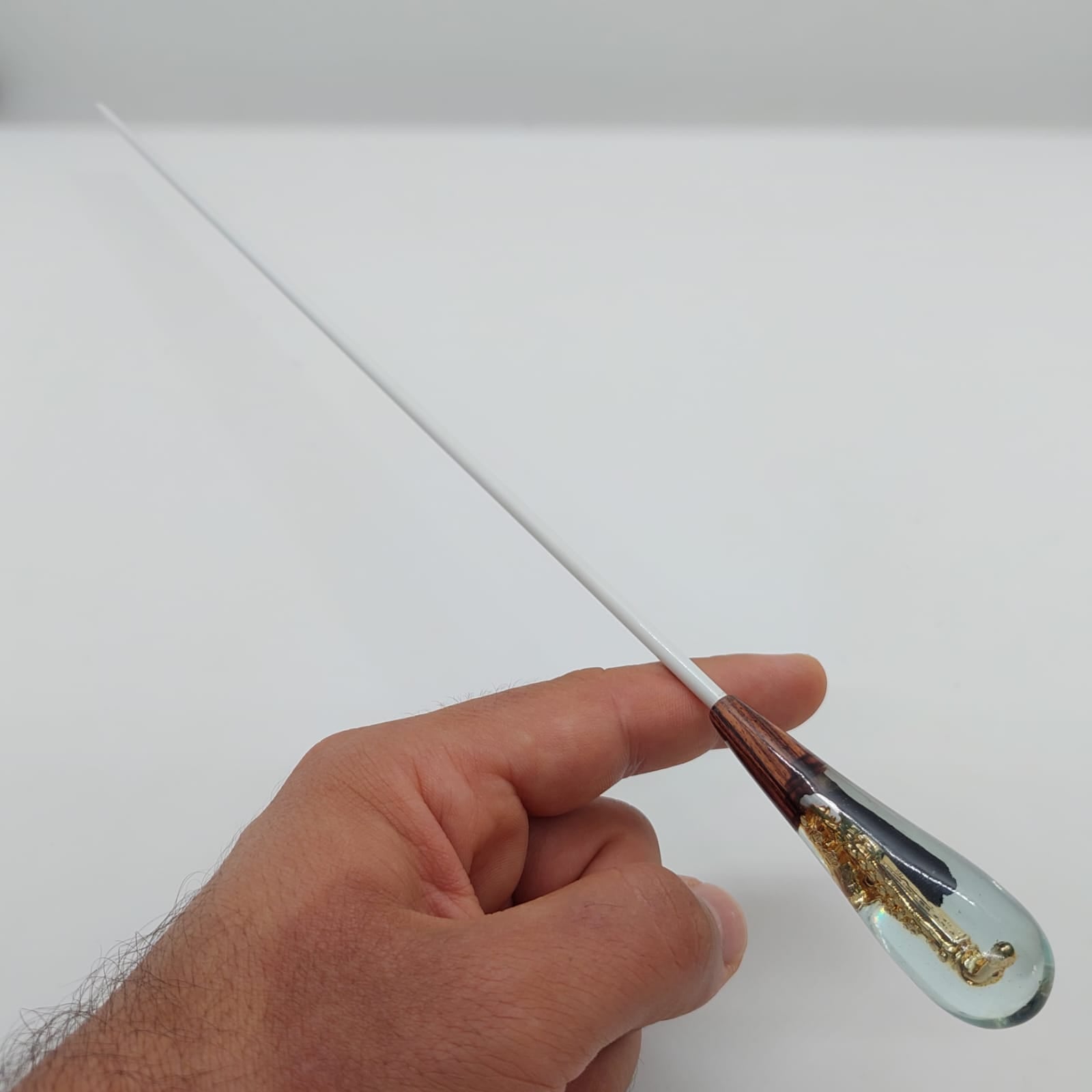 Batuta de maestro com empunhadura modelo Clássico, finamente esculpida para um encaixe harmonioso dos dedos, oferecendo conforto e elegância em cada movimento.