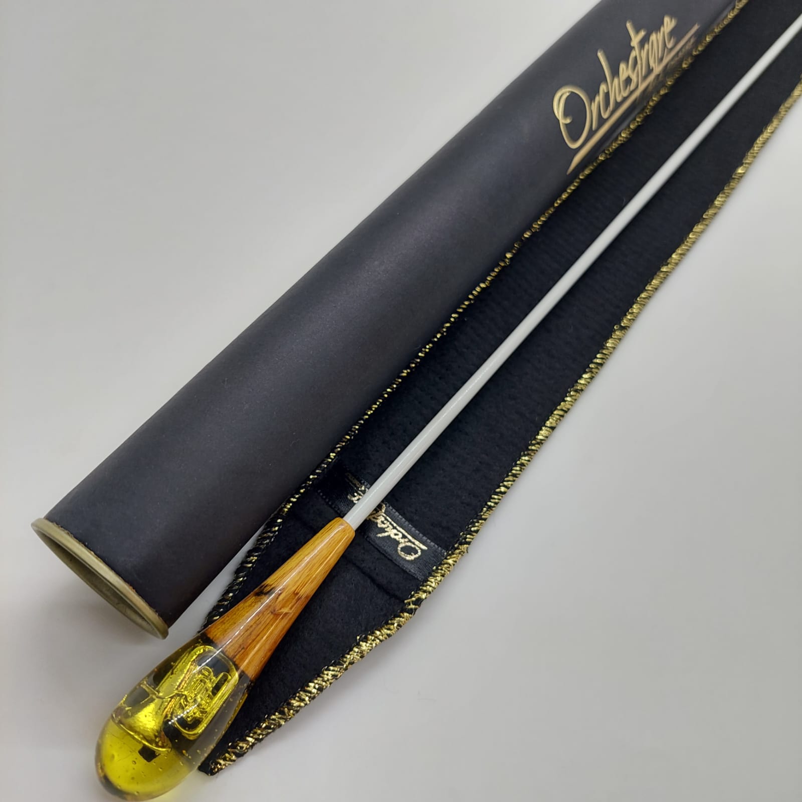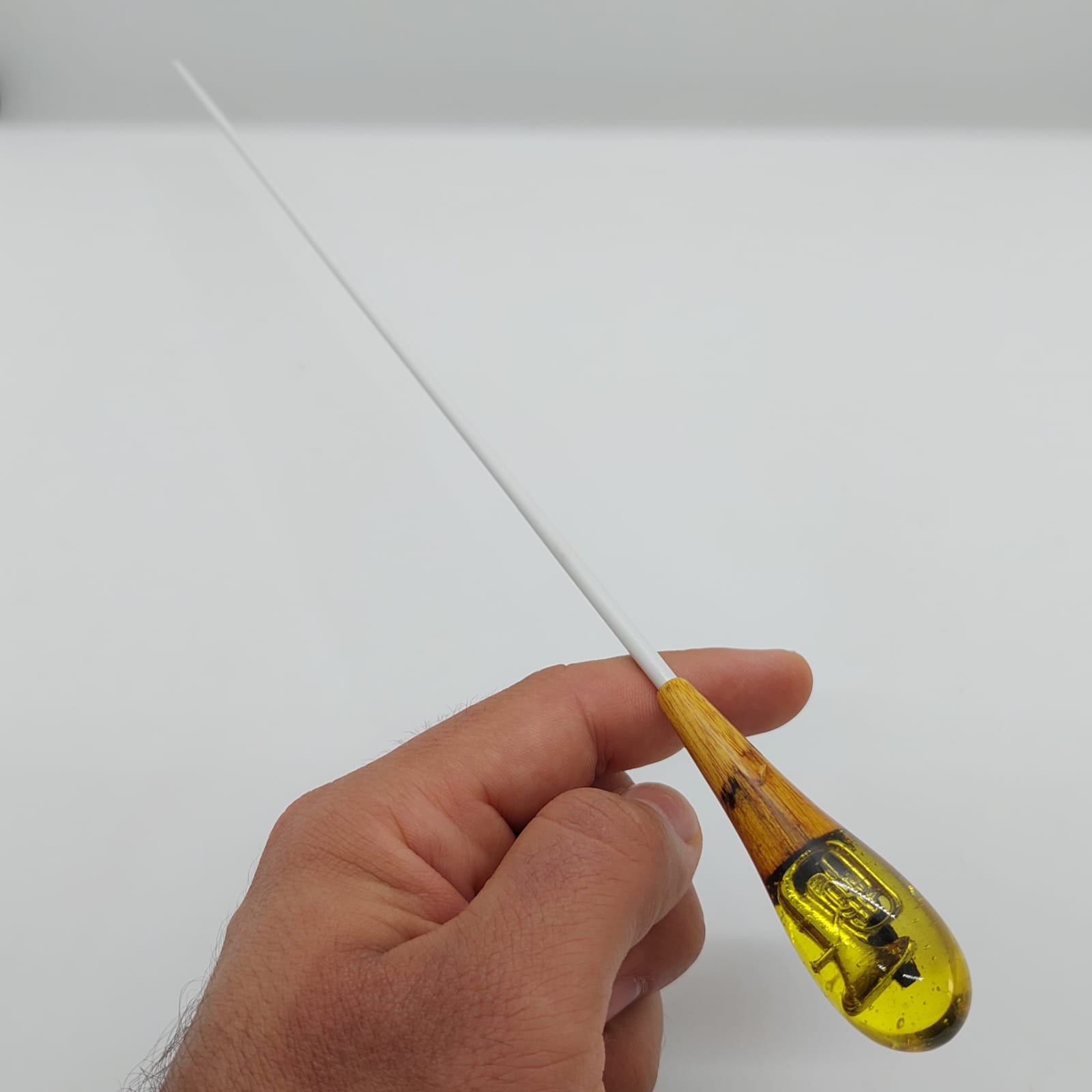 Batuta de maestro com empunhadura modelo Clássico, finamente esculpida para um encaixe harmonioso dos dedos, oferecendo conforto e elegância em cada movimento.