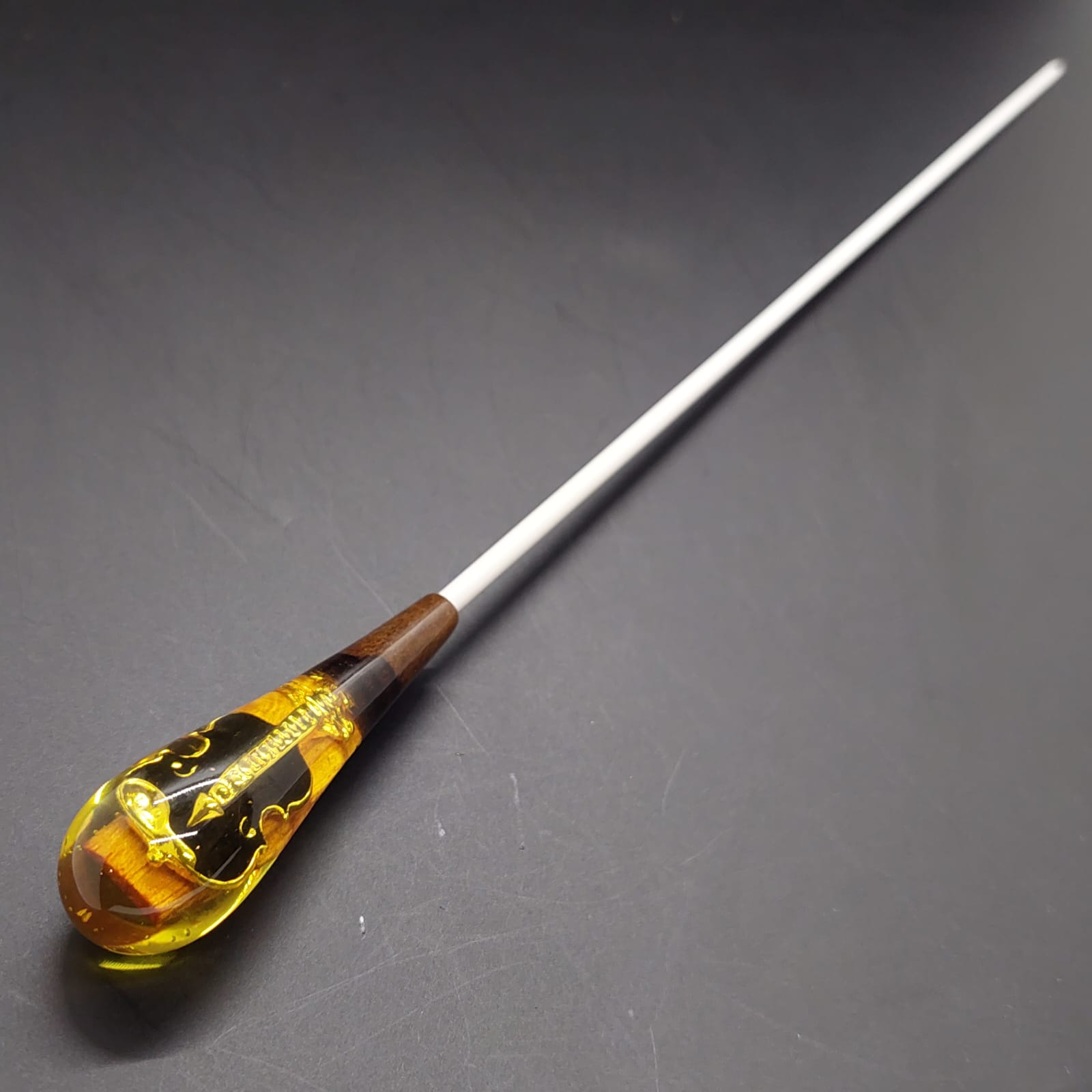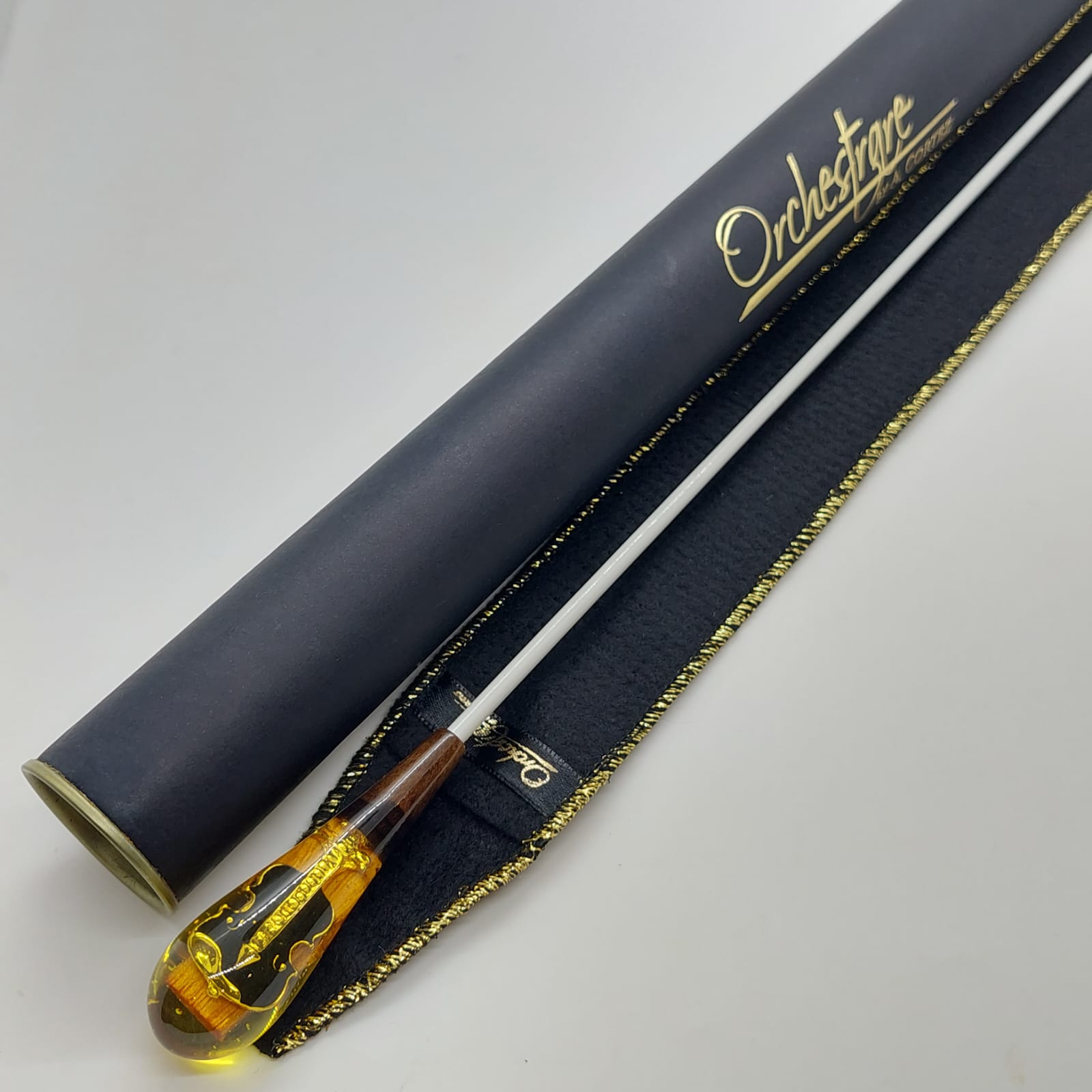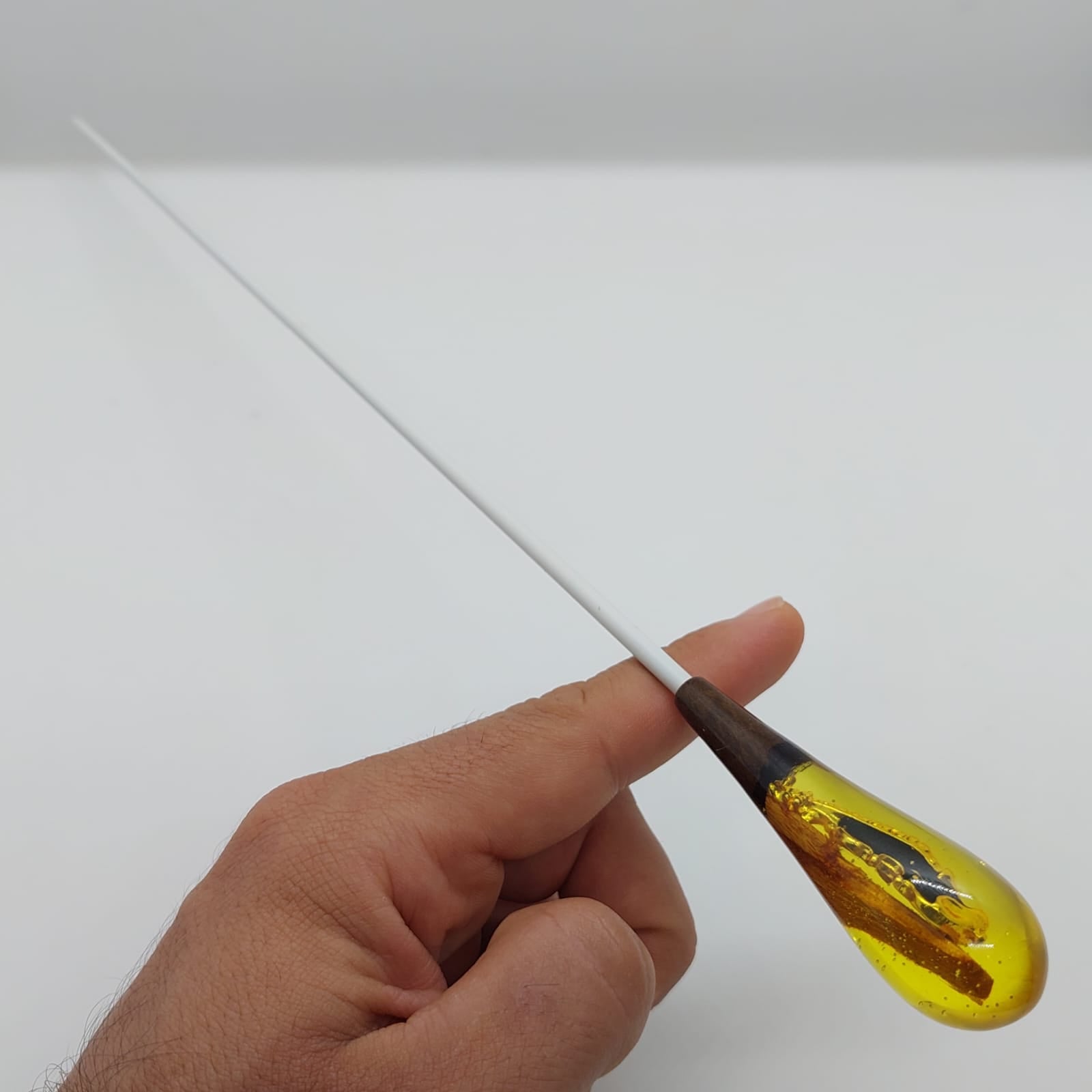 Batuta de maestro com empunhadura modelo Clássico, finamente esculpida para um encaixe harmonioso dos dedos, oferecendo conforto e elegância em cada movimento.