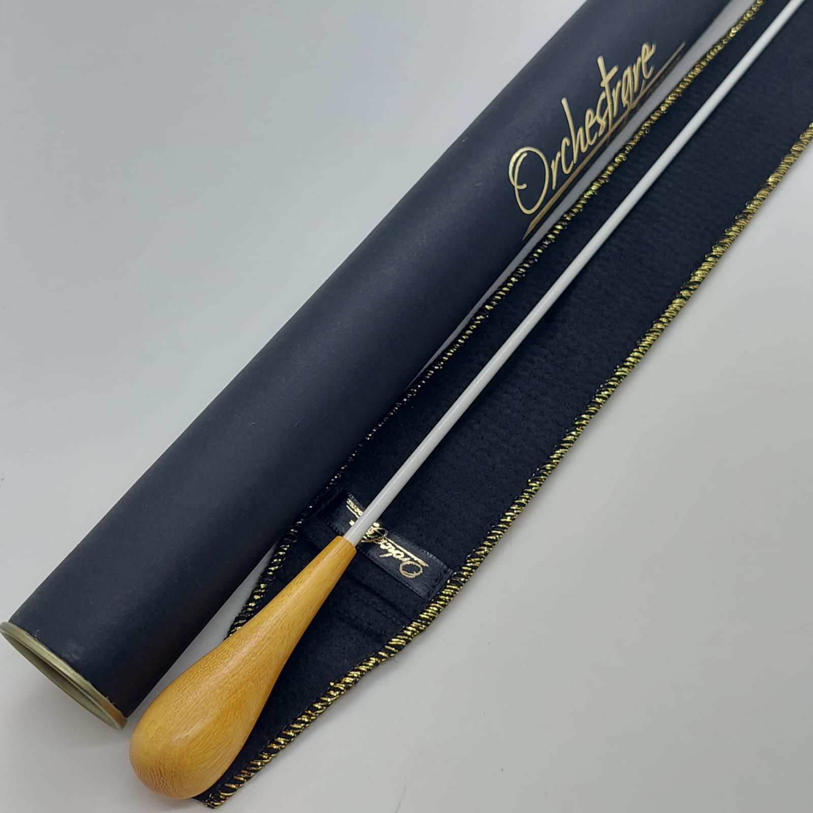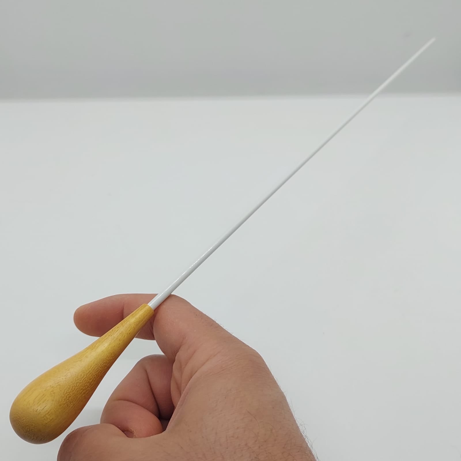 Batuta de maestro com empunhadura modelo Clássico, finamente esculpida para um encaixe harmonioso dos dedos, oferecendo conforto e elegância em cada movimento.