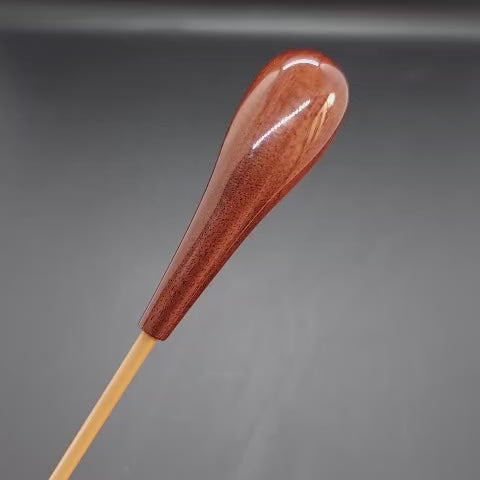 A pera da batuta é produzida em madeira de alta qualidade, resistente e cuidadosamente selecionada para garantir durabilidade e beleza. Seu acabamento realça os veios naturais da madeira, valorizando sua textura única e assegurando que a batuta se destaque com elegância e autenticidade.