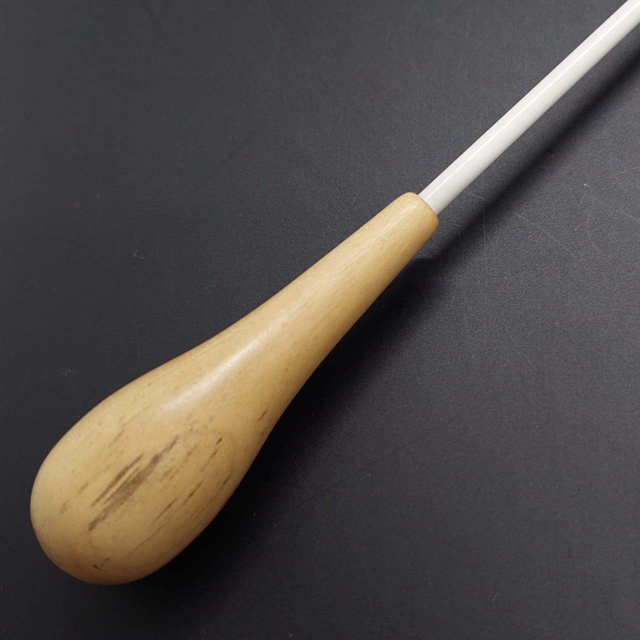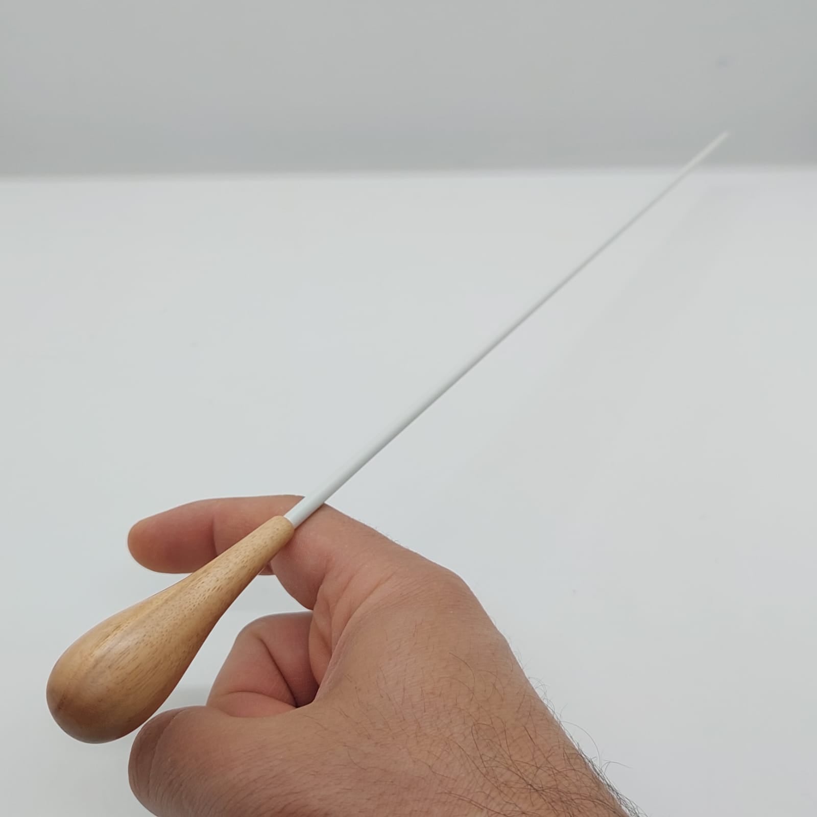 Batuta de maestro com empunhadura modelo Clássico, finamente esculpida para um encaixe harmonioso dos dedos, oferecendo conforto e elegância em cada movimento.