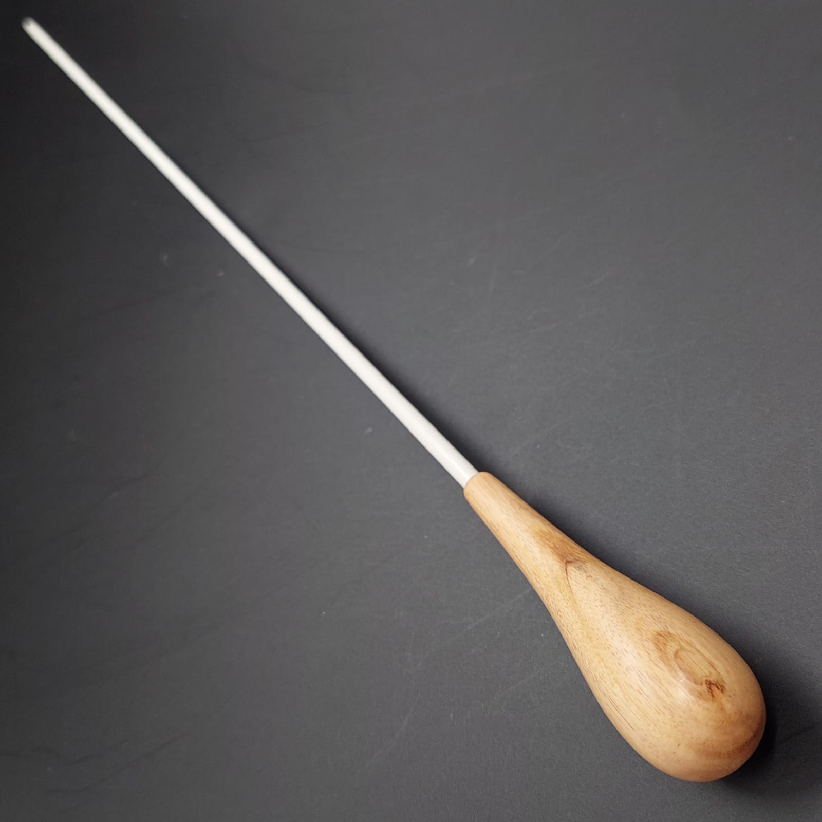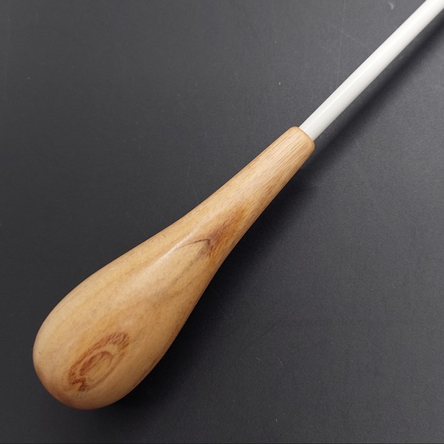 A pera da batuta é produzida em madeira de alta qualidade, resistente e cuidadosamente selecionada para garantir durabilidade e beleza. Seu acabamento realça os veios naturais da madeira, valorizando sua textura única e assegurando que a batuta se destaque com elegância e autenticidade.