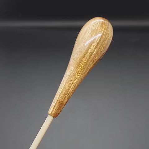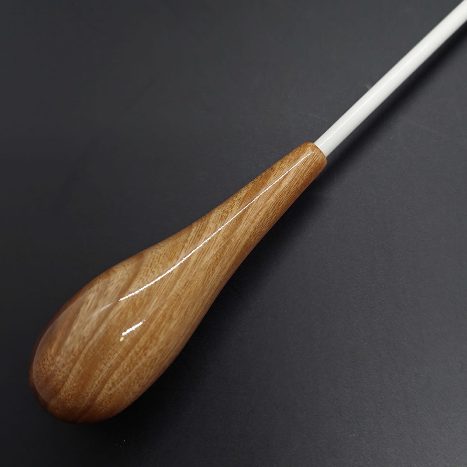 A pera da batuta é produzida em madeira de alta qualidade, resistente e cuidadosamente selecionada para garantir durabilidade e beleza. Seu acabamento realça os veios naturais da madeira, valorizando sua textura única e assegurando que a batuta se destaque com elegância e autenticidade.