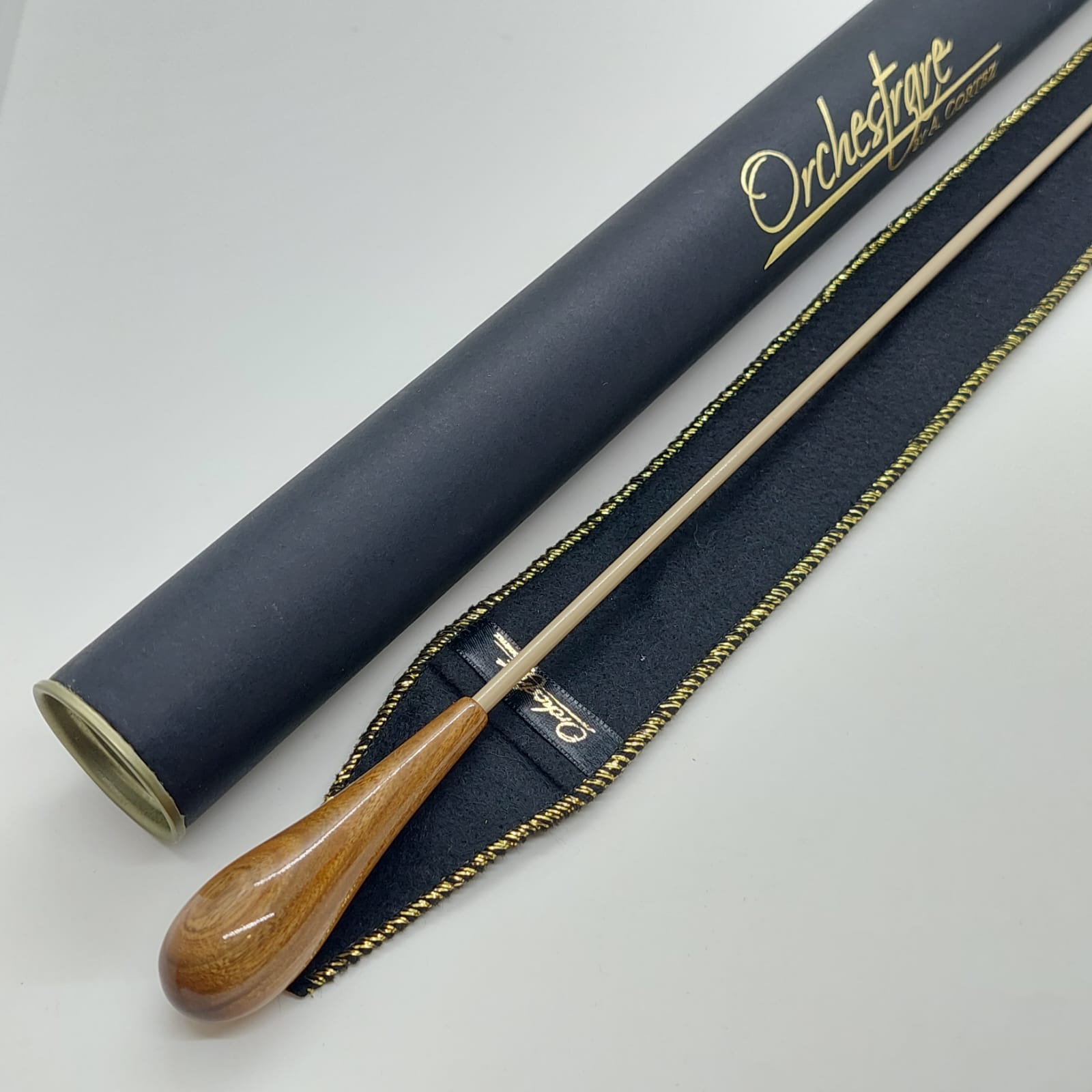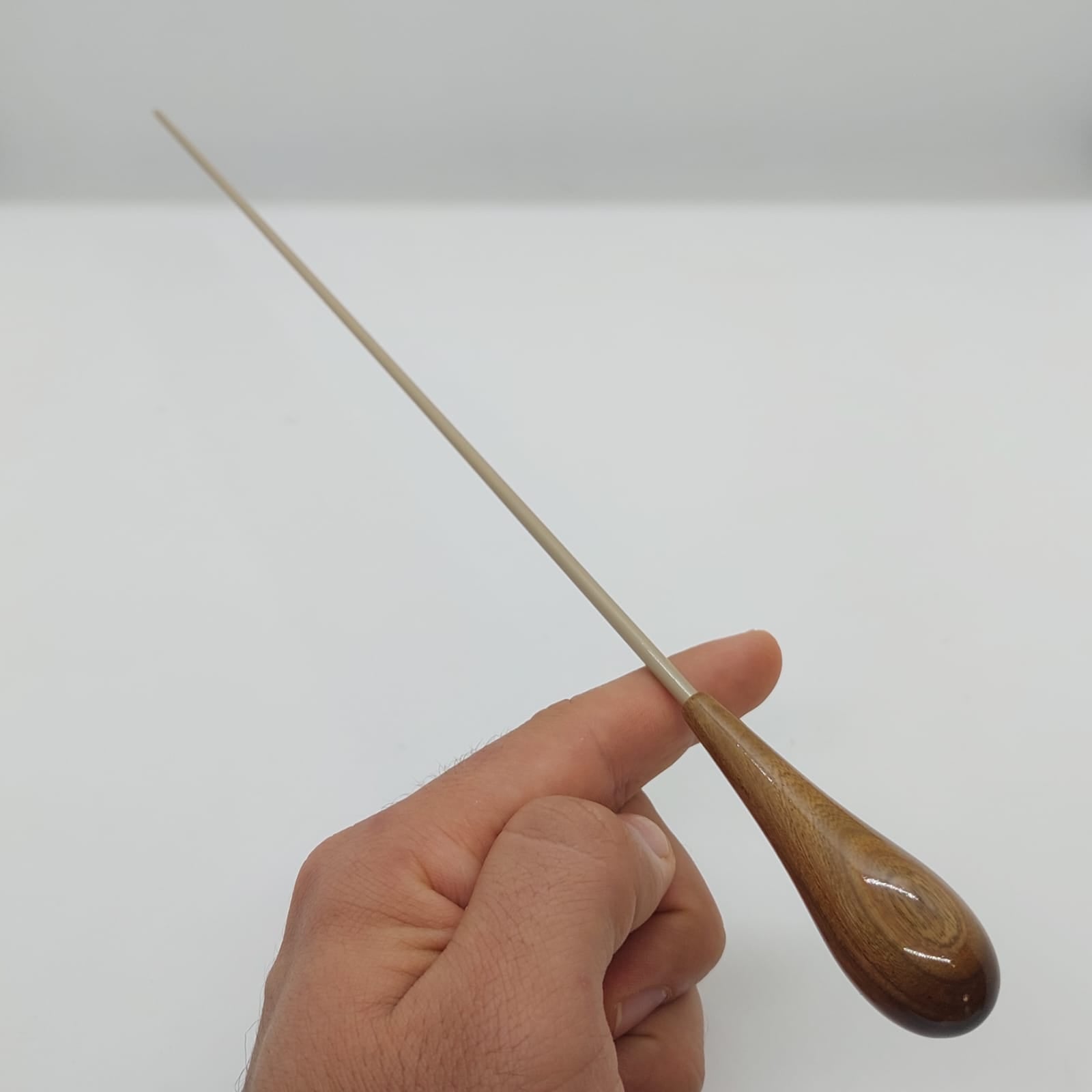 Batuta de maestro com empunhadura modelo Clássico, finamente esculpida para um encaixe harmonioso dos dedos, oferecendo conforto e elegância em cada movimento.