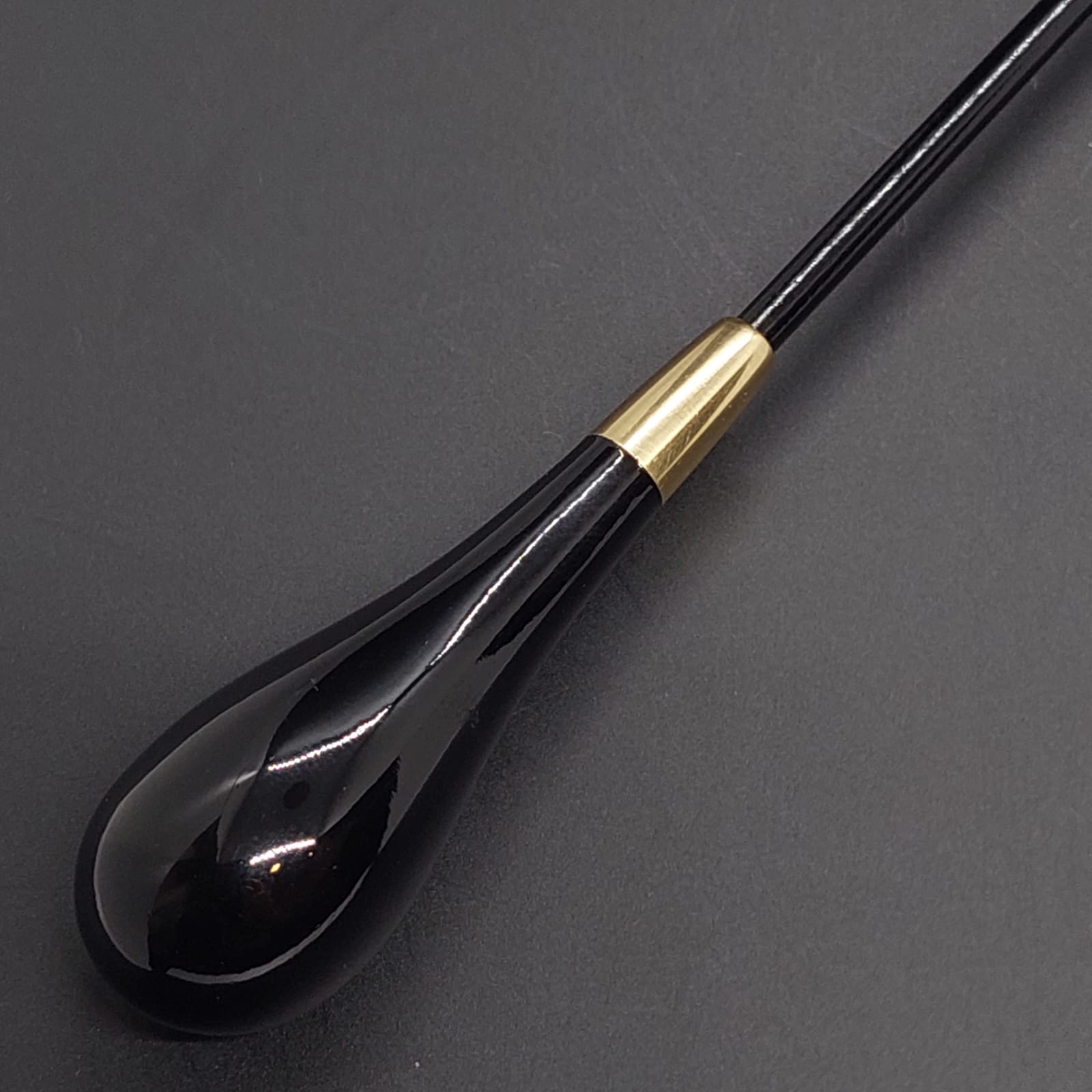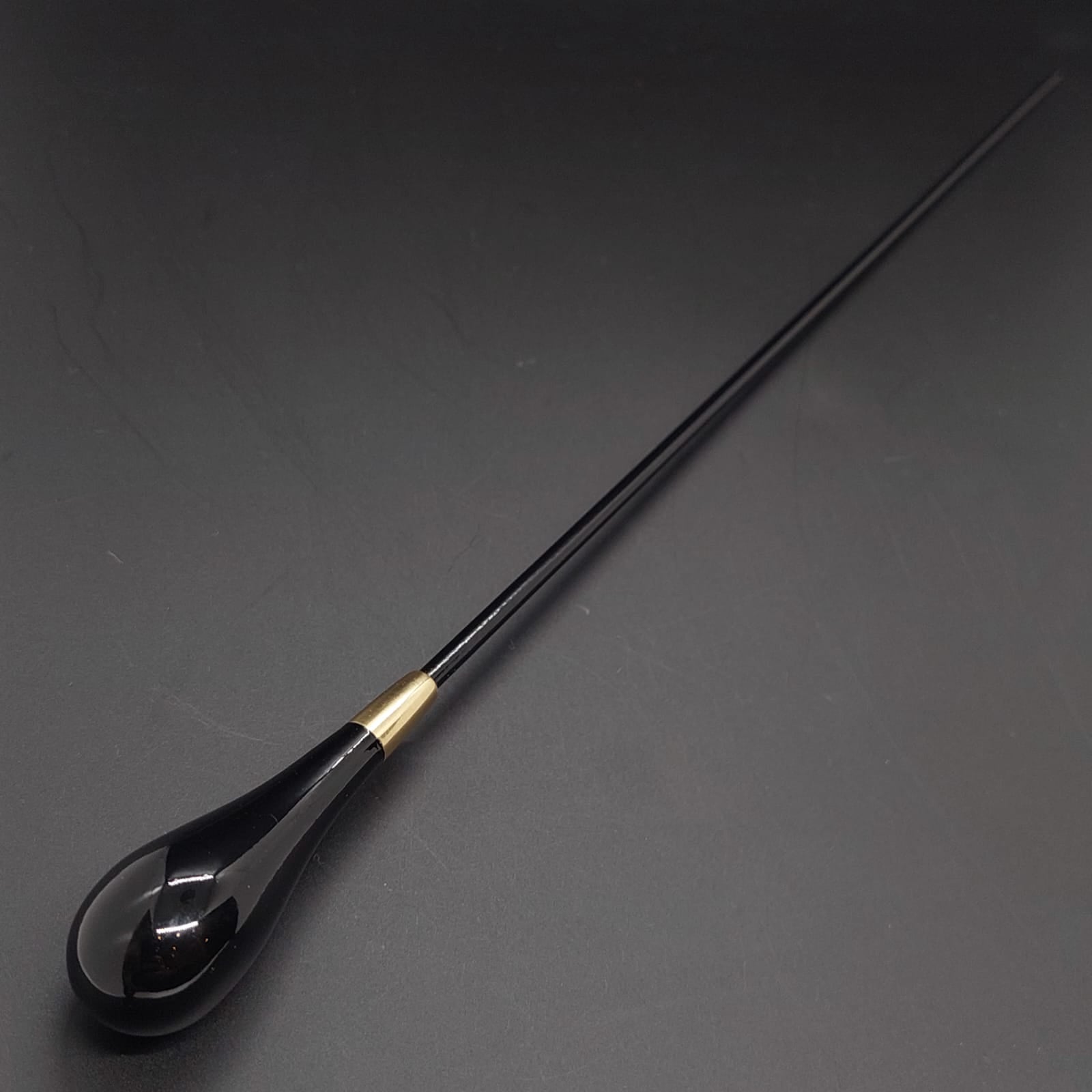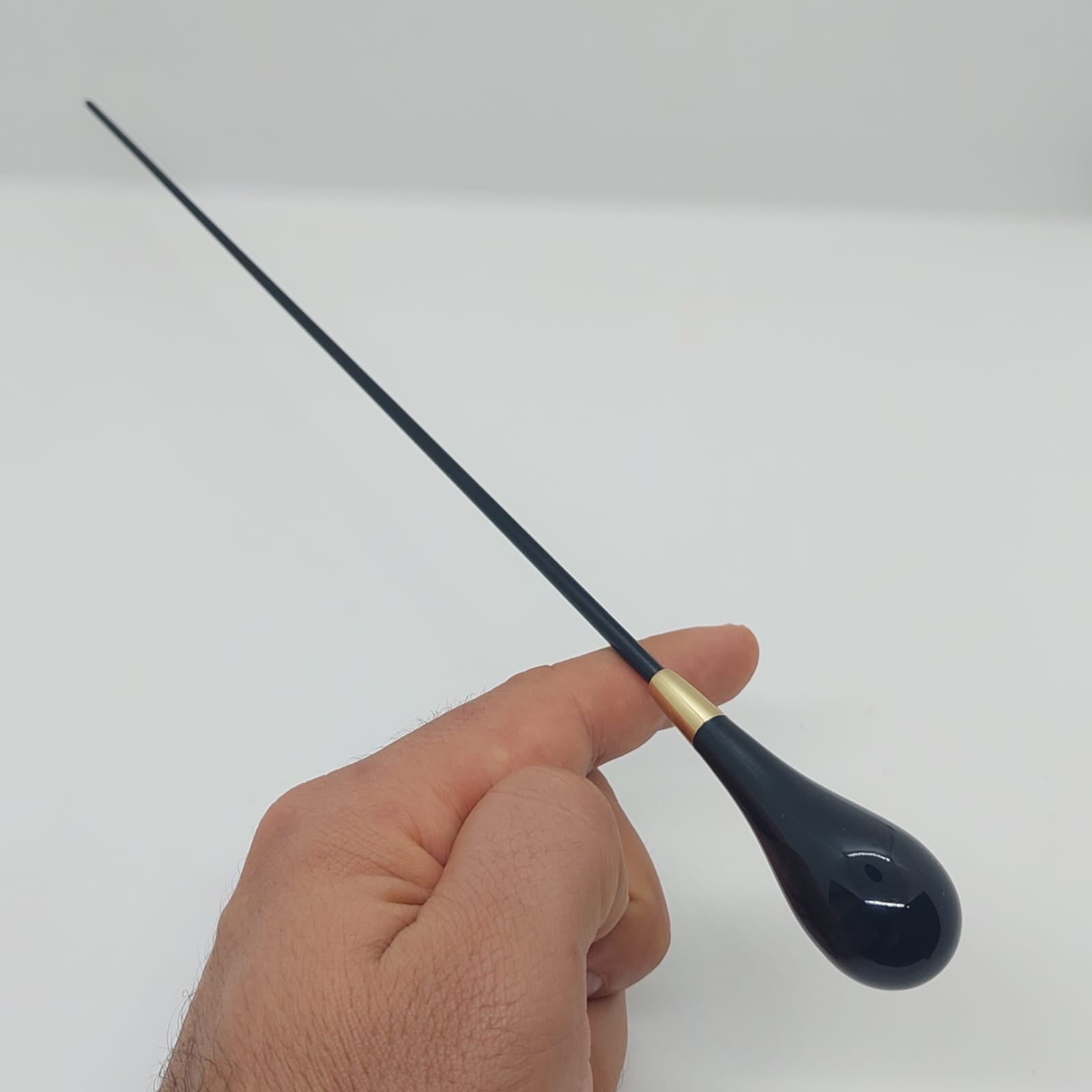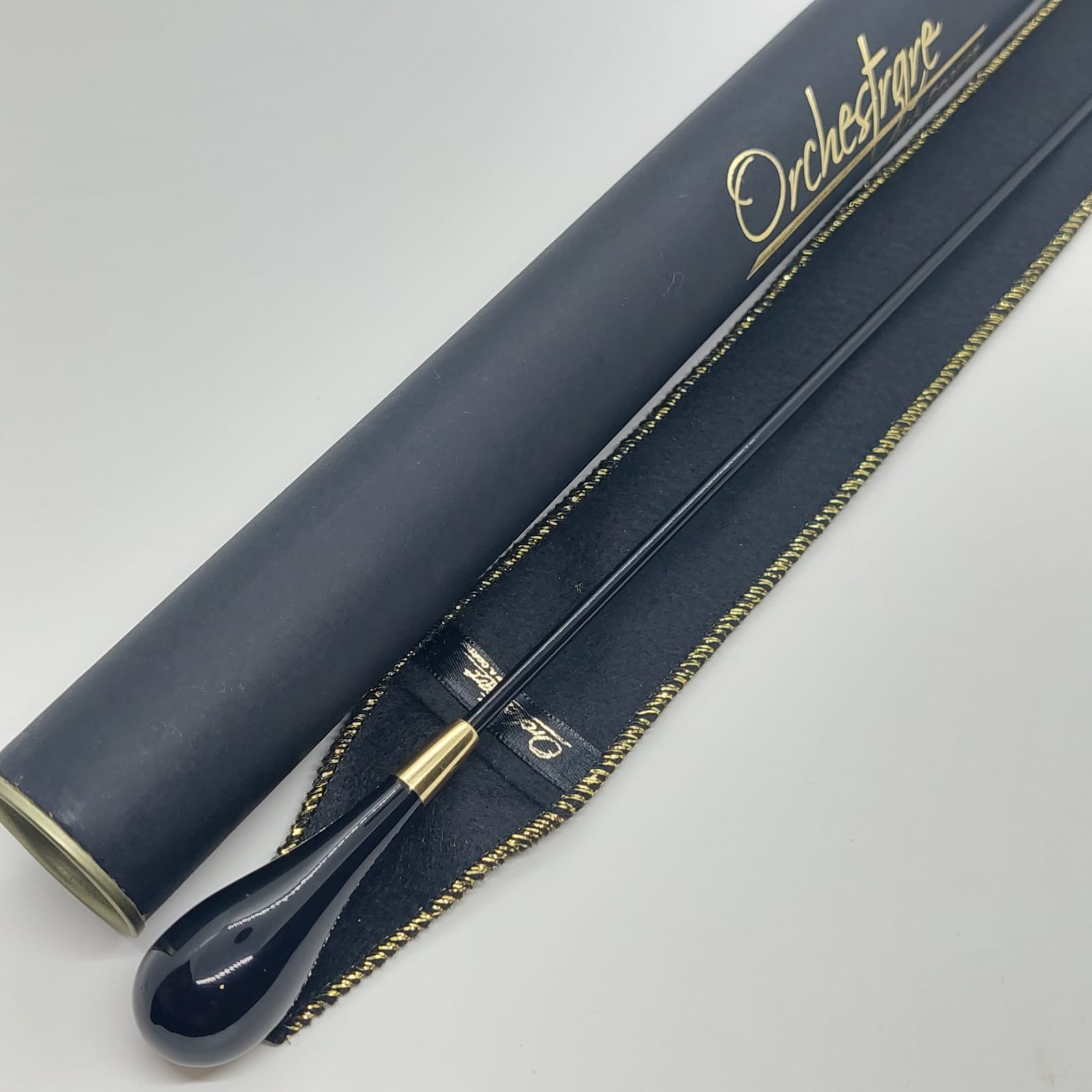 Batuta de maestro com empunhadura modelo Clássico, finamente esculpida para um encaixe harmonioso dos dedos, oferecendo conforto e elegância em cada movimento.