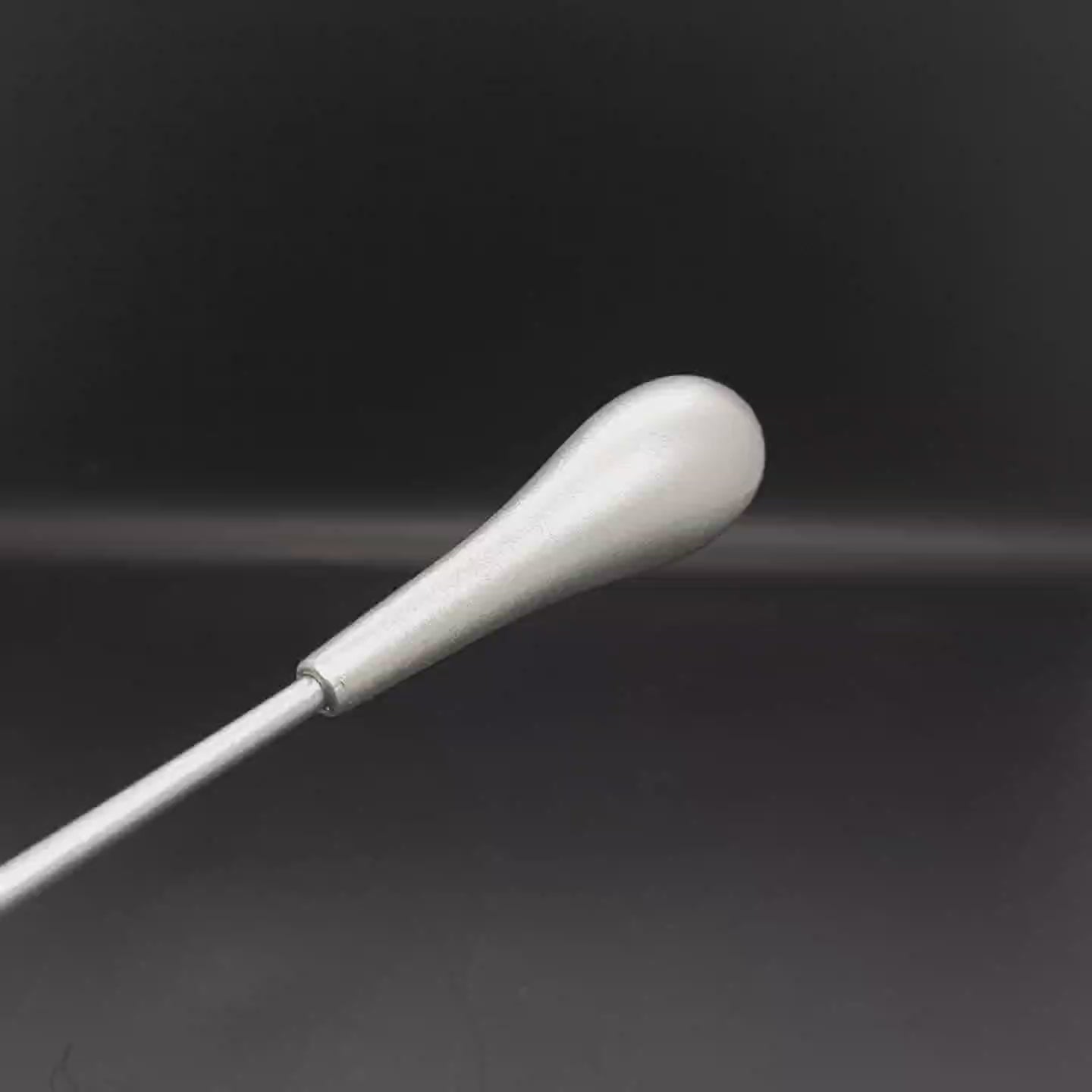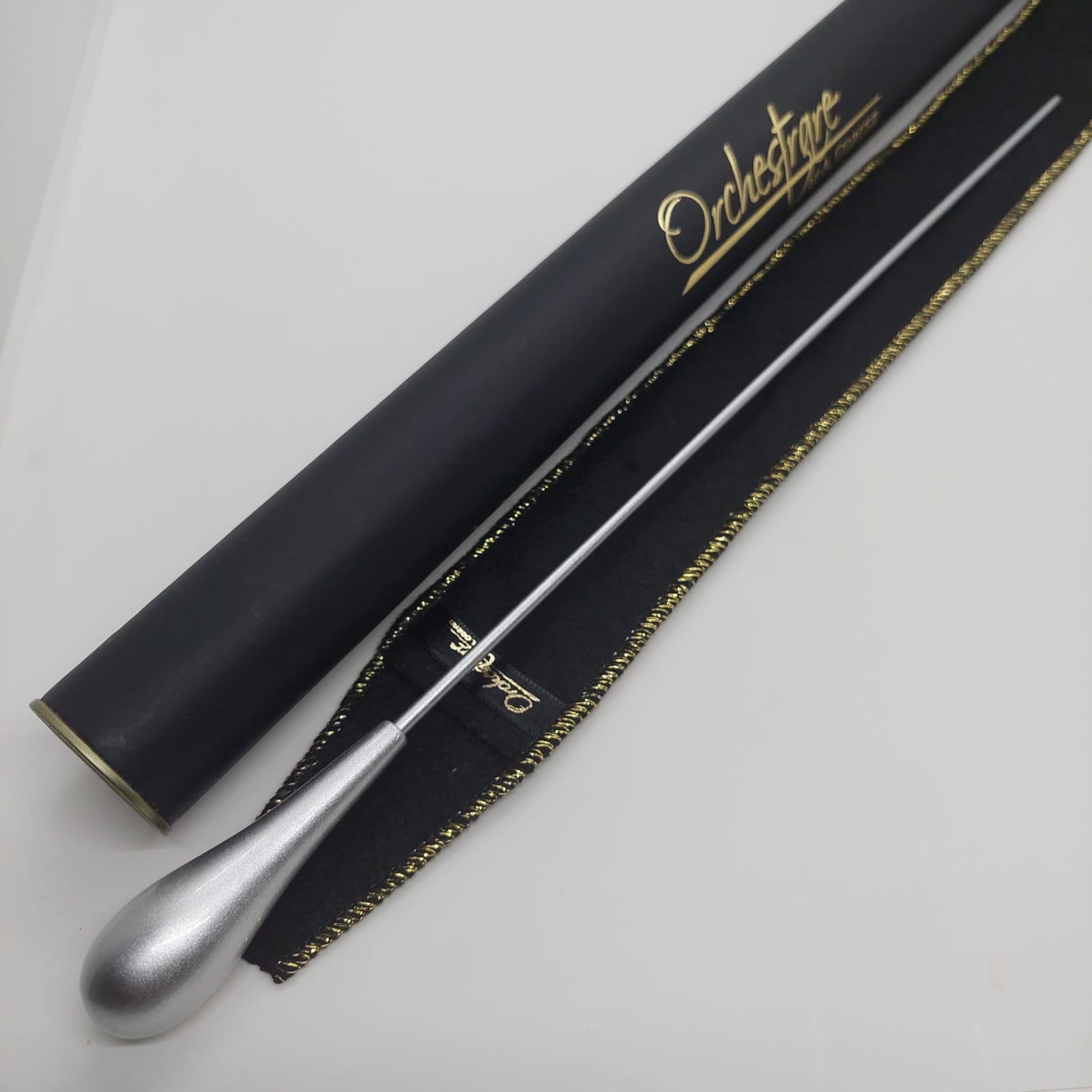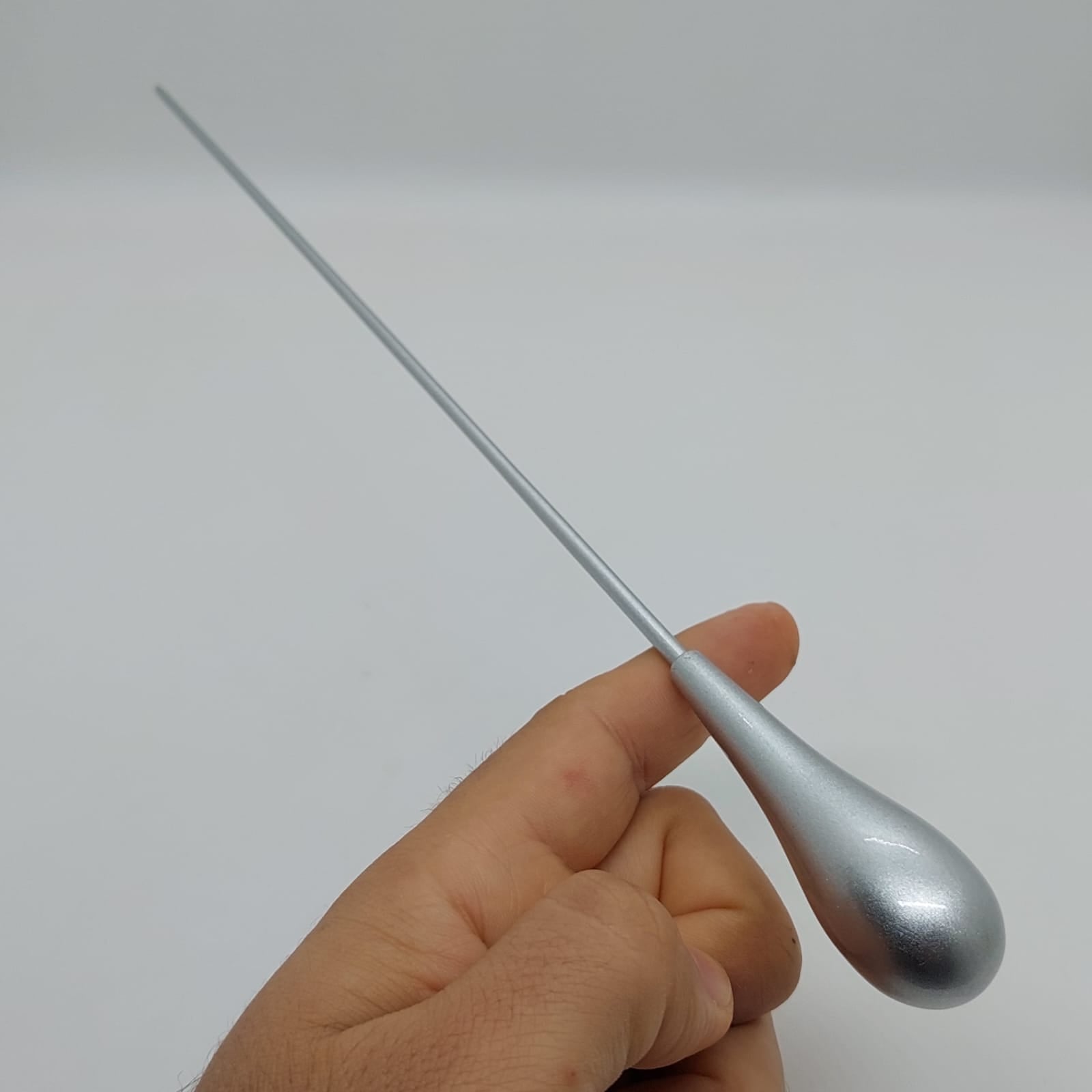 Batuta de maestro com empunhadura modelo Clássico, finamente esculpida para um encaixe harmonioso dos dedos, oferecendo conforto e elegância em cada movimento.
