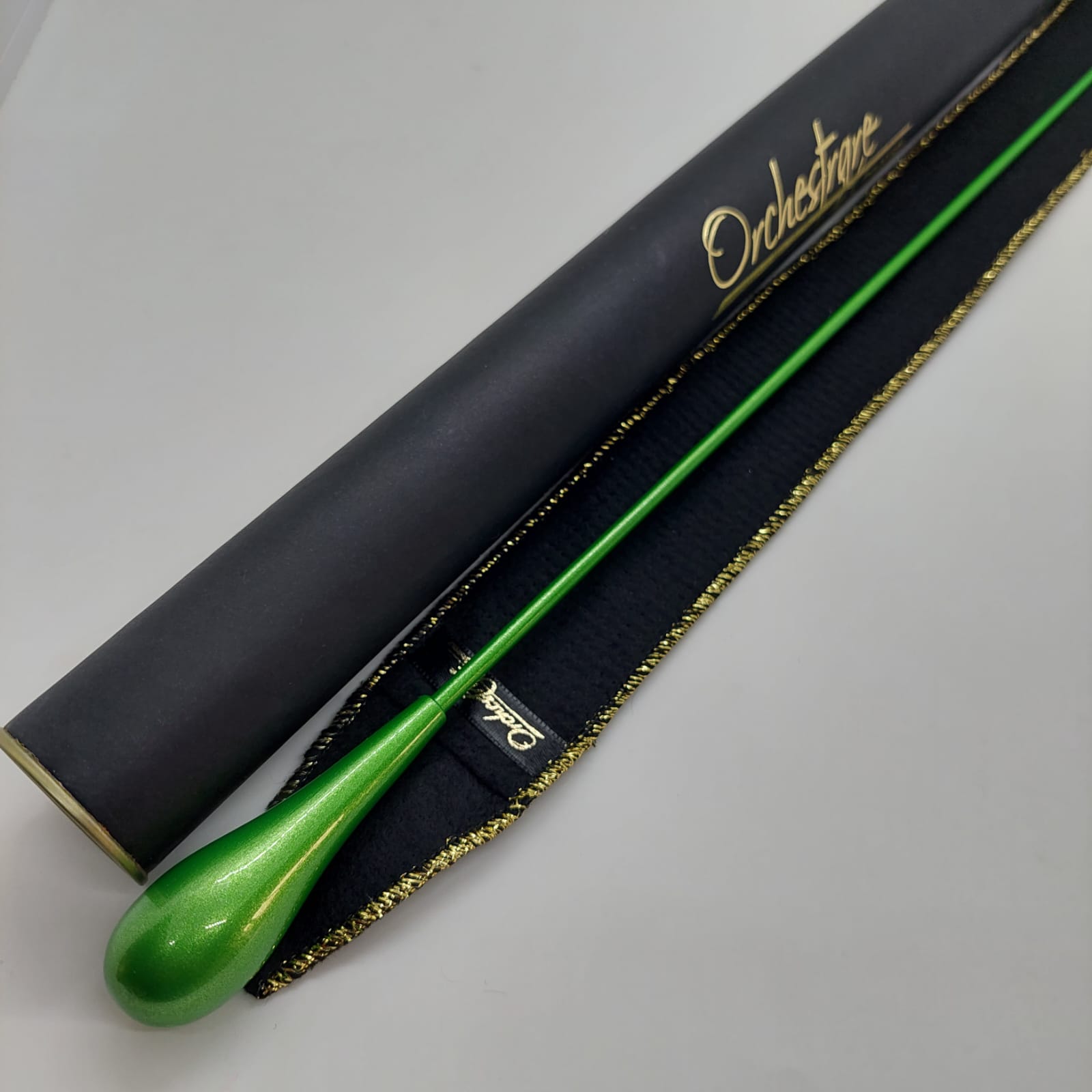 Batuta de maestro com empunhadura modelo Clássico, finamente esculpida para um encaixe harmonioso dos dedos, oferecendo conforto e elegância em cada movimento.
