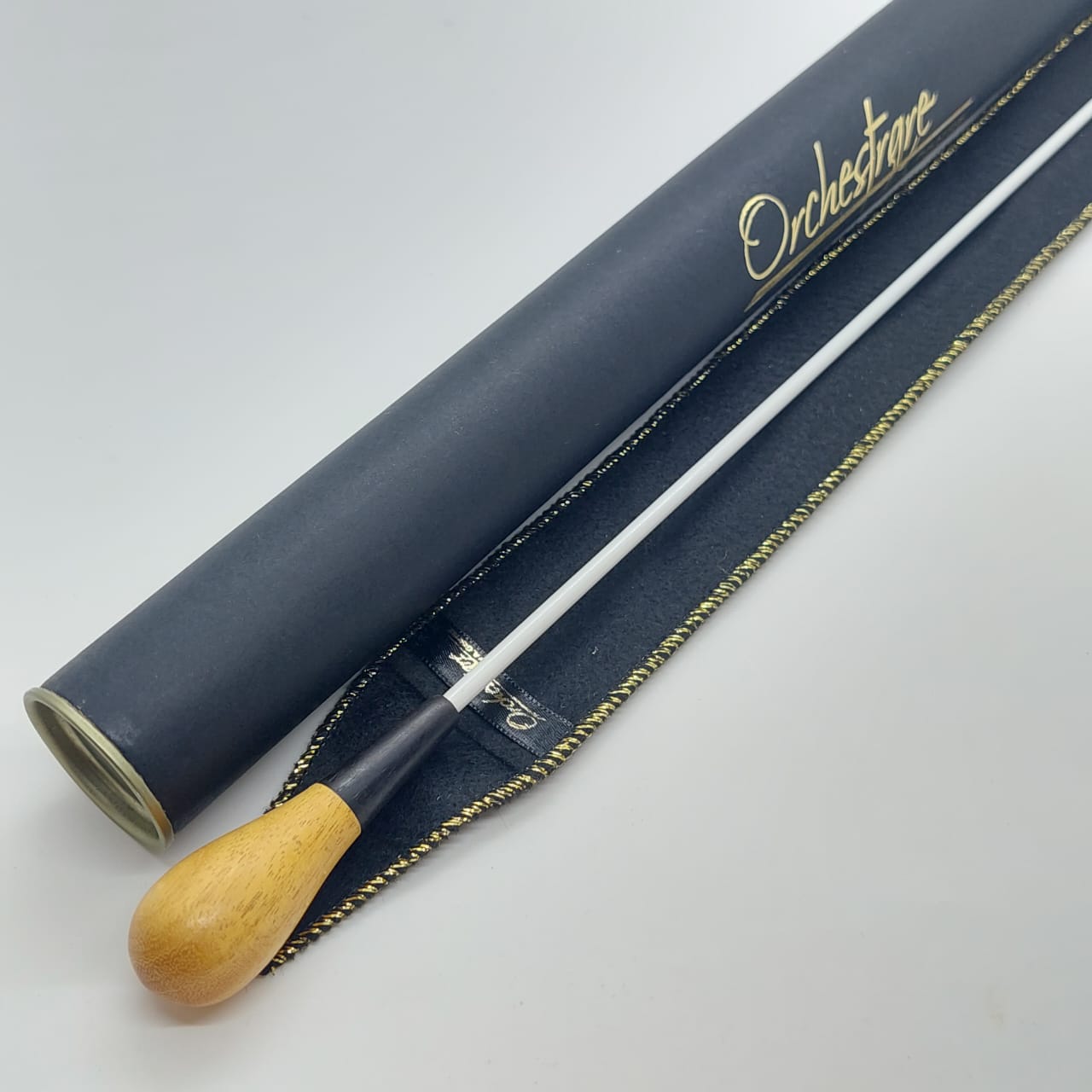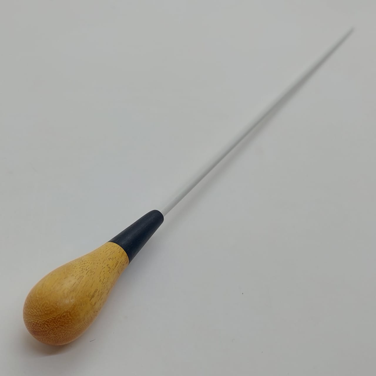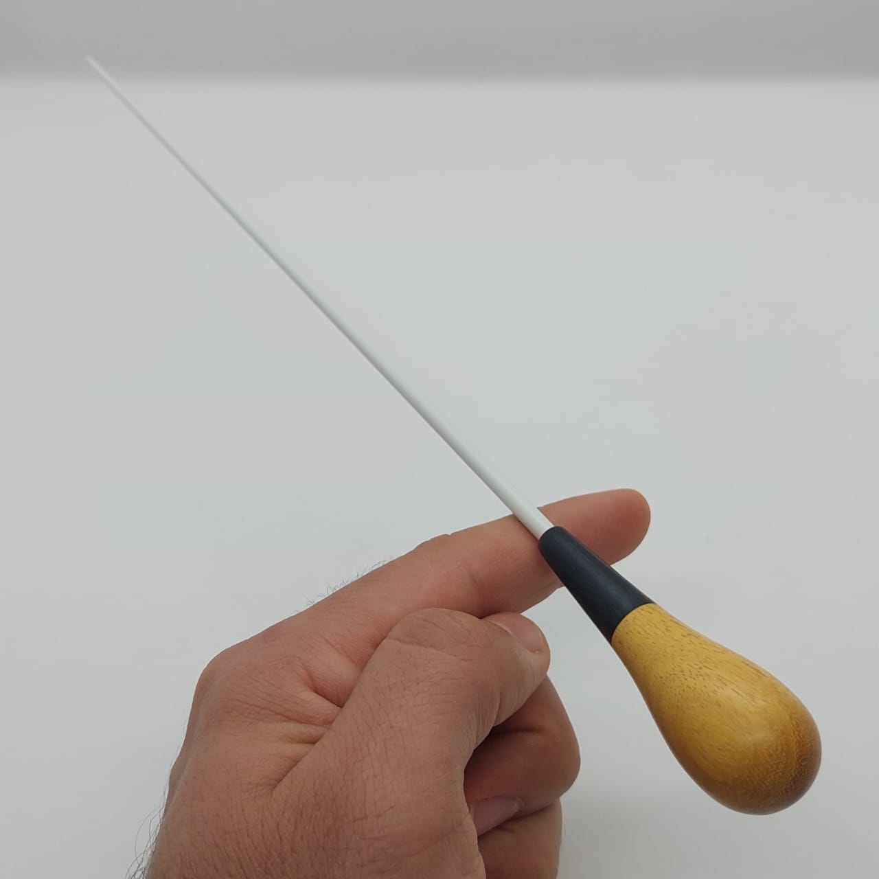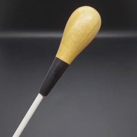Batuta de maestro com empunhadura modelo Clássico, finamente esculpida para um encaixe harmonioso dos dedos, oferecendo conforto e elegância em cada movimento.
