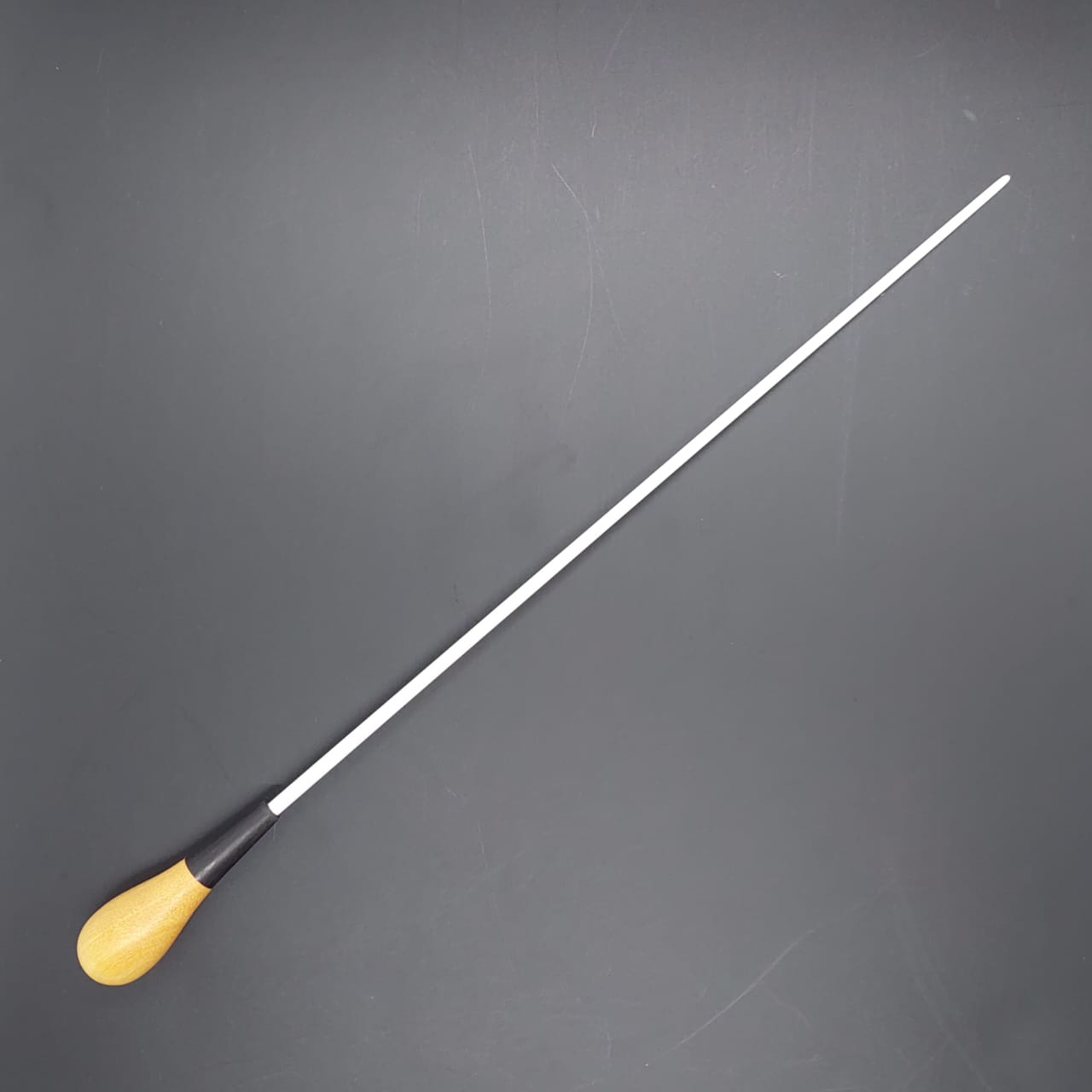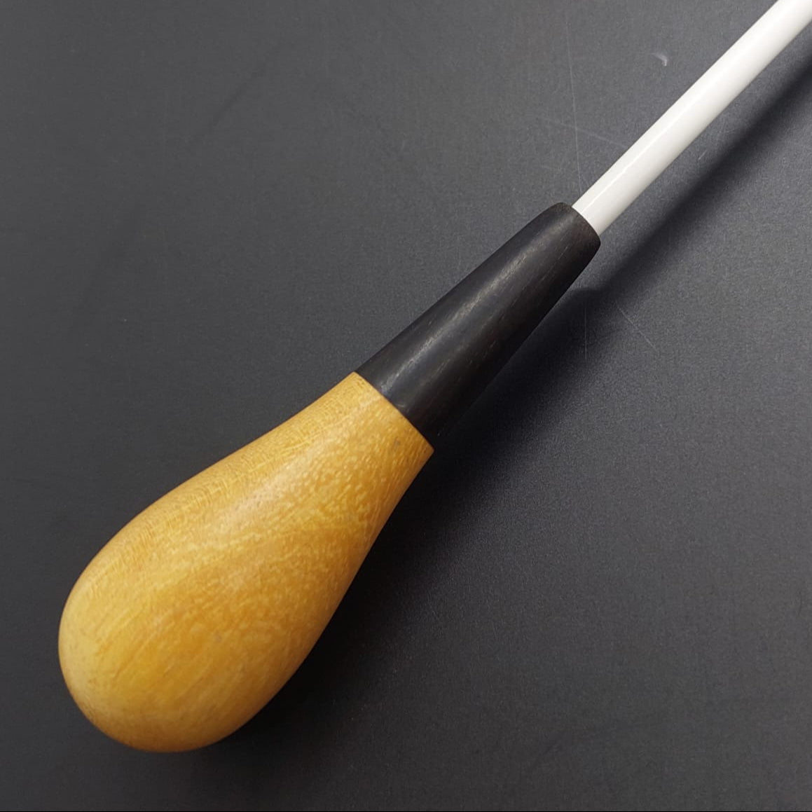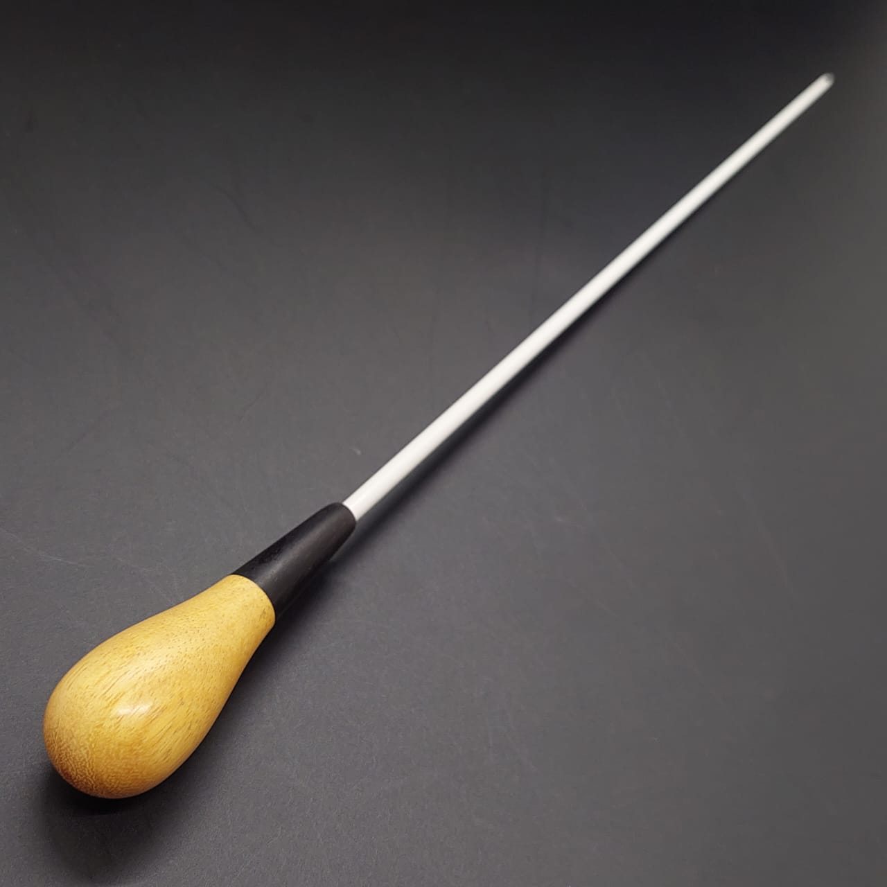 Batuta de maestro com empunhadura modelo Clássico, finamente esculpida para um encaixe harmonioso dos dedos, oferecendo conforto e elegância em cada movimento.