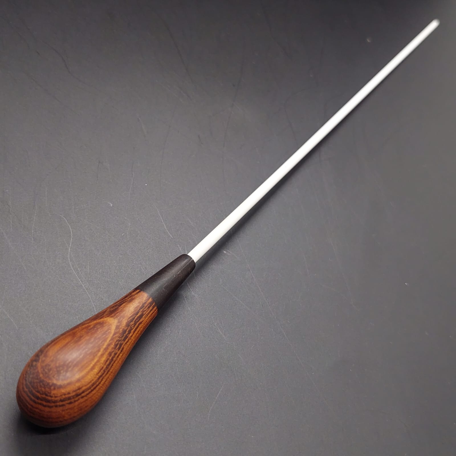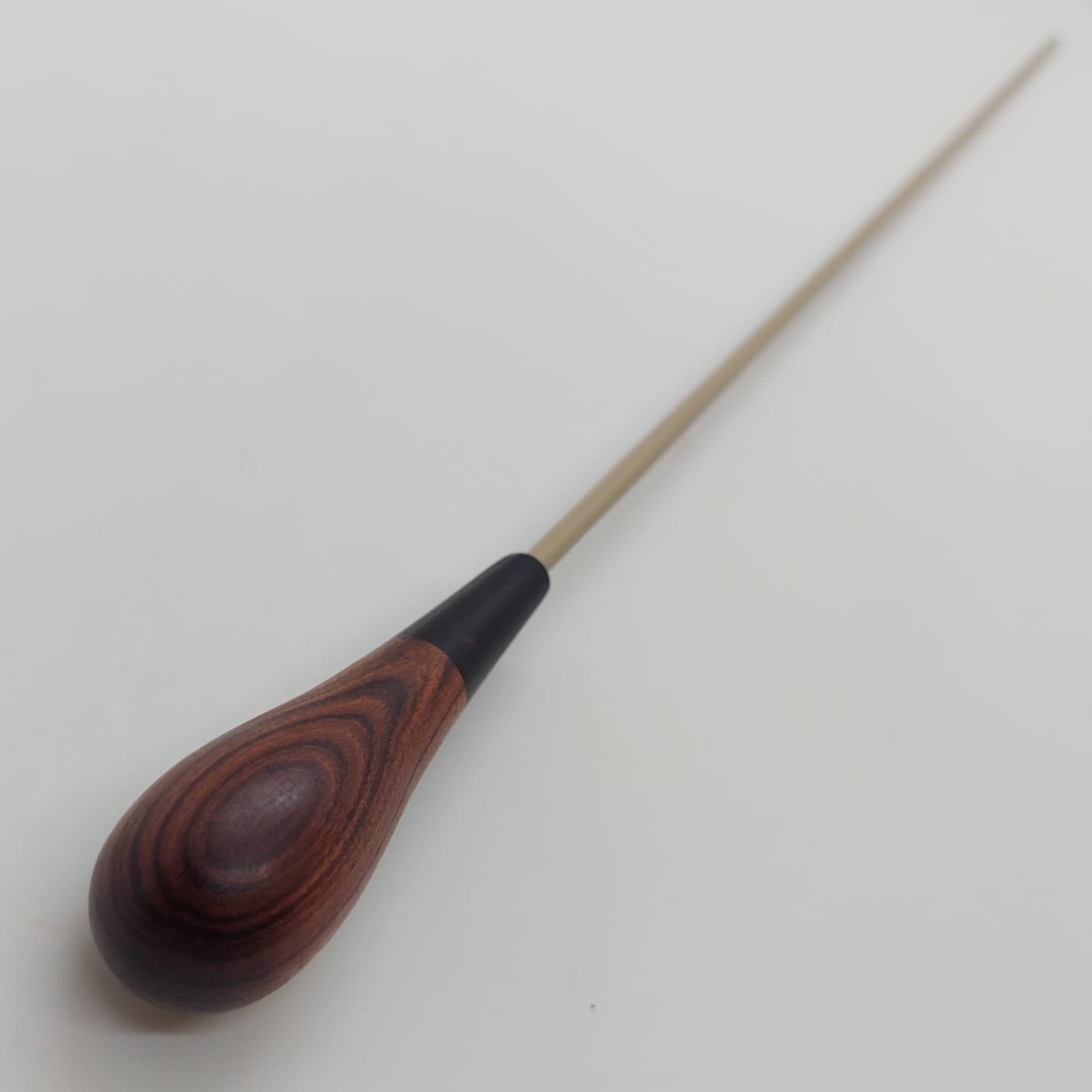 Batuta de maestro com empunhadura modelo Clássico, finamente esculpida para um encaixe harmonioso dos dedos, oferecendo conforto e elegância em cada movimento.