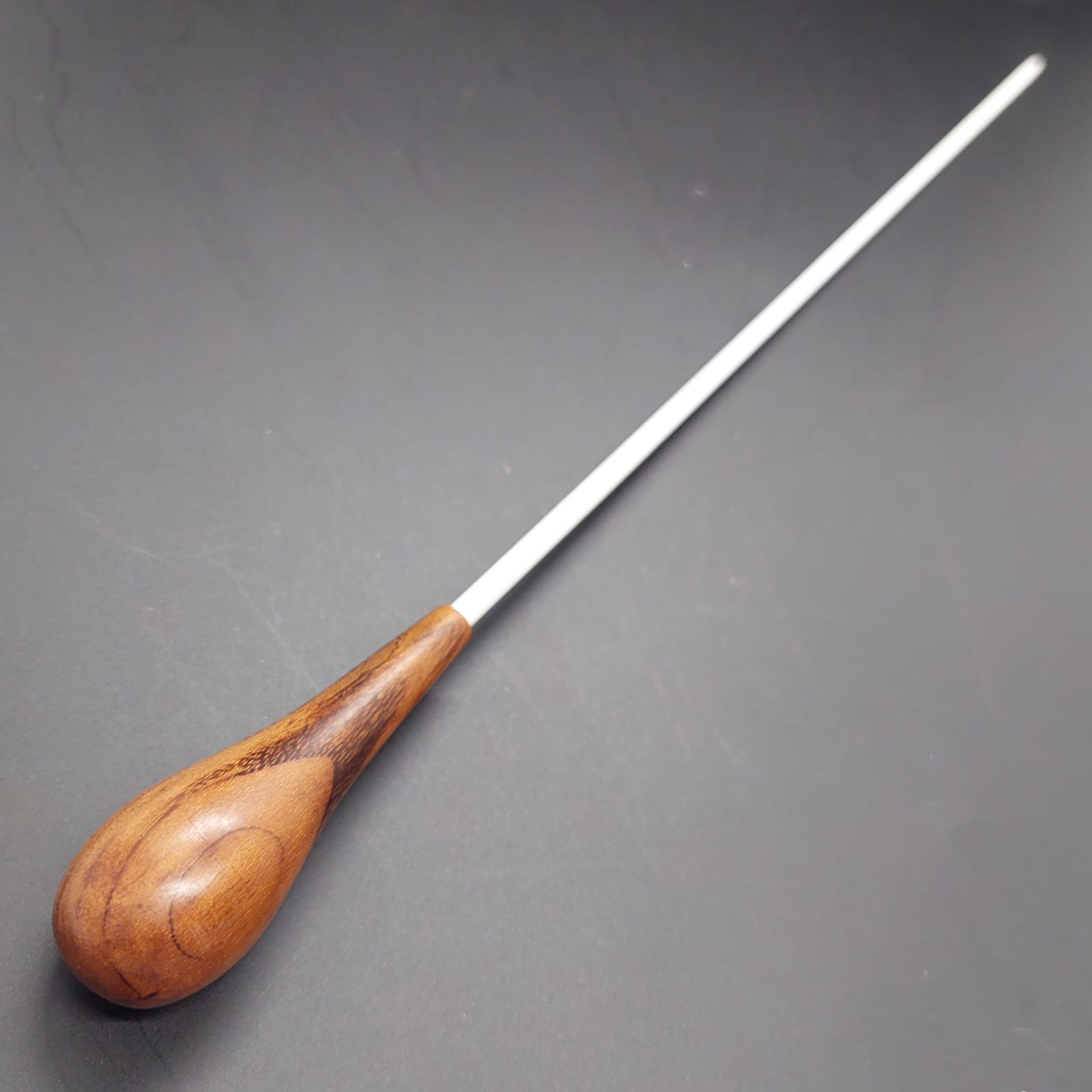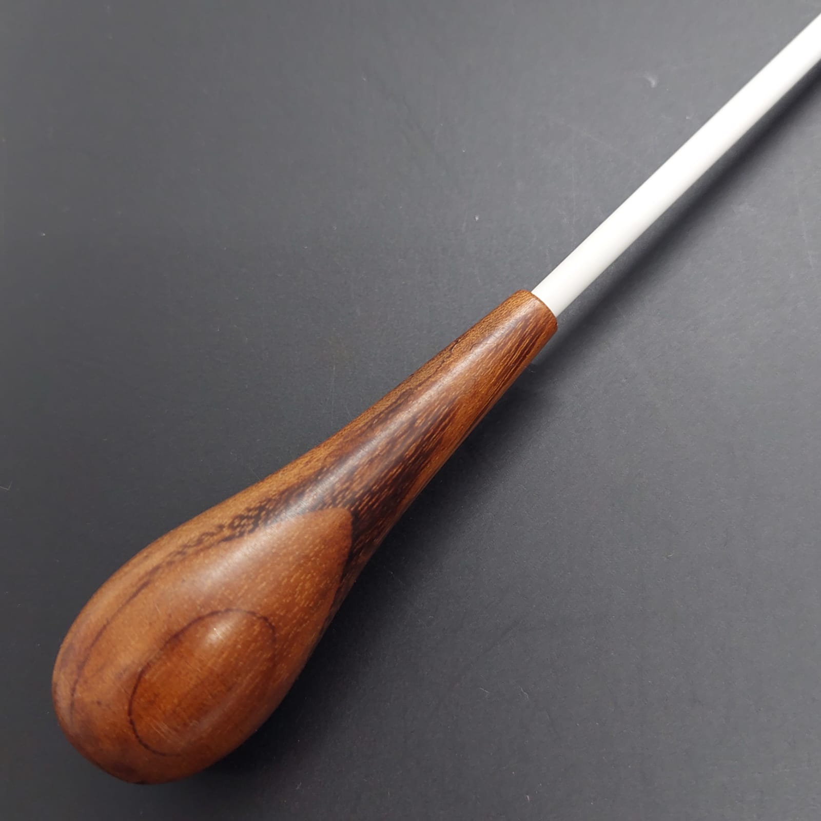 A pera da batuta é produzida em madeira de alta qualidade, resistente e cuidadosamente selecionada para garantir durabilidade e beleza. Seu acabamento realça os veios naturais da madeira, valorizando sua textura única e assegurando que a batuta se destaque com elegância e autenticidade.