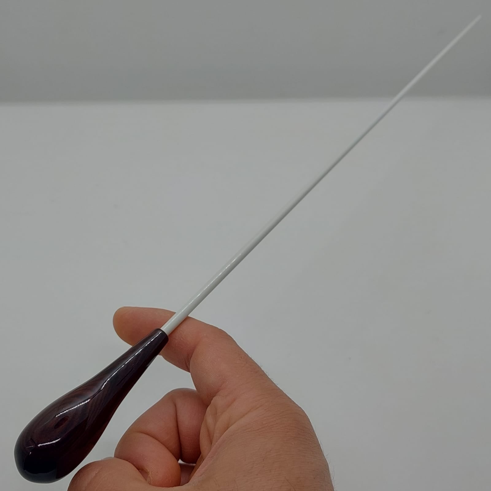 Batuta de maestro com empunhadura modelo Clássico, finamente esculpida para um encaixe harmonioso dos dedos, oferecendo conforto e elegância em cada movimento.