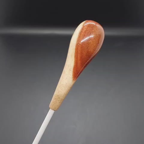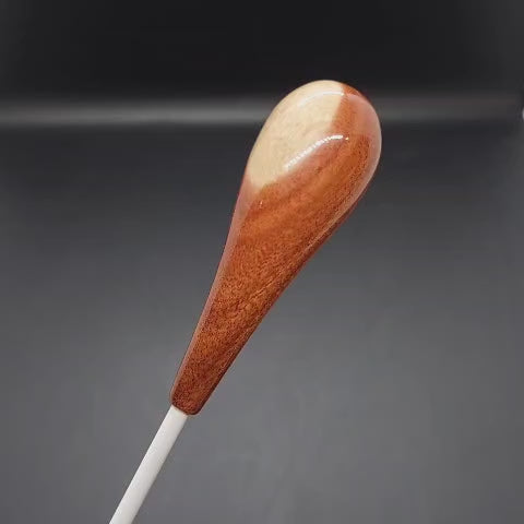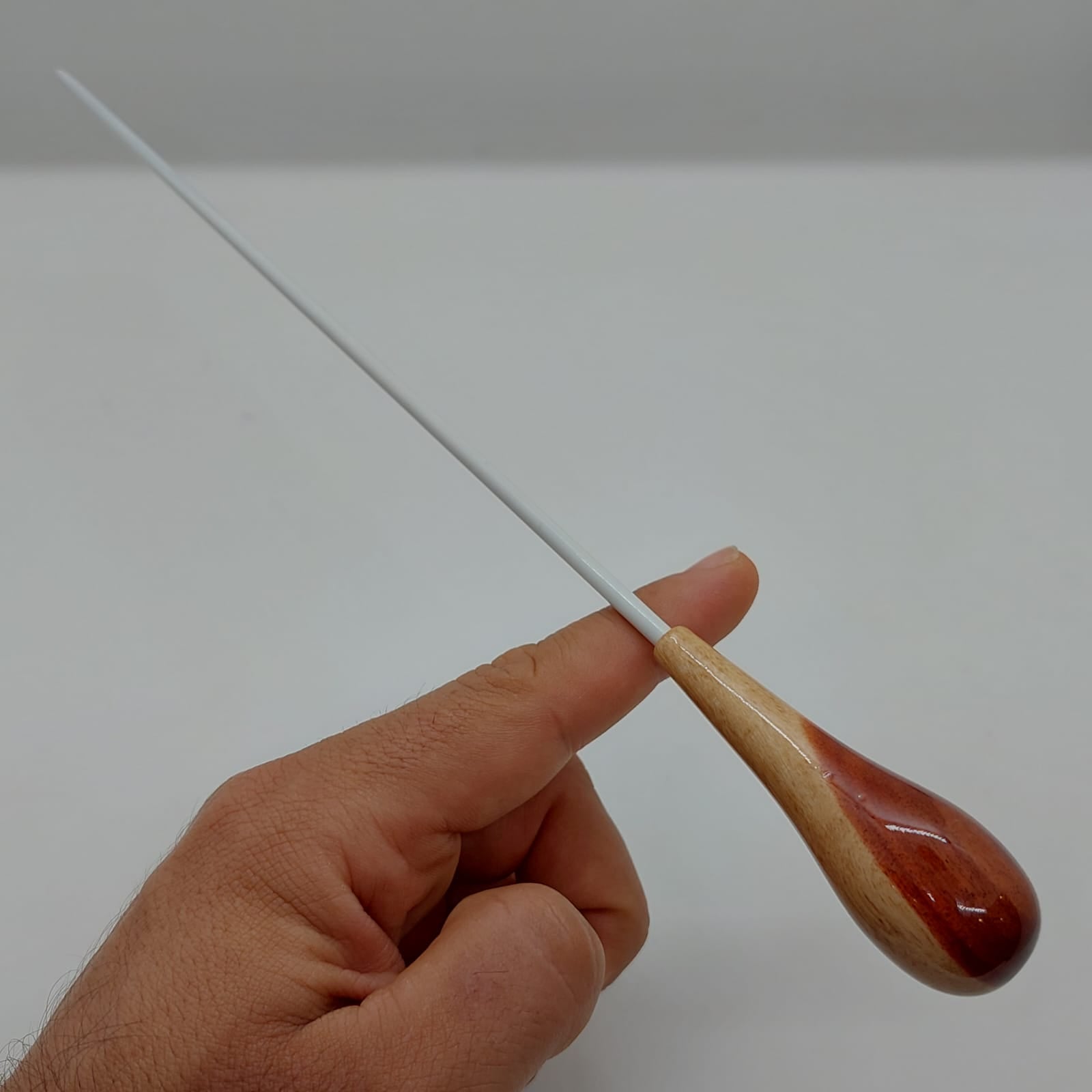 A pera da batuta é produzida em madeira de alta qualidade, resistente e cuidadosamente selecionada para garantir durabilidade e beleza. Seu acabamento realça os veios naturais da madeira, valorizando sua textura única e assegurando que a batuta se destaque com elegância e autenticidade.