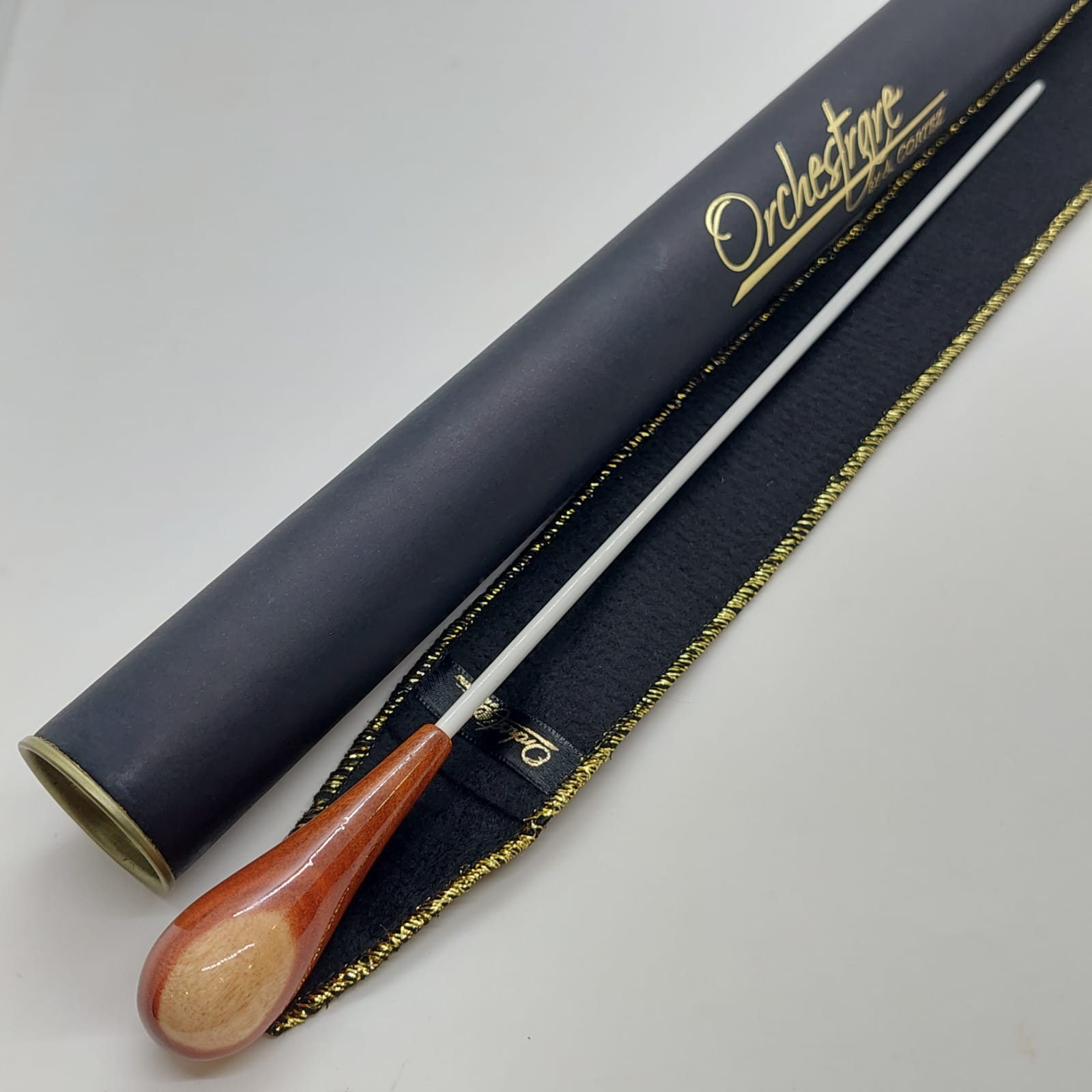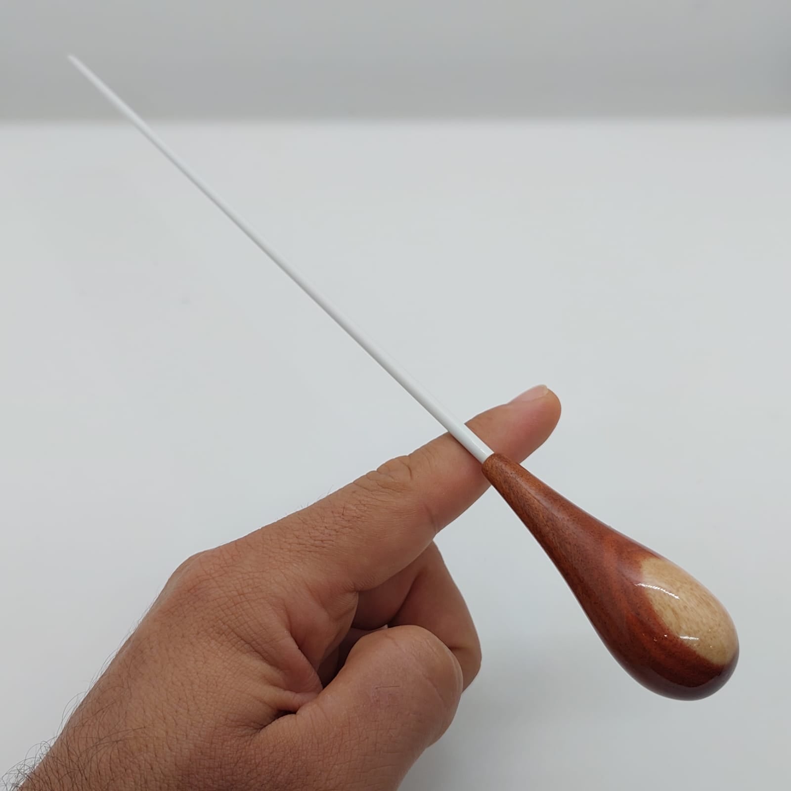 Batuta de maestro com empunhadura modelo Clássico, finamente esculpida para um encaixe harmonioso dos dedos, oferecendo conforto e elegância em cada movimento.