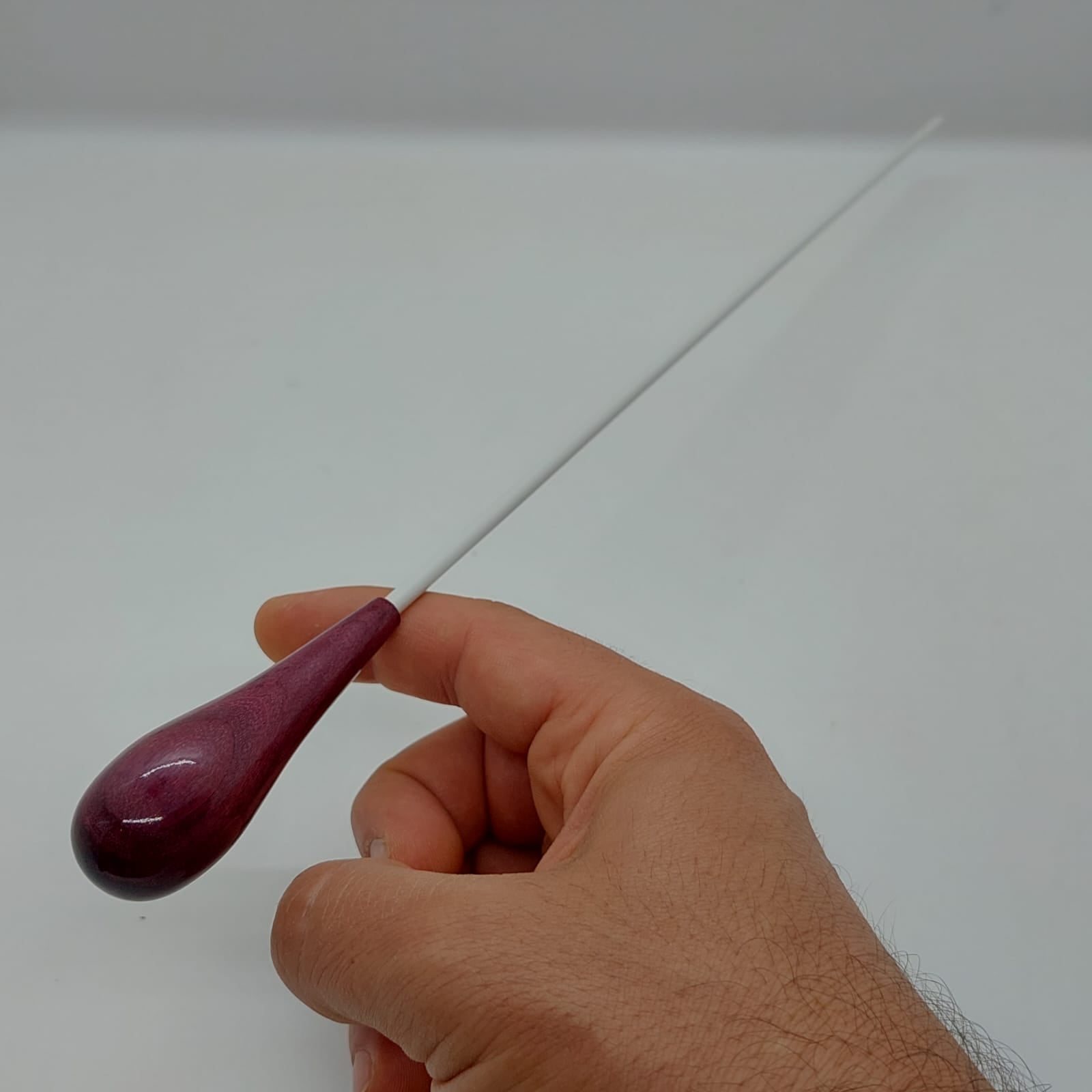 Batuta de maestro com empunhadura modelo Clássico, finamente esculpida para um encaixe harmonioso dos dedos, oferecendo conforto e elegância em cada movimento.