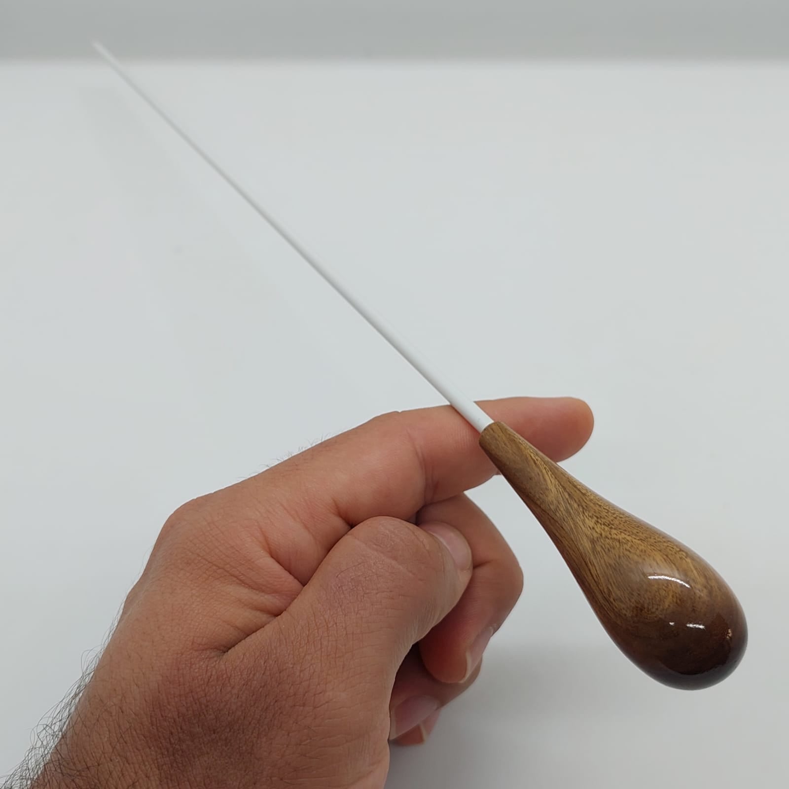 Batuta de maestro com empunhadura modelo Clássico, finamente esculpida para um encaixe harmonioso dos dedos, oferecendo conforto e elegância em cada movimento.