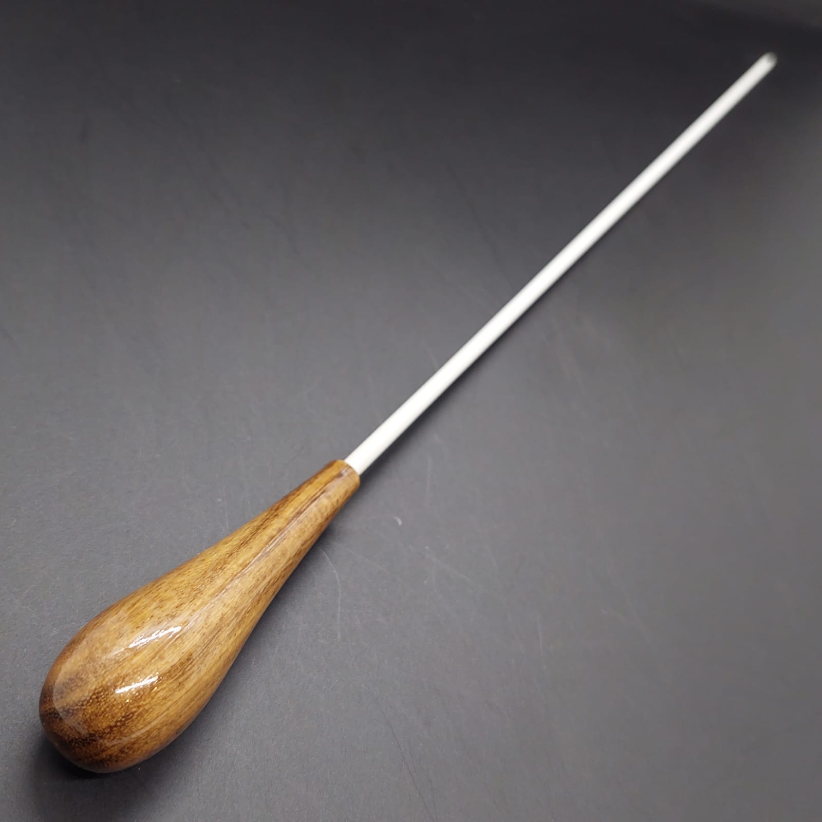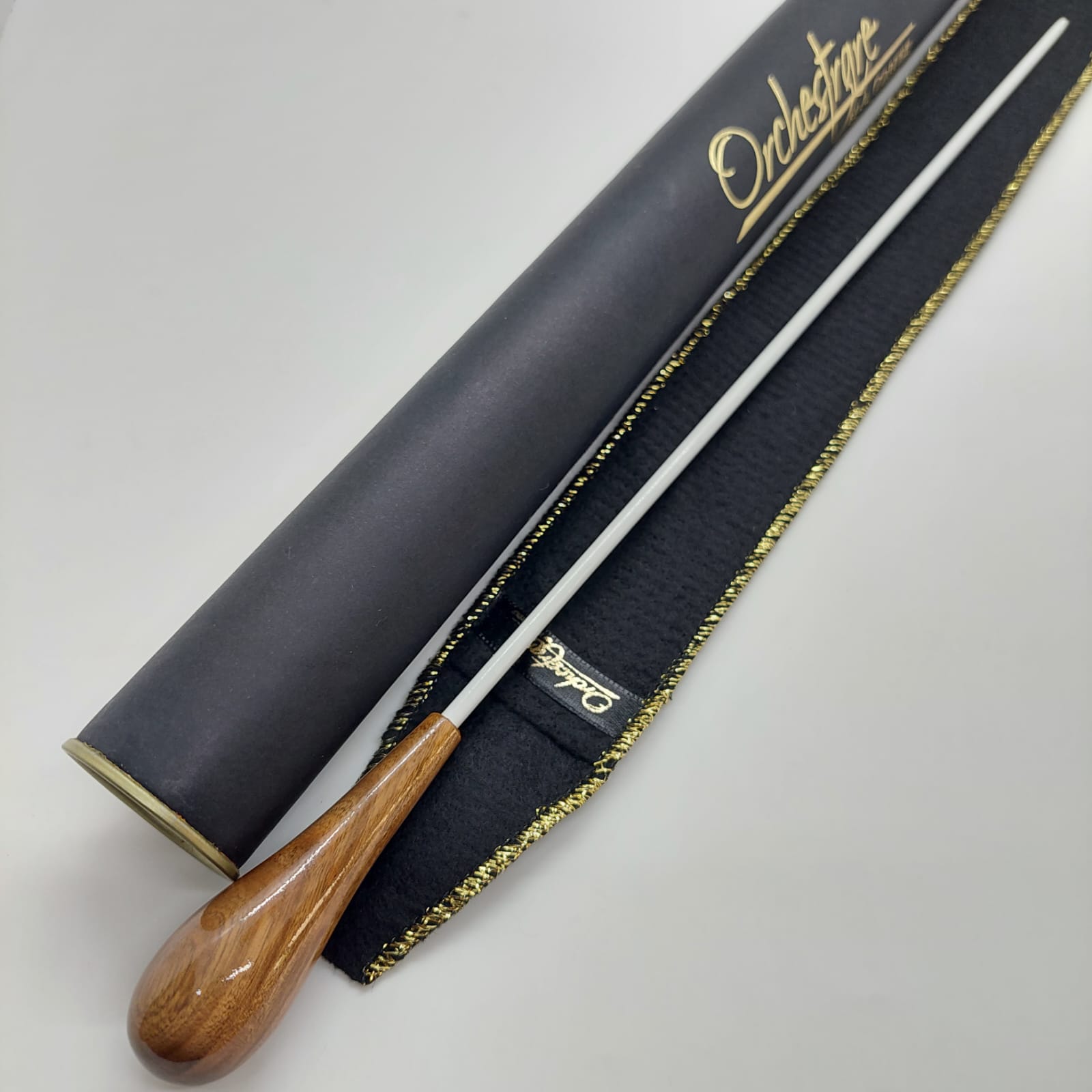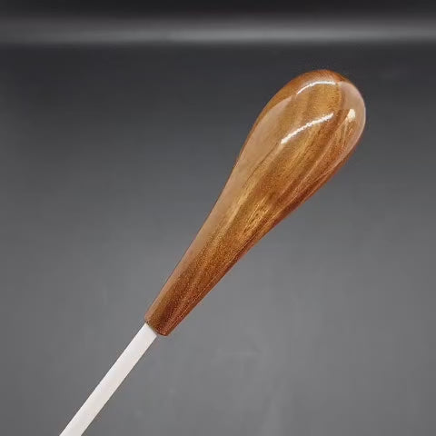 A pera da batuta é produzida em madeira de alta qualidade, resistente e cuidadosamente selecionada para garantir durabilidade e beleza. Seu acabamento realça os veios naturais da madeira, valorizando sua textura única e assegurando que a batuta se destaque com elegância e autenticidade.