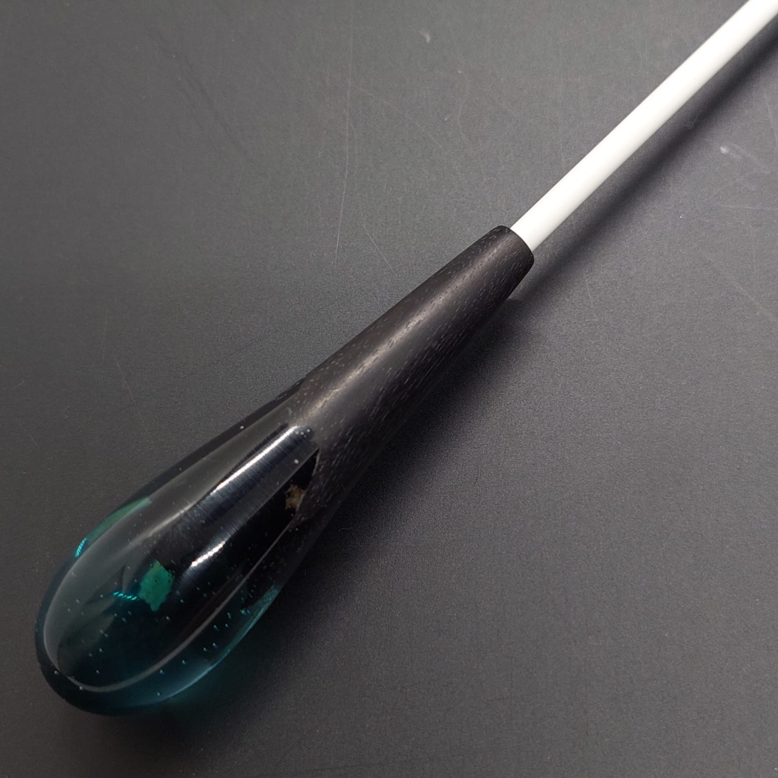 A pera da batuta nasce da fusão entre a nobreza da madeira de ébano e o brilho translúcido da resina, criando uma obra de arte única em cada peça. Cada batuta apresenta nuances e detalhes singulares, garantindo resistência, qualidade e um toque sofisticado e elegante.