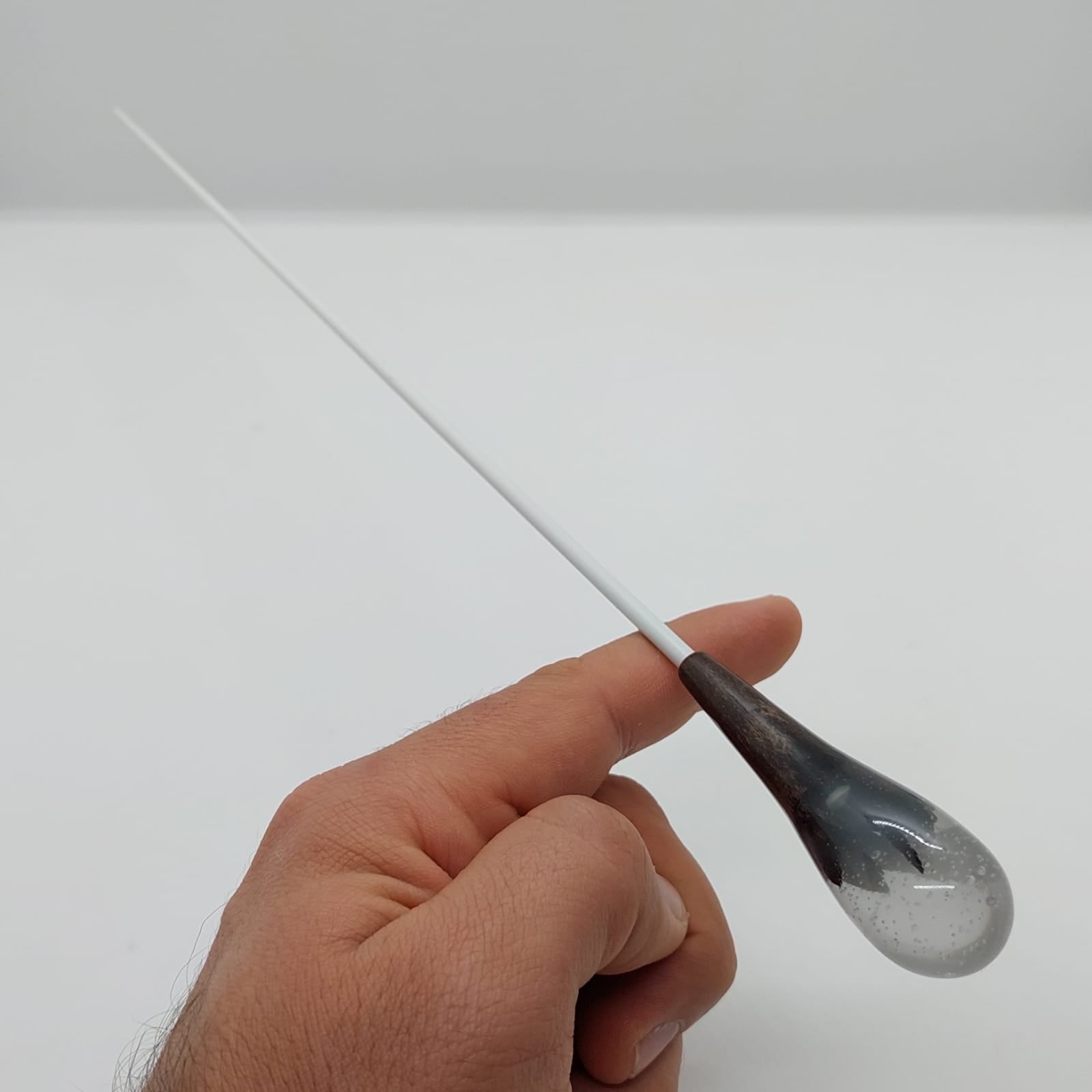 Batuta de maestro com empunhadura modelo Clássico, finamente esculpida para um encaixe harmonioso dos dedos, oferecendo conforto e elegância em cada movimento.