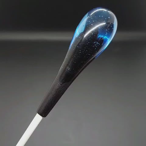 A pera da batuta nasce da fusão entre a nobreza da madeira de ébano e o brilho translúcido da resina, criando uma obra de arte única em cada peça. Cada batuta apresenta nuances e detalhes singulares, garantindo resistência, qualidade e um toque sofisticado e elegante.