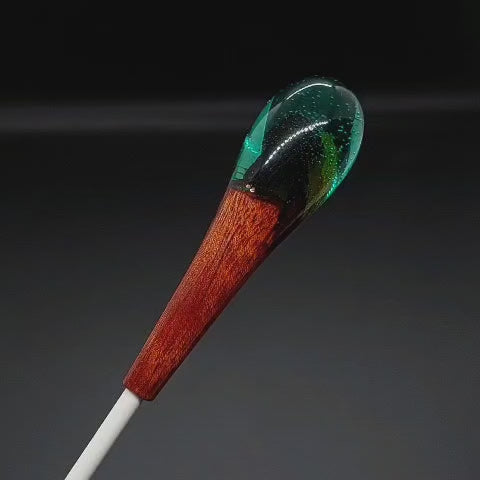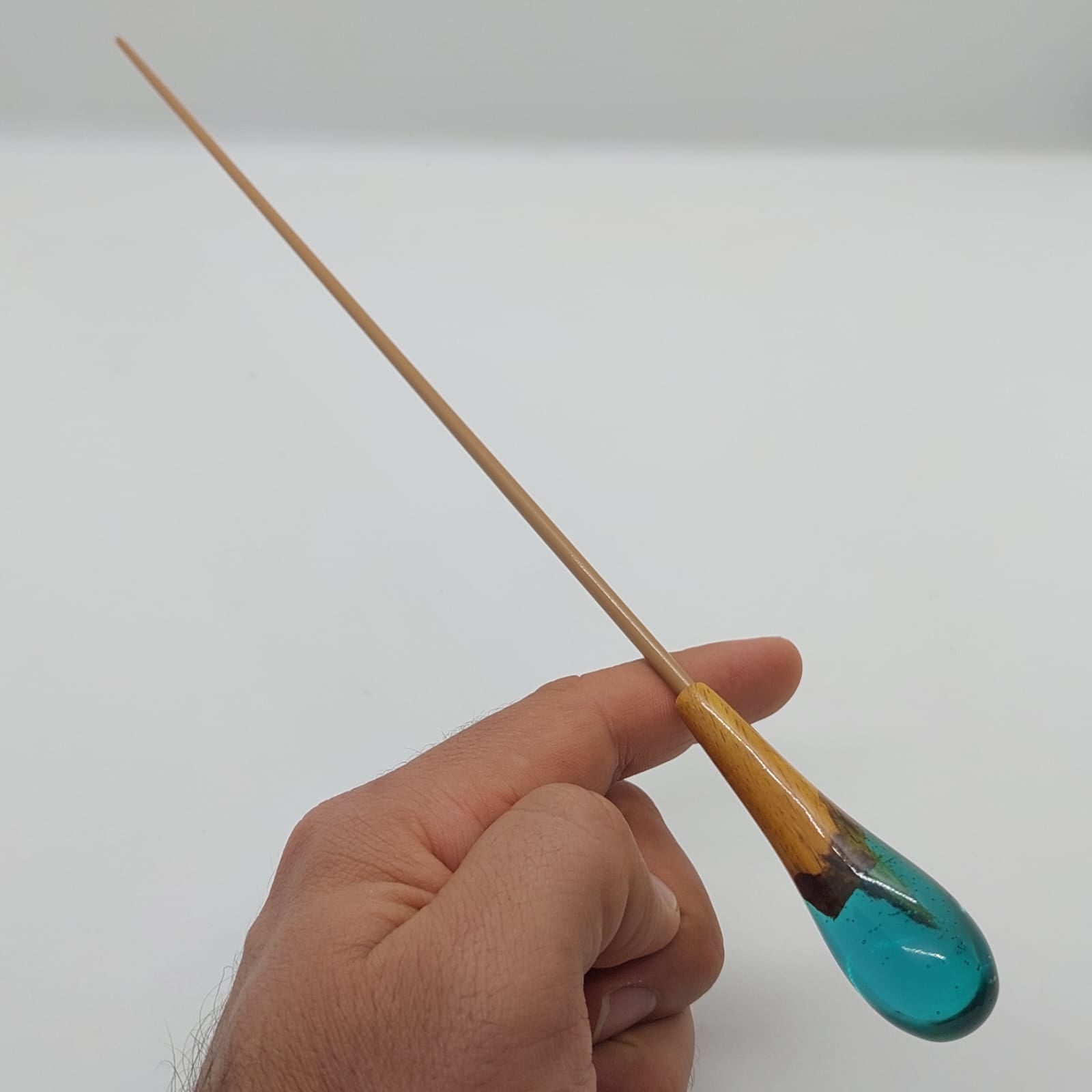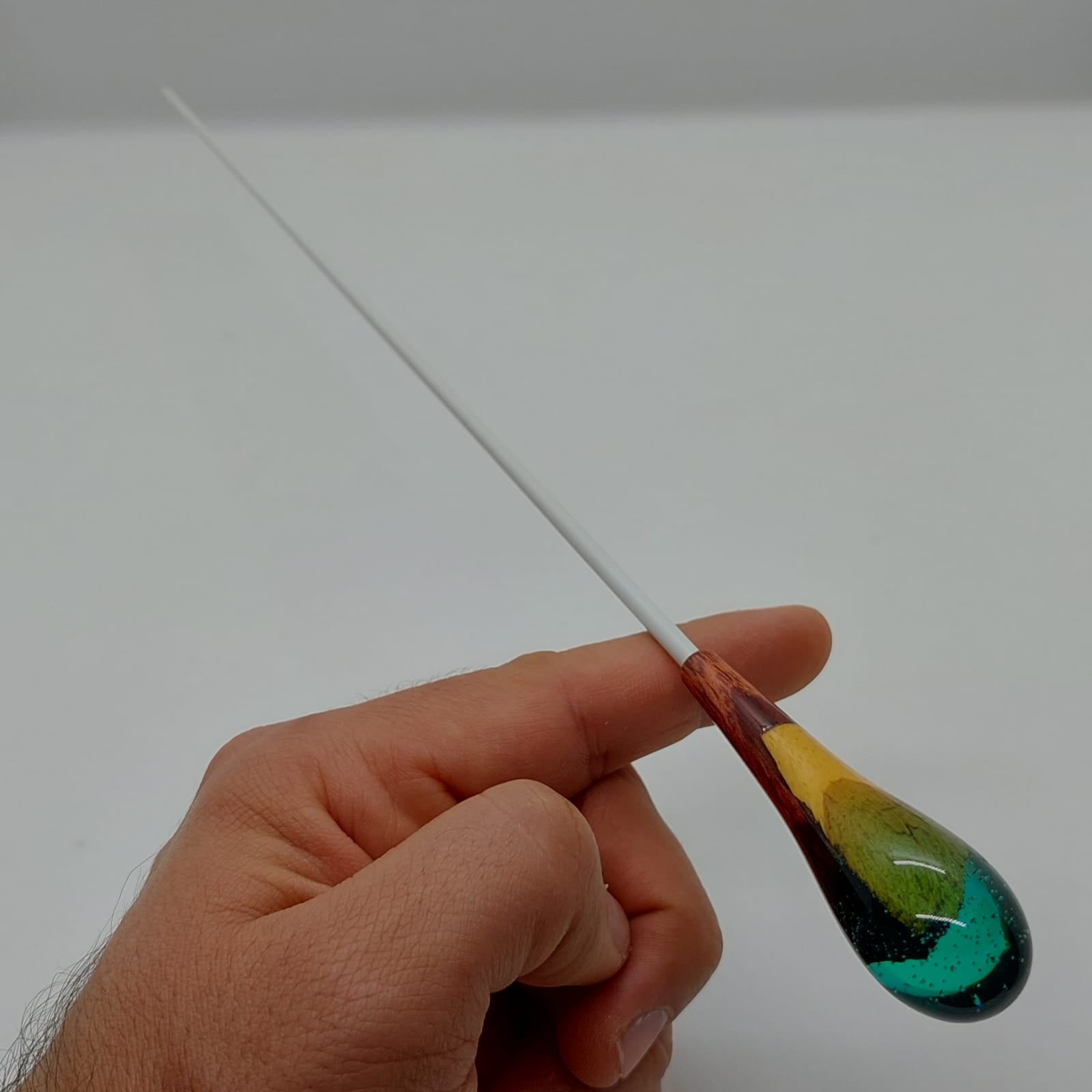 A pera da batuta nasce da fusão entre a nobreza da madeira e o brilho translúcido da resina, criando uma obra de arte única em cada peça. Cada batuta apresenta nuances e detalhes singulares, garantindo resistência, qualidade e um toque sofisticado e elegante.