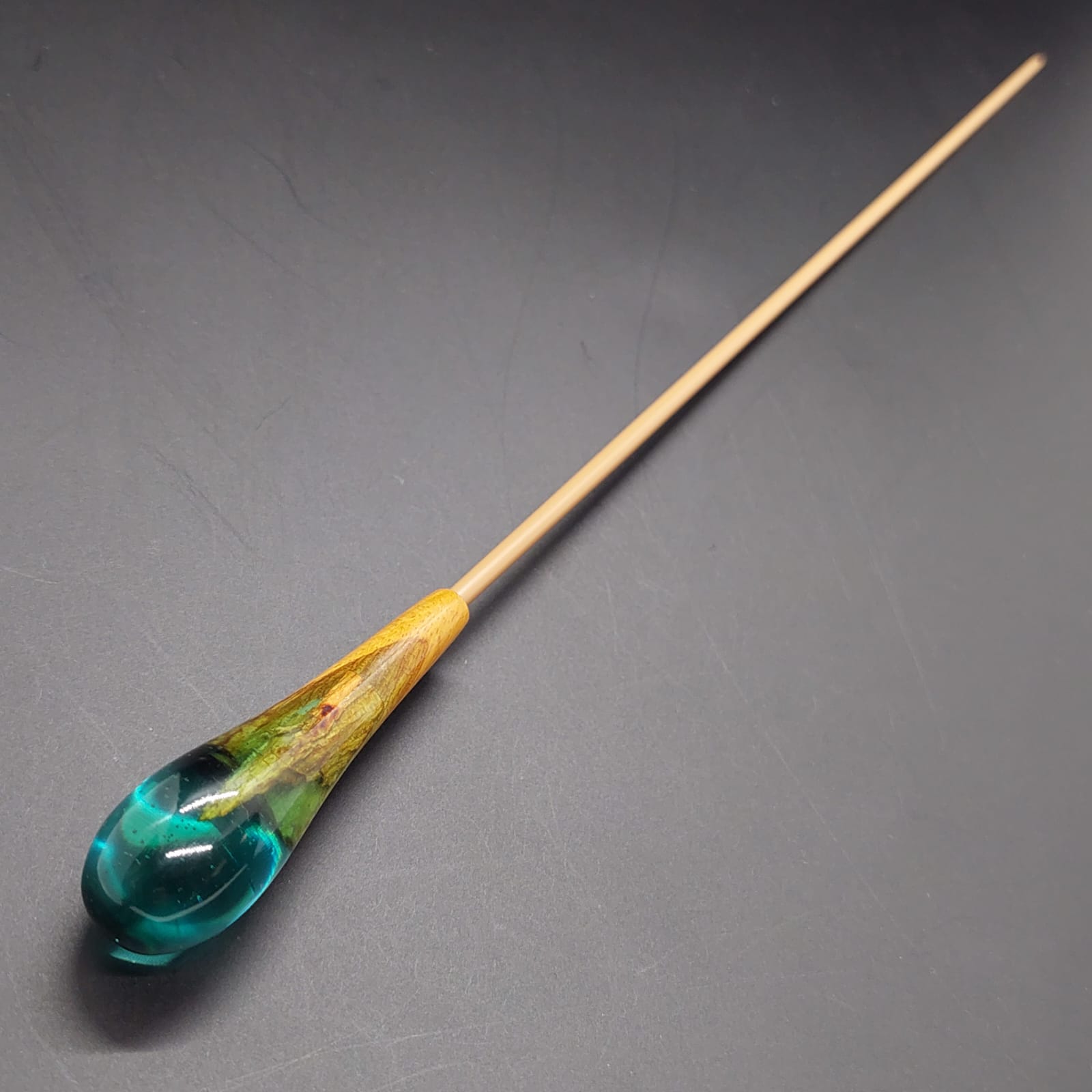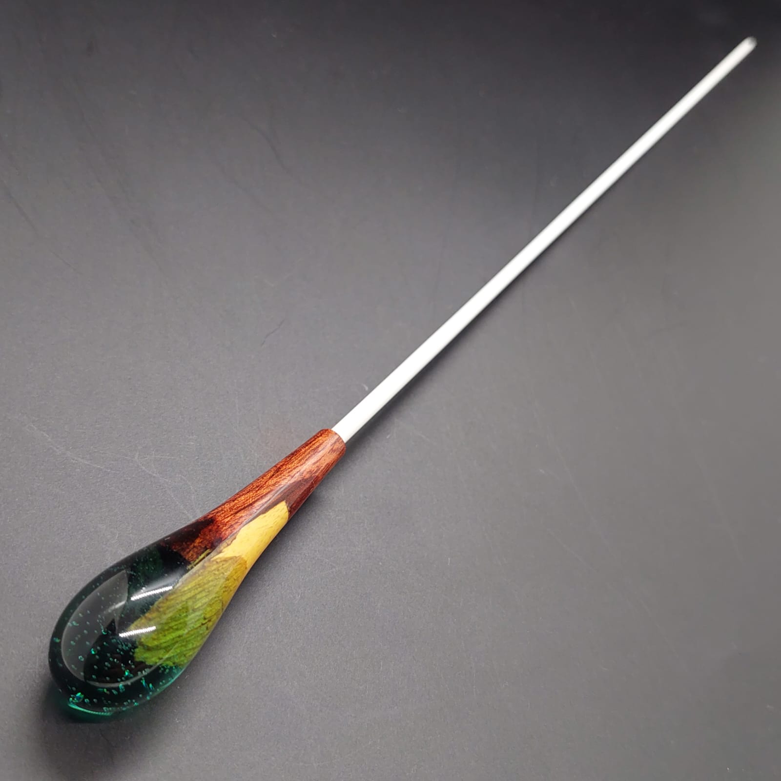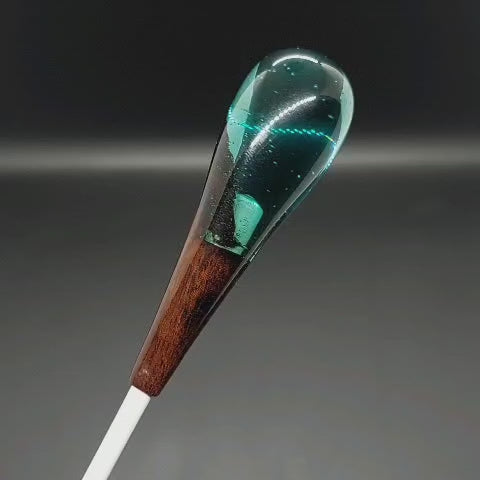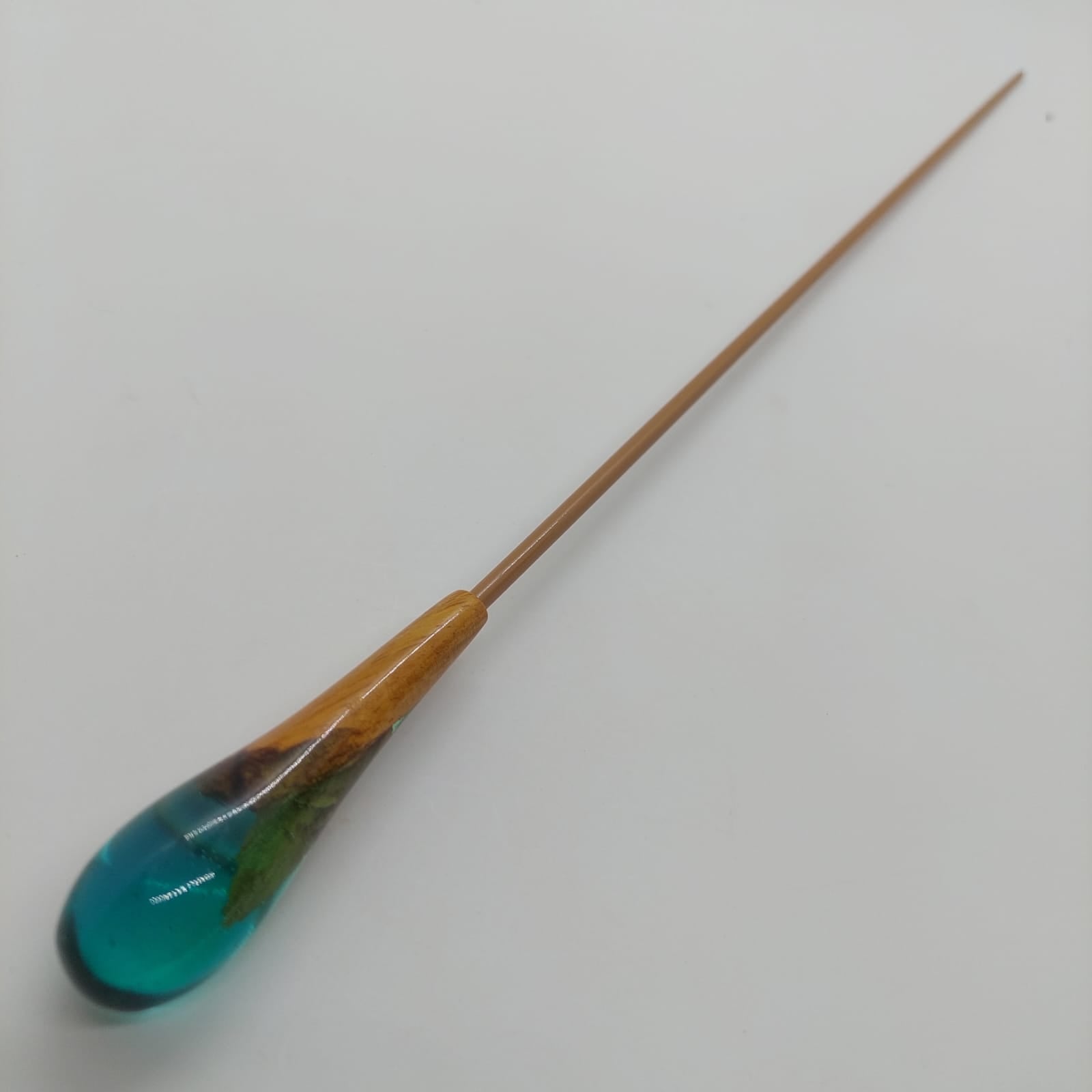 A pera da batuta nasce da fusão entre a nobreza da madeira e o brilho translúcido da resina, criando uma obra de arte única em cada peça. Cada batuta apresenta nuances e detalhes singulares, garantindo resistência, qualidade e um toque sofisticado e elegante.