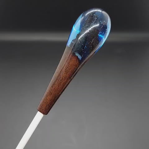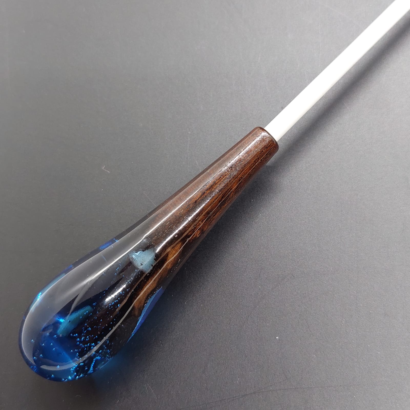 A pera da batuta nasce da fusão entre a nobreza da madeira e o brilho translúcido da resina, criando uma obra de arte única em cada peça. Cada batuta apresenta nuances e detalhes singulares, garantindo resistência, qualidade e um toque sofisticado e elegante.
