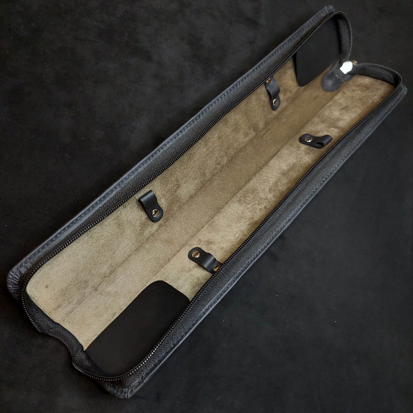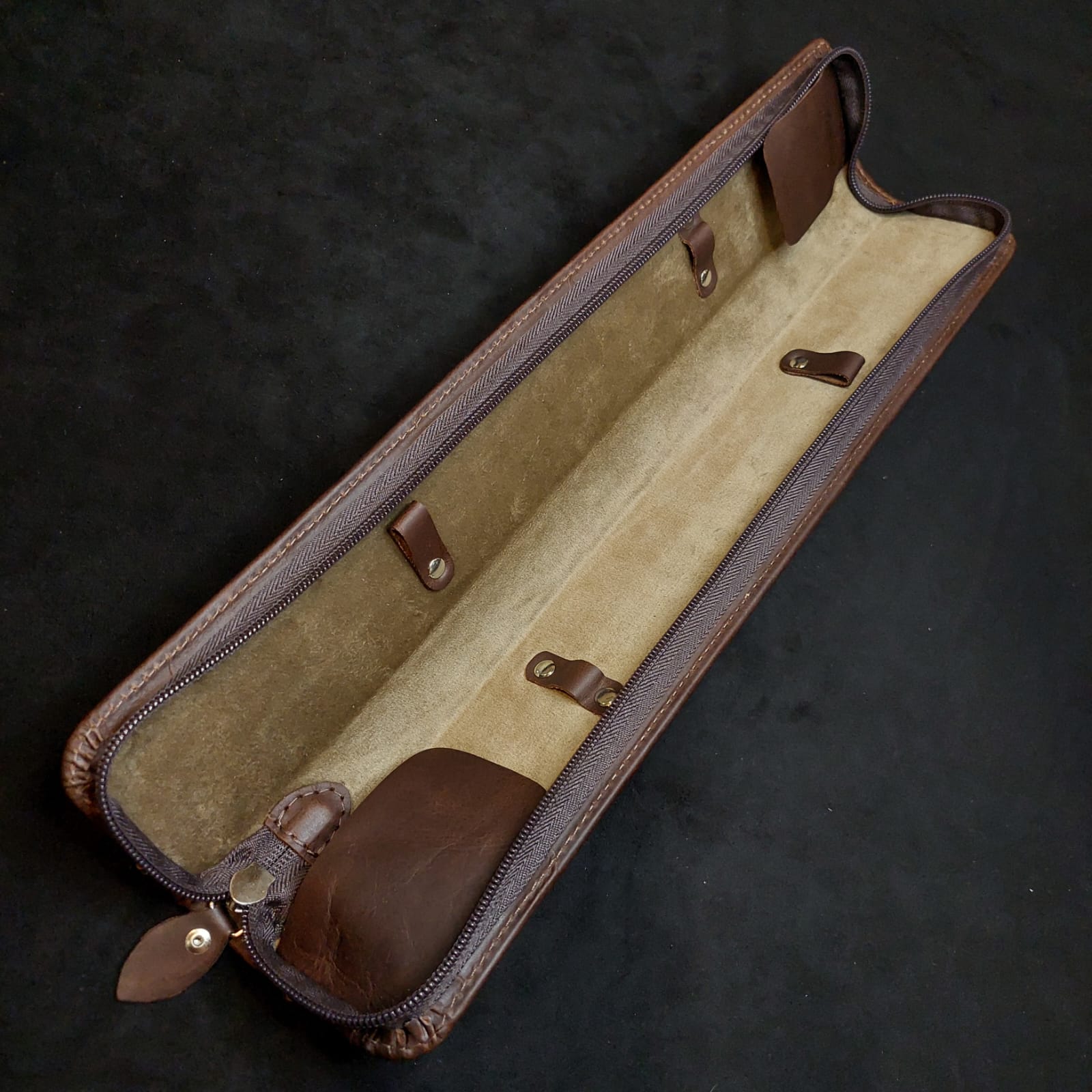 Desenvolvido para maestros que valorizam excelência em cada detalhe, este case de luxo acomoda até duas batutas com segurança e sofisticação. Produzido em couro legítimo de alta qualidade, combina resistência, elegância e acabamento impecável. Seu interior cuidadosamente estruturado protege cada batuta individualmente, enquanto o design refinado expressa distinção e bom gosto em qualquer ocasião.