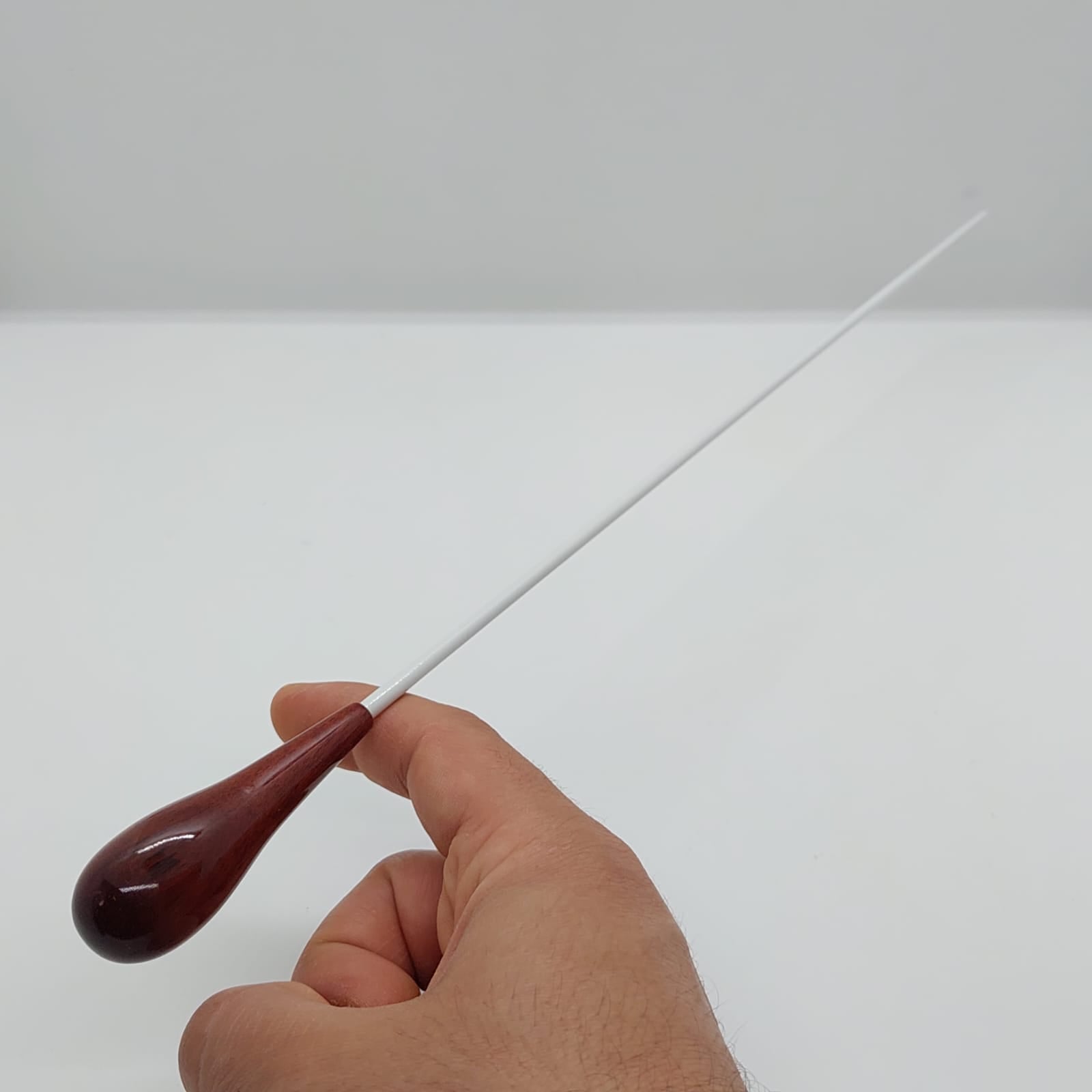 Batuta de maestro com empunhadura modelo Clássico, finamente esculpida para um encaixe harmonioso dos dedos, oferecendo conforto e elegância em cada movimento.