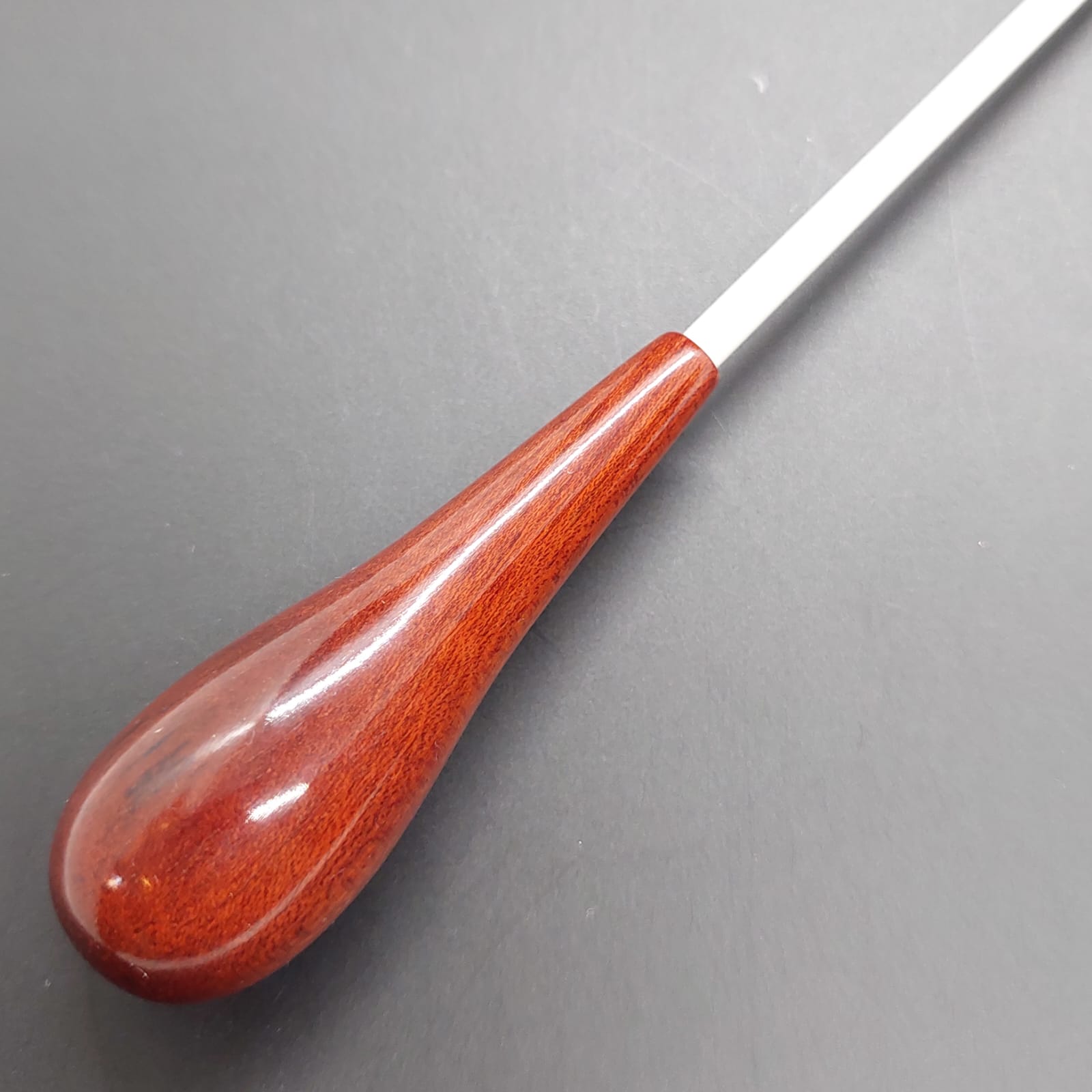 A pera da batuta é produzida em madeira de alta qualidade, resistente e cuidadosamente selecionada para garantir durabilidade e beleza. Seu acabamento realça os veios naturais da madeira, valorizando sua textura única e assegurando que a batuta se destaque com elegância e autenticidade.