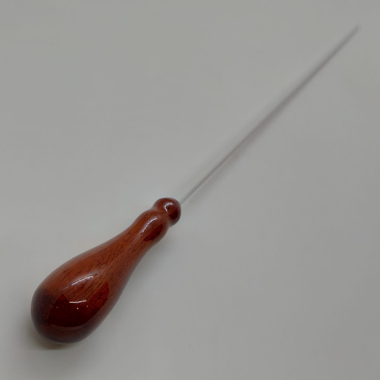 Batuta de maestro com empunhadura modelo Clássico, finamente esculpida para um encaixe harmonioso dos dedos, oferecendo conforto e elegância em cada movimento.